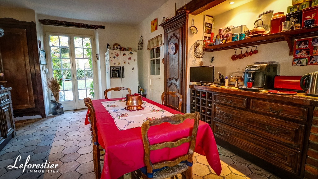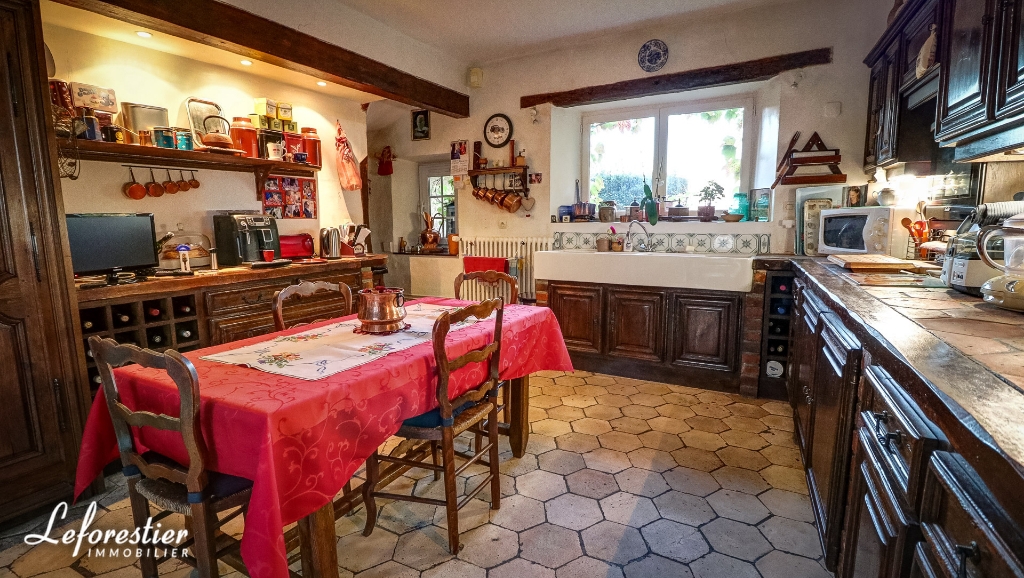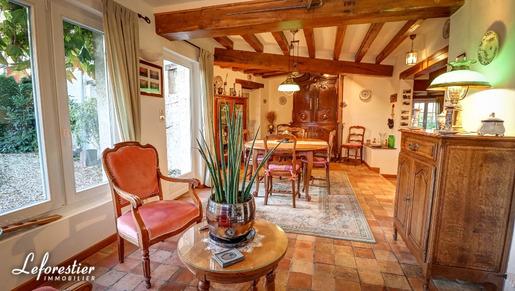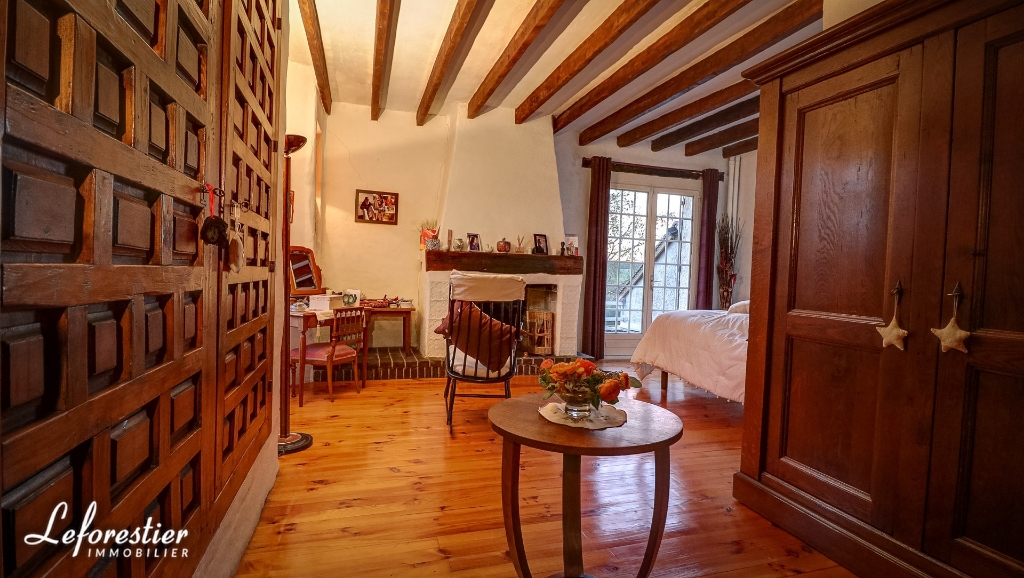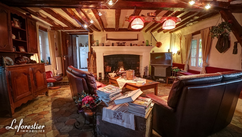 Inside a walled enclosure of brick walls and ancient stones, a mansion built of the same materials welcomes you with its lounge and its beautiful Loire Valley style fireplace whose crackling fire invites you to ask in deep armchairs. We feel good. In the countryside certainly, but an hour from Paris Defense. The beam reminds you that this building has known generations of peasants who have cultivated their land and their environment with passion. But a house is not just about the main living room. A lounge library, more intimate and more cozy, invites you to meditation, reading or work of thought. It has remained very functional, and has become very comfortable with its insulation and efficient heating system and economic, and all the work that the owners have achieved to offer the status of a property for sale.