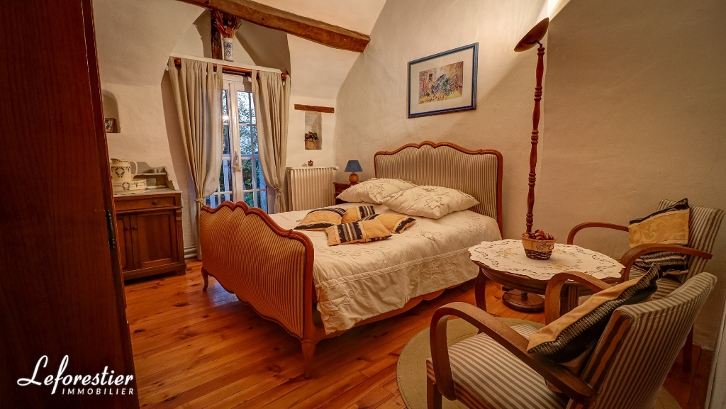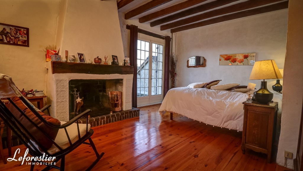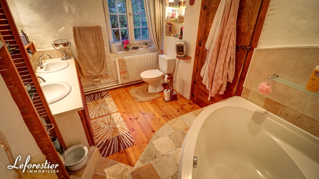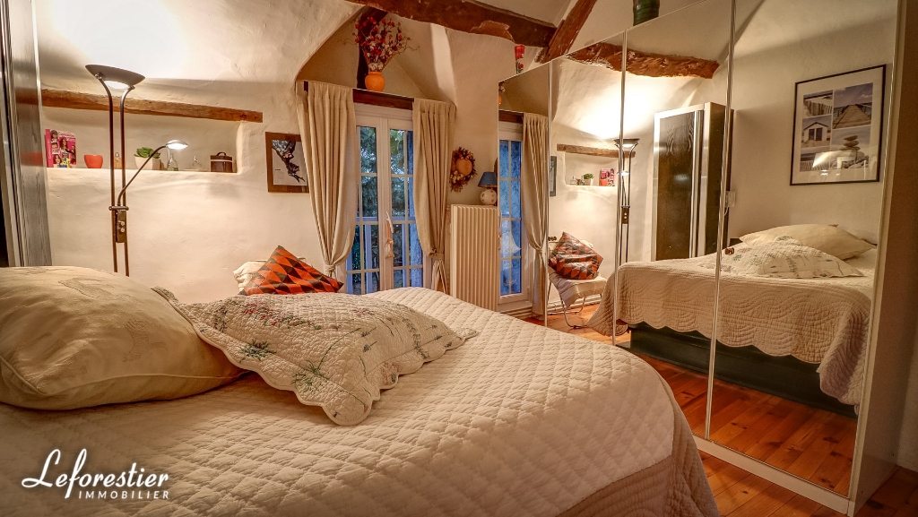 Upstairs, the bedrooms and bathrooms open onto the landscaped garden with varied colors according to the seasons. An old attached barn now houses some pretty beautiful mechanics. But it represents a great potential, without distorting the authenticity of the construction. A very large family can imagine to settle there with some works.
