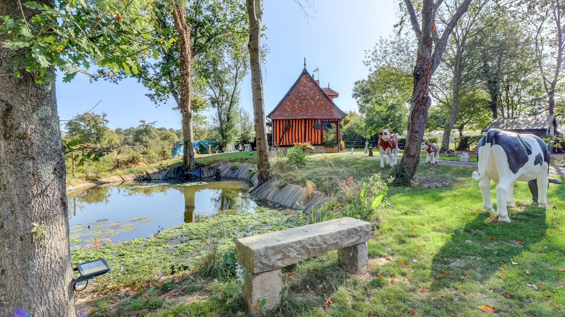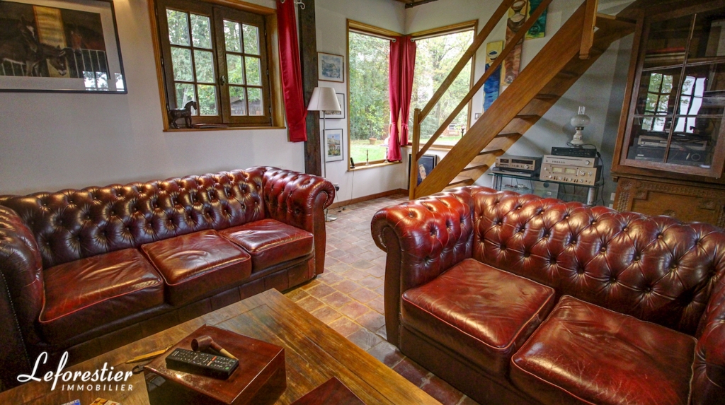 To reach this haven of peace, you must leave the charming road of the Varenne Valley dug many fish ponds, and climb a winding road to the edge of the forest. The location is exceptional. More broadly, the Pays de Bray, a very preserved Normandy territory, of a generous and bucolic nature, and more particularly the forest of Eawy stretches from north to south on more than 6,500 hectares on a plateau bordered by the valleys of Béthune and Varenne. Marvelous natural scenery in the Seine-Maritime, nature invites the walker, on foot, on horseback or by bike to savor this sumptuous space of undergrowth as far as the eye can see. Crossed by many hiking trails, including the impressive Limousin alley, 14 km long, this beech is also a real paradise for animals, do not be surprised then to see in the early morning a deer, a deer or a wild boar in the absolute calm of places. This beech forest has long made the wealth of the sector for woodwork, especially the manufacture of furniture. This activity has now fallen into disuse; it is more the agriculture and the tourism which protect, maintain, this rural, natural and historical heritage. Saint Saëns, village close to our country house for sale has kept its authenticity and charm with its high houses of Master, its shops, its small theater-cinema and its walk on the banks of the Varenne. A well-known 18-hole golf course and a very popular equestrian center offer sports and complementary activities to fishing or hunting.