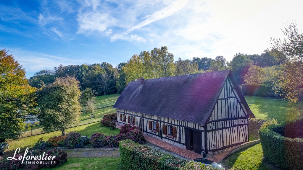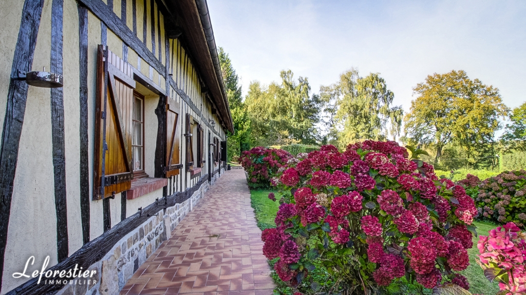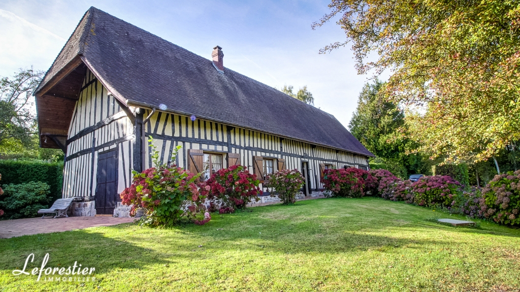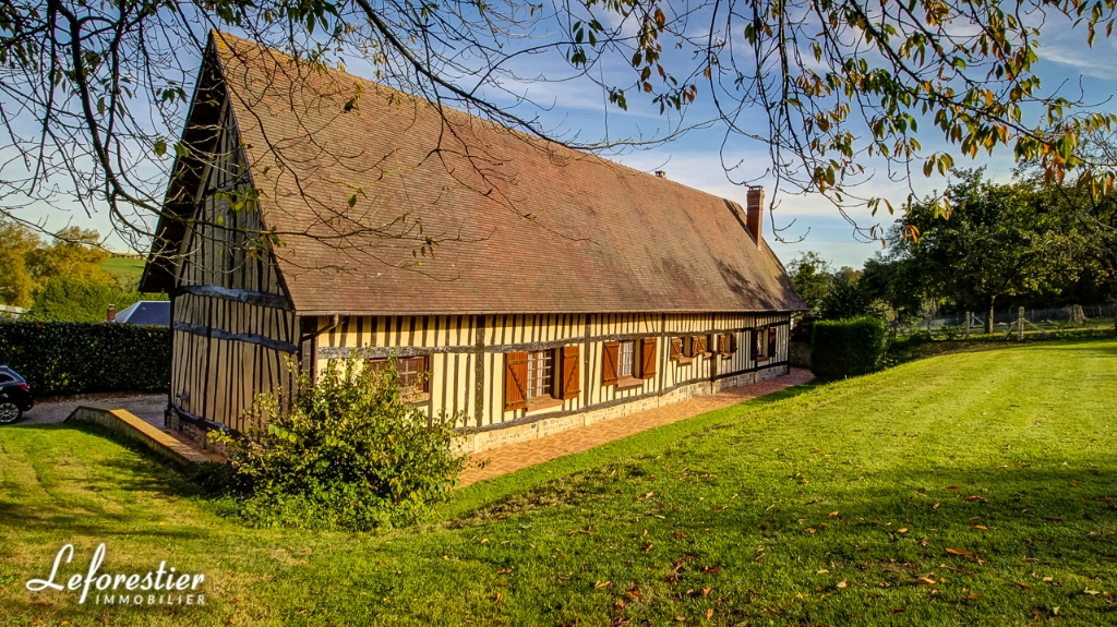 Beyond the natural heritage, the authentic constructions and character are numerous. For example, the numerous closed closures specific to the Pays de Caux, a chalk plateau swept by the West's marine winds, testify to a sought-after harmony between landscapes and constructions. Guy de Maupassant has often mentioned in his stories this landscaping. With pragmatism, the Cauchois peasant, generation after generation, built high embankments on which he planted high beech trees most often to protect his family, his dwelling, his dairy cows, his farm buildings, his courses planted with cider apple trees, creating a kind of microclimate within his farmhouse. The next classification of the cloister to the Unesco heritage is hoped for. Our country house for sale today meets the criteria of comfort of our time: volume, clarity, comfort. Former high and wide barn, it was dismantled and reassembled piece by piece, beam by beam, half-timbered timber to enjoy an exceptional landscape. The part to live is oriented to the south. The garden opens onto a sunny terrace.