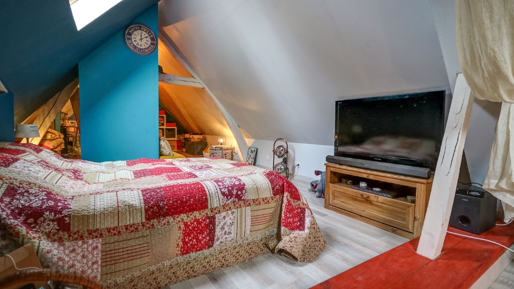Our country house for sale today meets the criteria of comfort of our time: volume, clarity, comfort. With three bedrooms, two on one level, a beautiful mezzanine bedroom for the best effect, a family moved immediately. Better, a cottage with two bedrooms and a living room can comfortably receive his family, his friends and generates very nice income. Two garages and a workshop will satisfy the handyman or the collector.