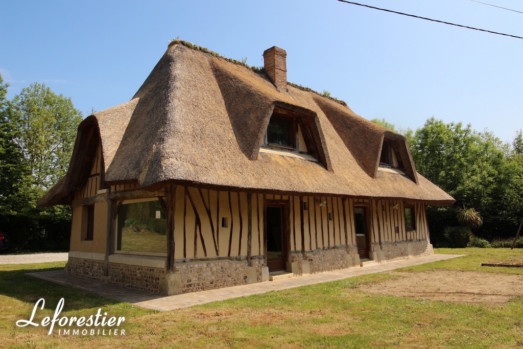 In the 9th century, the Vikings set up in the region and founded the Duchy of Normandy. They find a mild and temperate climate, deep lands, fishy shores, ideal conditions to thrive. They build Normandy houses with the materials found on site such as flint, clay for sub-basement bricks, timber for timber and frame, straw and earth for insulation mud, thatch for roofing. . Our country house for sale was built in this spirit and in the respect of the traditions, with the insertion of the modern techniques like the underfloor heating, the economic heat pump, the large picture windows in double windows to take advantage of the light, large volumes to live and receive around the fireplace.