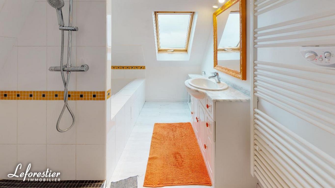 It is a renovated old house for the greatest comfort with wooden double glazed openings, a poly-flame fireplace in the living room, a Canadian well system that reduces the electric bill of convector heating. The ground floor is a spacious and bright living space thanks to its double exposure. The open kitchen on the double living room is friendly, aesthetic and functional. The practical side is not forgotten with a laundry room and a technical room connected to the garage. A beautiful wooden staircase leads to the floor where four bedrooms, a bathroom and a shower room are distributed around a landing in gallery. A mezzanine sleeping area is accessible by the miller's staircase from one of the bedrooms.
