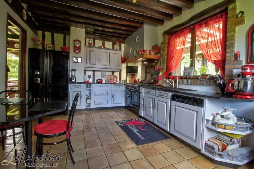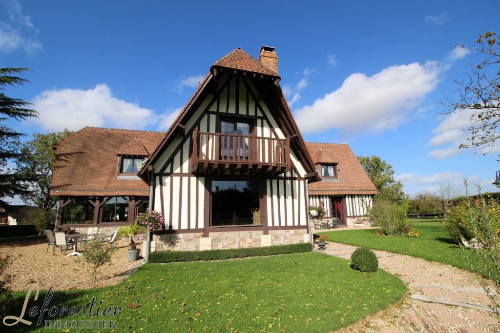 This large house built in 1978 with quality materials and in Norman style is bright and equipped with all modern comforts. A large living room with bay windows and a superb heated veranda overlooking a beautiful garden with trees and flowers. The equipped kitchen is ultra modern and warm. The bedroom on the ground floor is located near the bathroom and the office with a French window on the garden. Upstairs, the four beautiful bedrooms, the dressing room and the bathroom are arranged around a large landing. The fully tiled basement is very clean and functional. A large playroom with French doors opening onto a large stone terrace is fitted out as well as a linen room and a small kitchen. Everything is planned for the comfort of the inhabitants.