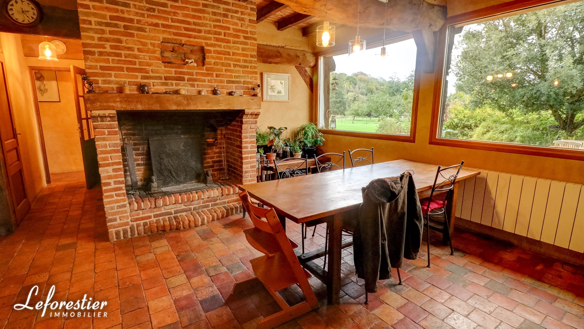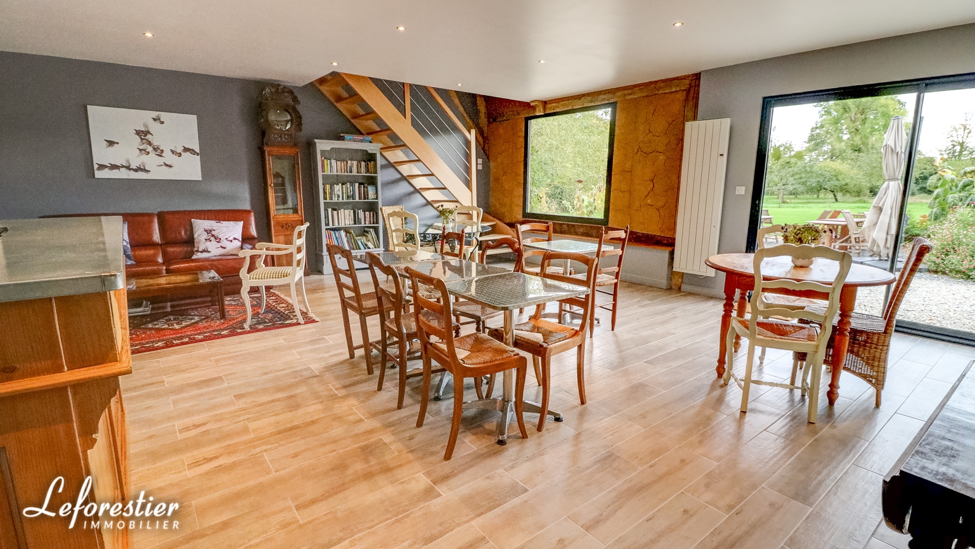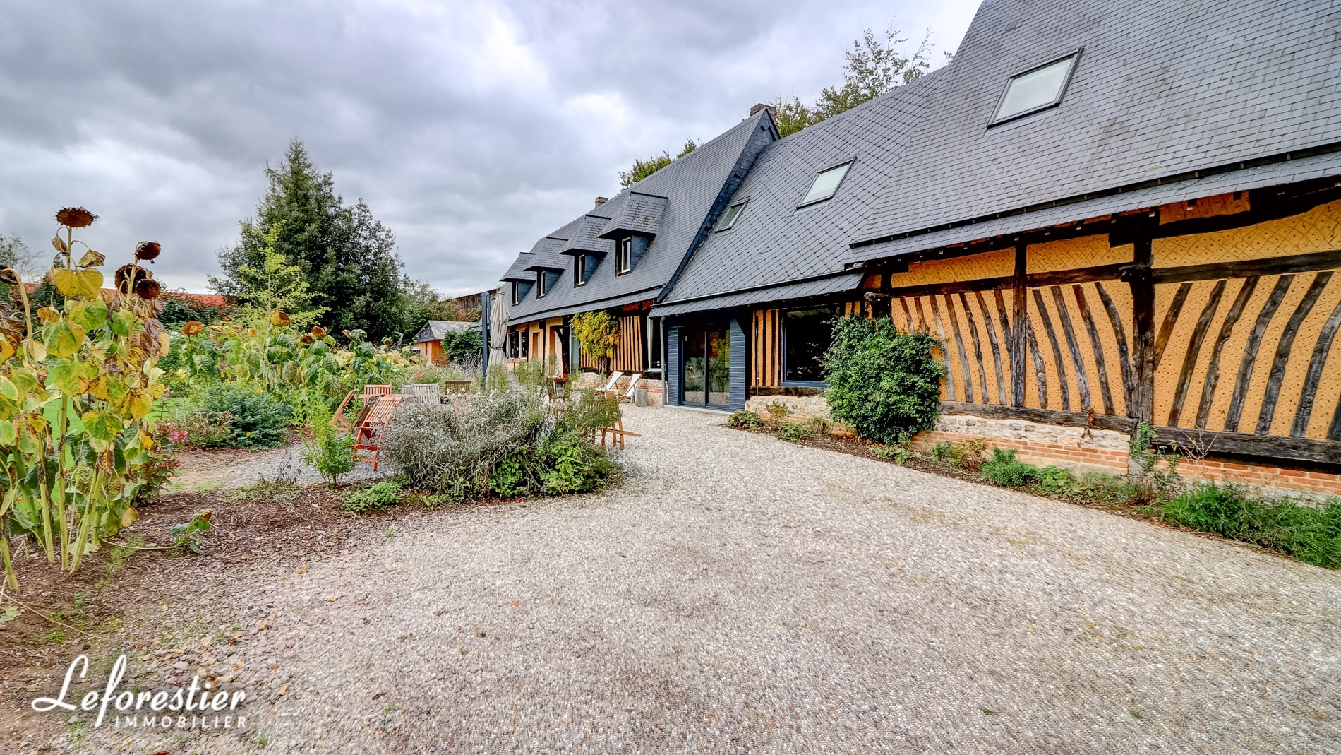 This property enjoys an exceptional setting, close to the Saâne, the garden and the pastures are preserved from looks and nuisances. You enter by a path leading to a beautiful renovated farmhouse in respect of the old building. Half-timbering and torchi this Norman house for sale is ready to spend years without trouble.