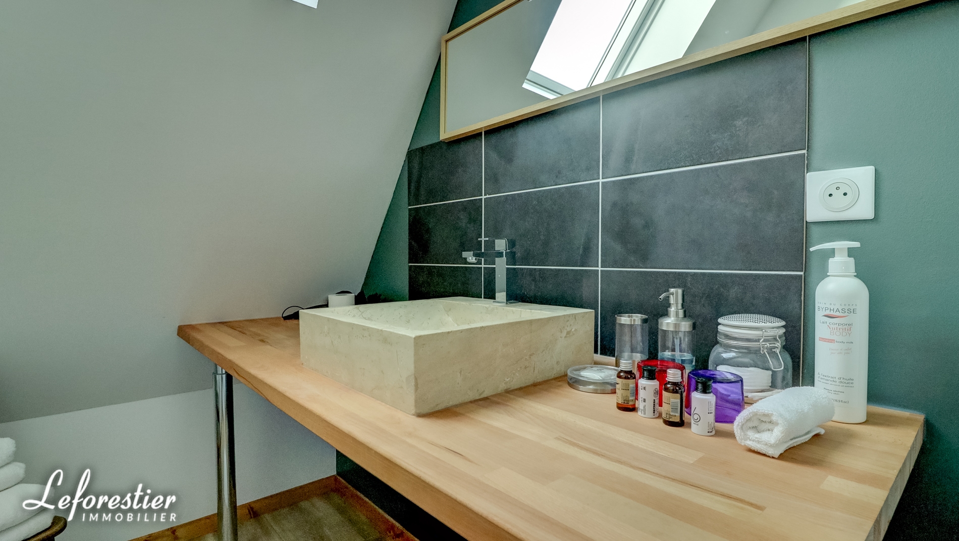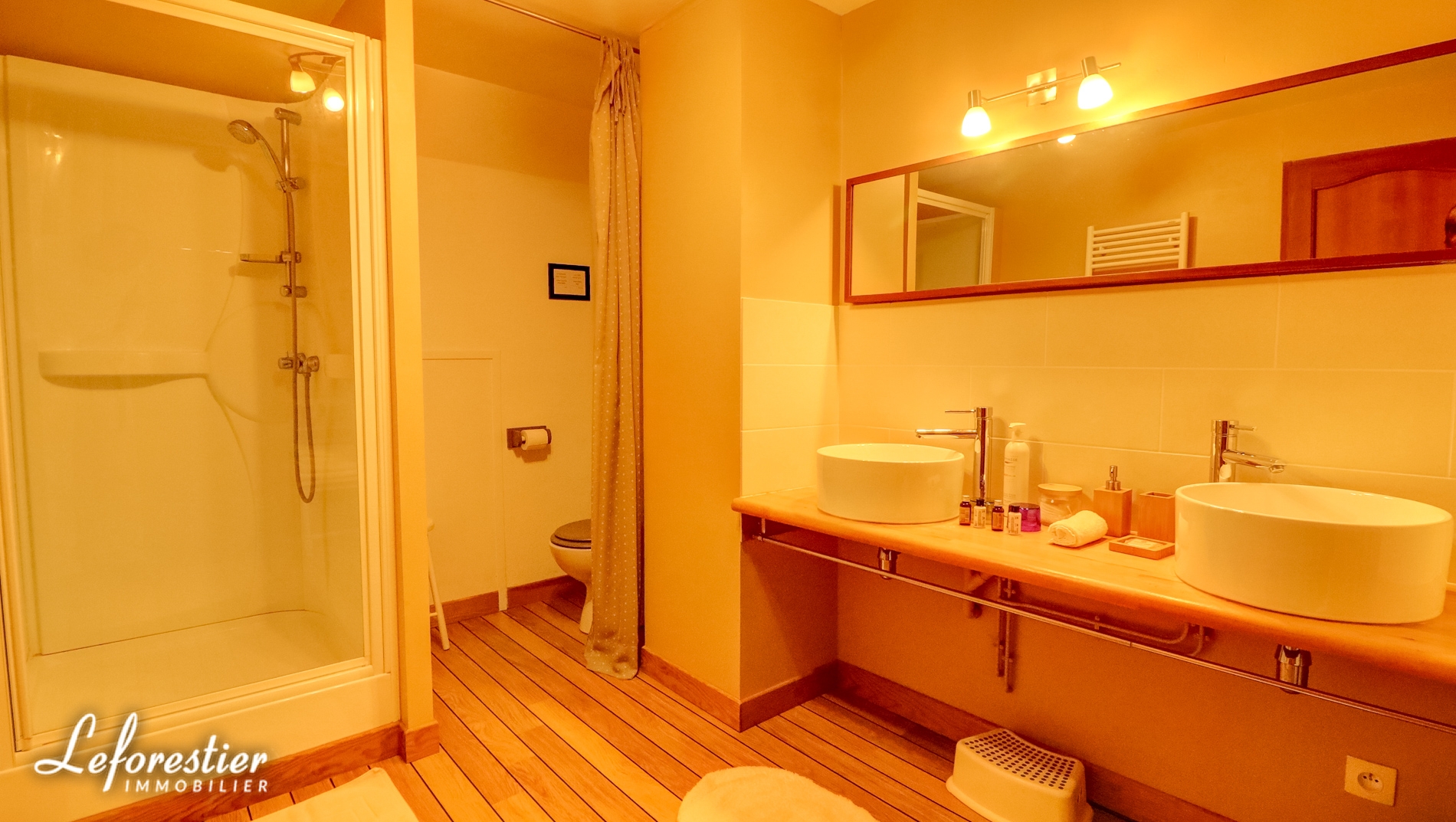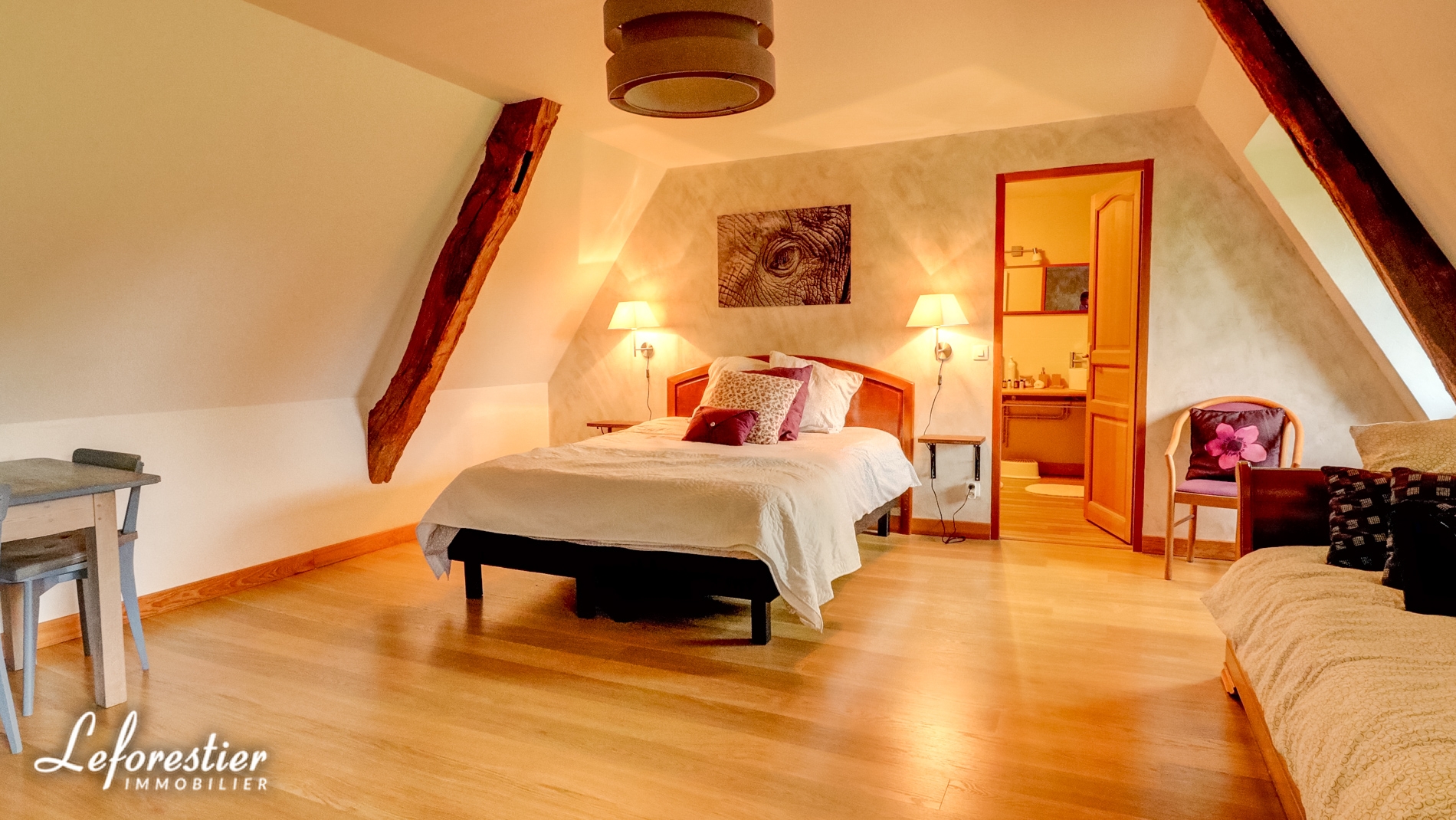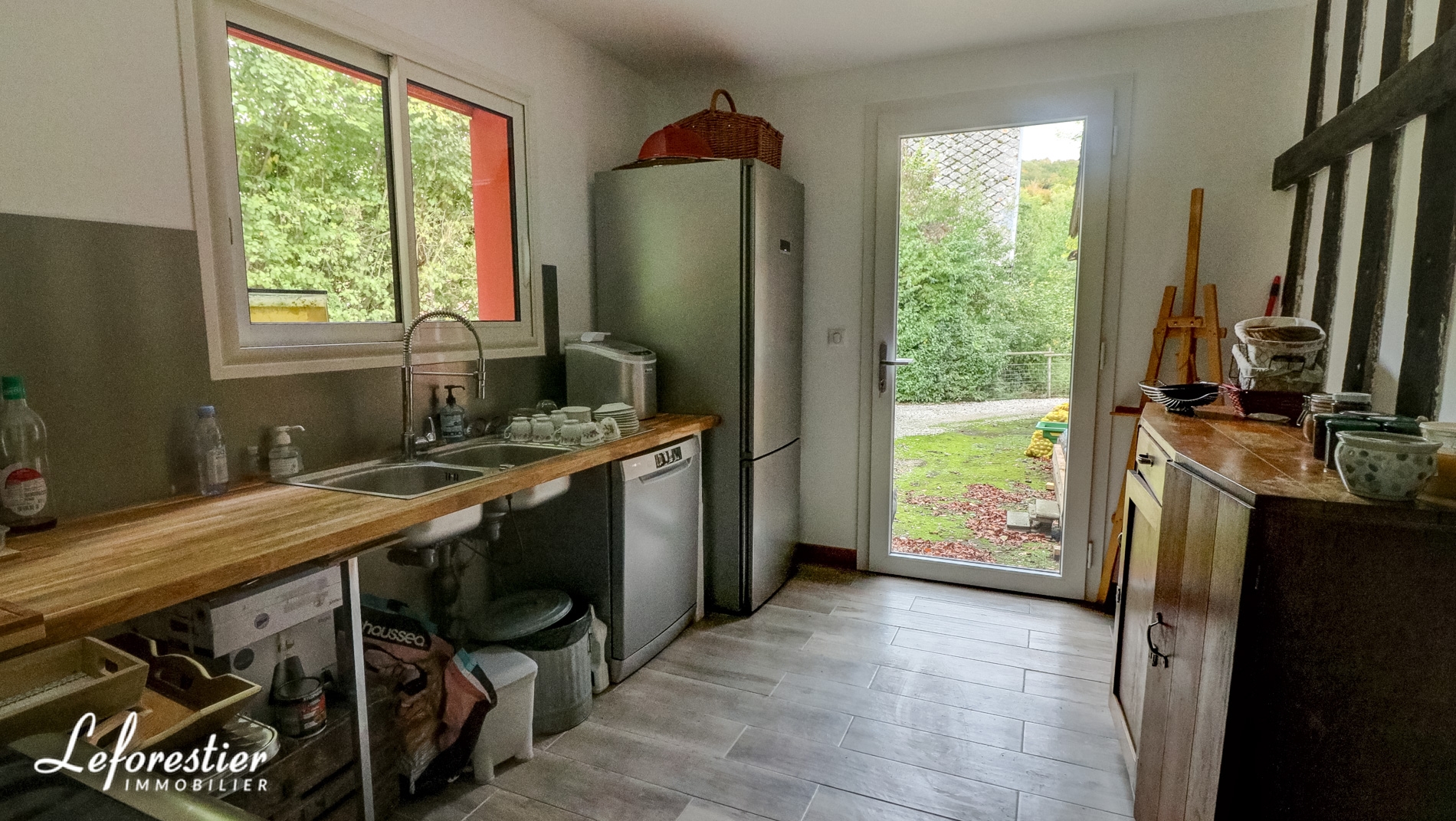 This property enjoys an exceptional setting, close to the Saâne, the garden and the pastures are preserved from looks and nuisances. You enter by a path leading to a beautiful renovated farmhouse in respect of the old building. Half-timbering and torchi this Norman house for sale is ready to spend years without trouble.