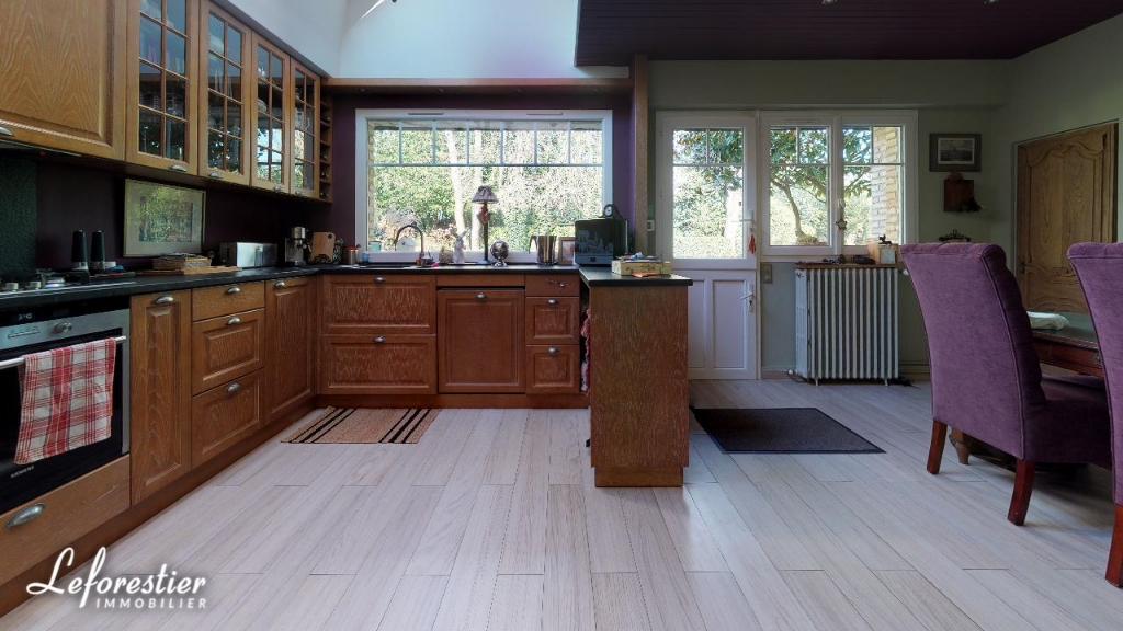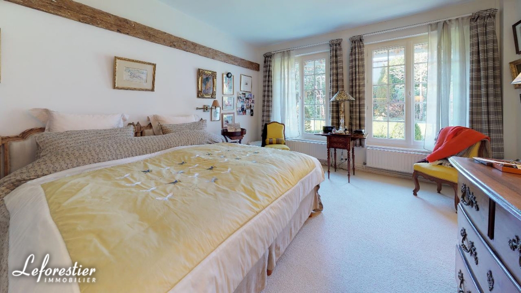 Built on one level in the 1880s, this old brickyard nestled in a closed and confidential garden was transformed in the 1930s into a charming second home by a couple of diplomats, lovers of Parisian lofts, Norman nature and the Alabaster Coast. Many doors and windows let the light flood all the rooms. On more than 200 square meters of living space on the ground floor, it still has potential for two or three additional rooms to four existing, by developing the workshop. However, the latter can also become the vast office of an independent, the studio of an artist, a small independent apartment ... This large house on one level of seaside holds the assets of a family home or home. 'a second home where the reception rooms with fireplaces are very popular with visiting friends. In particular, the large living room of 44 m2 opens on 80 m2 of terraces to the south and west protected from the sea winds. They are ideal spaces to receive. The decoration is chic and sober, the cozy atmosphere. The general condition is excellent: insulation, central heating, kitchen, bathrooms ...