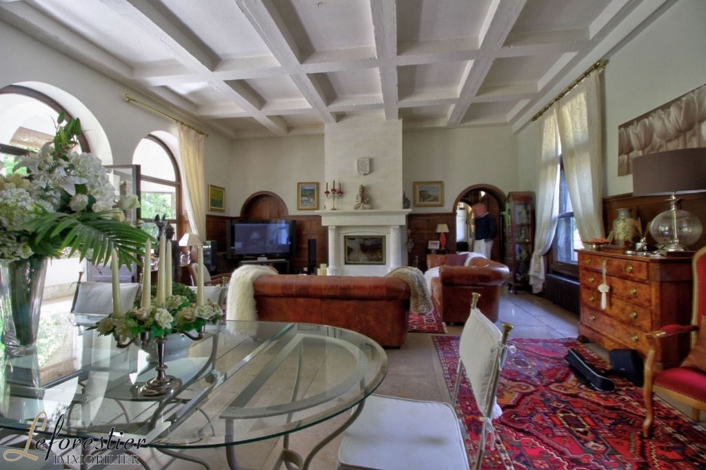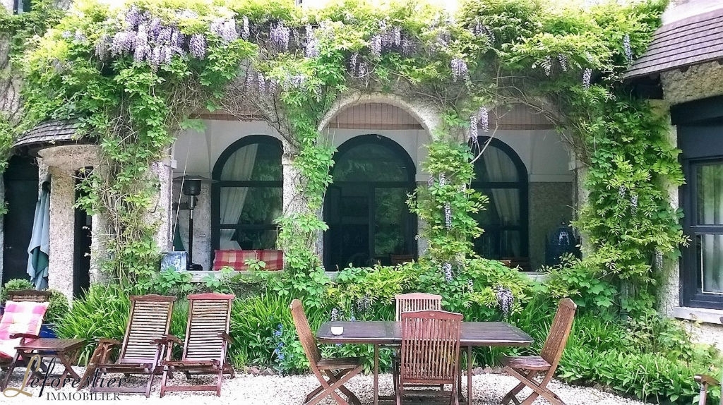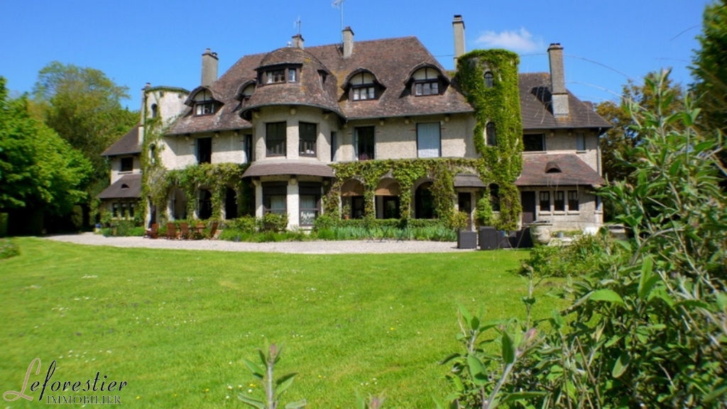 In this beautiful green setting nestles indeed a remarkable English garden composed of massive hydrangeas and rhododendrons, punctuating the landscape in any season of touches of various colors. Inspired by the magnificent home of the Parc des Moutiers in Varengeville-sur-mer, the building has followed the evolutions of time firmly affirming its British style. The sash windows confirm his bias. Located in the heart of a village in Normandy, not far from the beaches and cliffs of the Alabaster Coast, made famous by the visits and stays of the Impressionists, the flowered mansion, such is its name, has many assets and a strong potential. Today divided in the middle into two well separated houses for two families, it would be simple to return to the original distribution. The rooms on the ground floor with their marble floors, the monumental fireplaces, the two Italian-style patios opening onto the park, are perfectly adapted to the organization of large luxury receptions. The twelve rooms on both floors can easily accommodate many guests. A charming hotel would welcome English, Belgian and Dutch tourists in love with the Alabaster Coast.