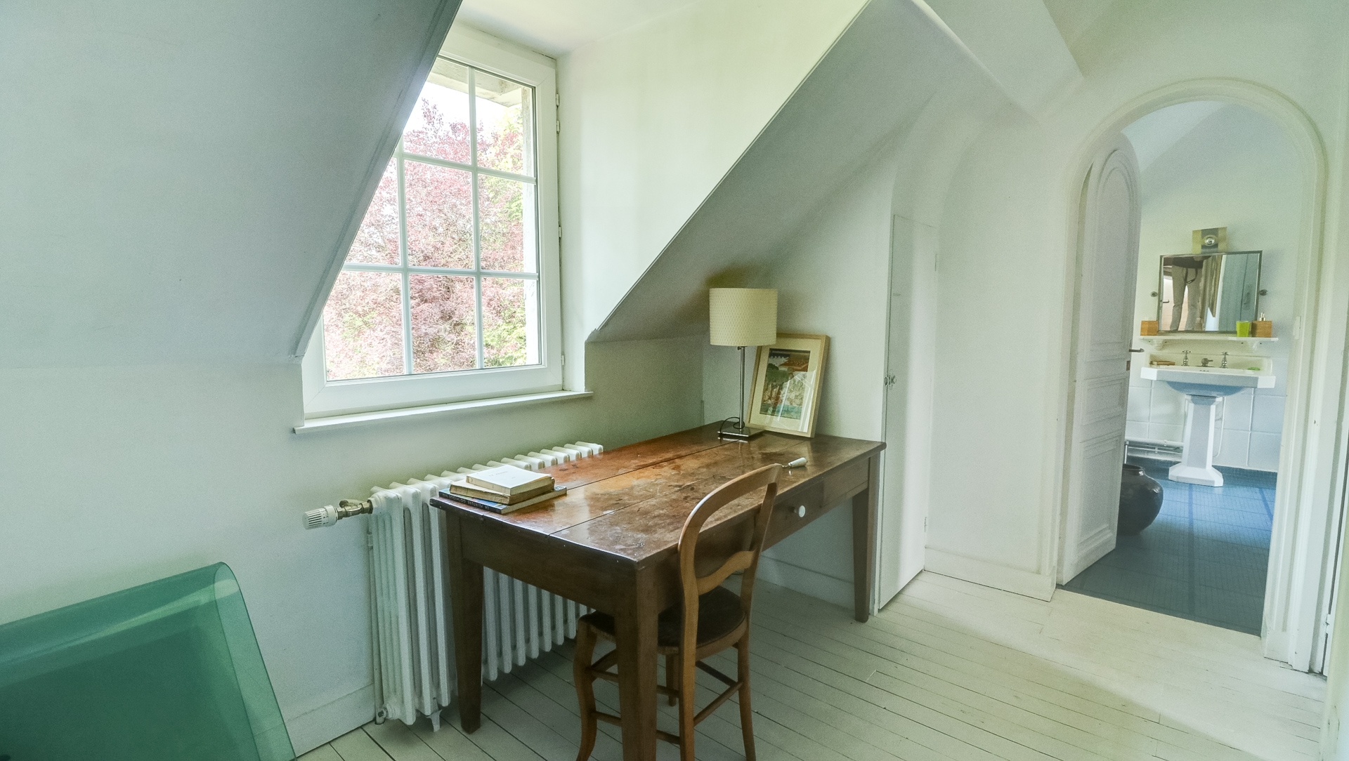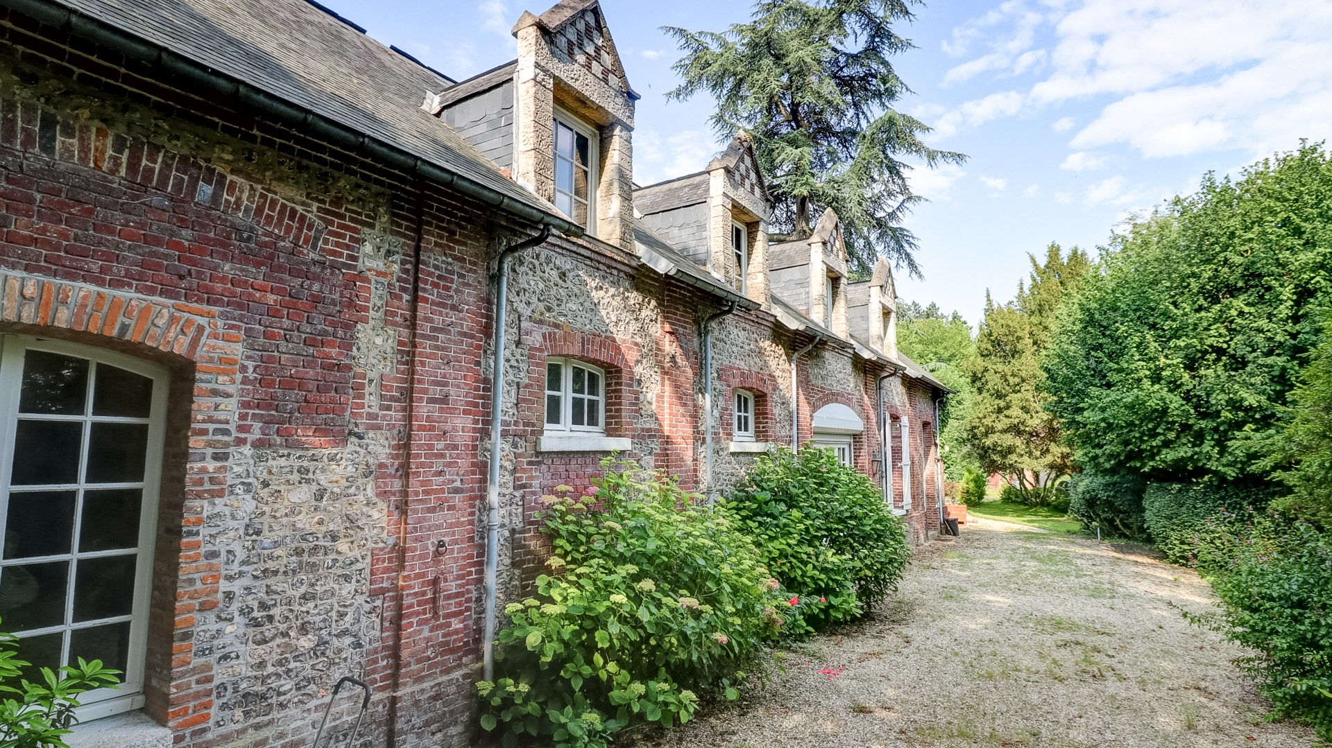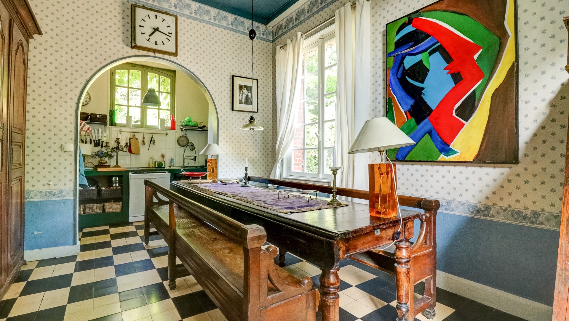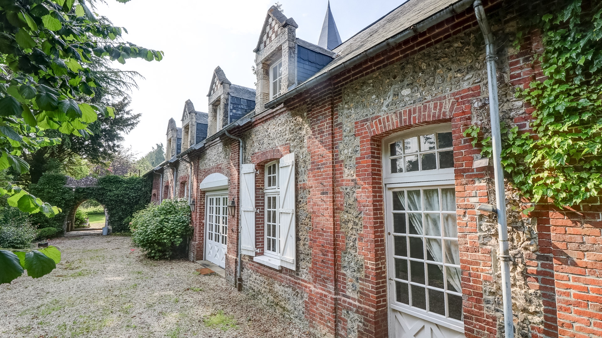 Built in the enclosure of an old abbey dating from the reign of William the Conqueror, belonging to a Benedictine community in the twelfth and thirteenth century, the priory for sale is a charming artist's house. At the beginning of the last century an architect of great talent, Henri Jacquelin, was asked because of his capacity to rebuild buildings Anglo-Norman or Flemish from old materials while relying on the modern techniques allowed by the steel and concrete. The atypical side does not alter the functional and comfortable character of this country house.