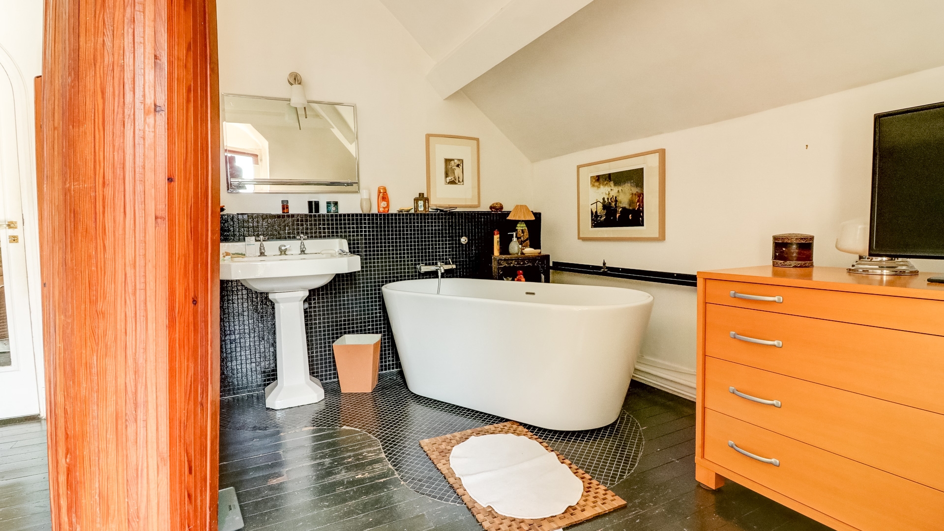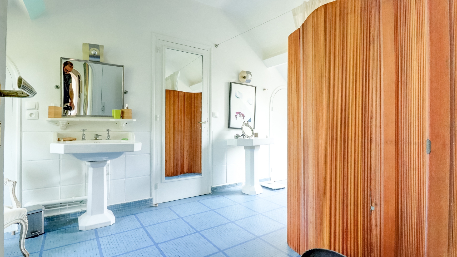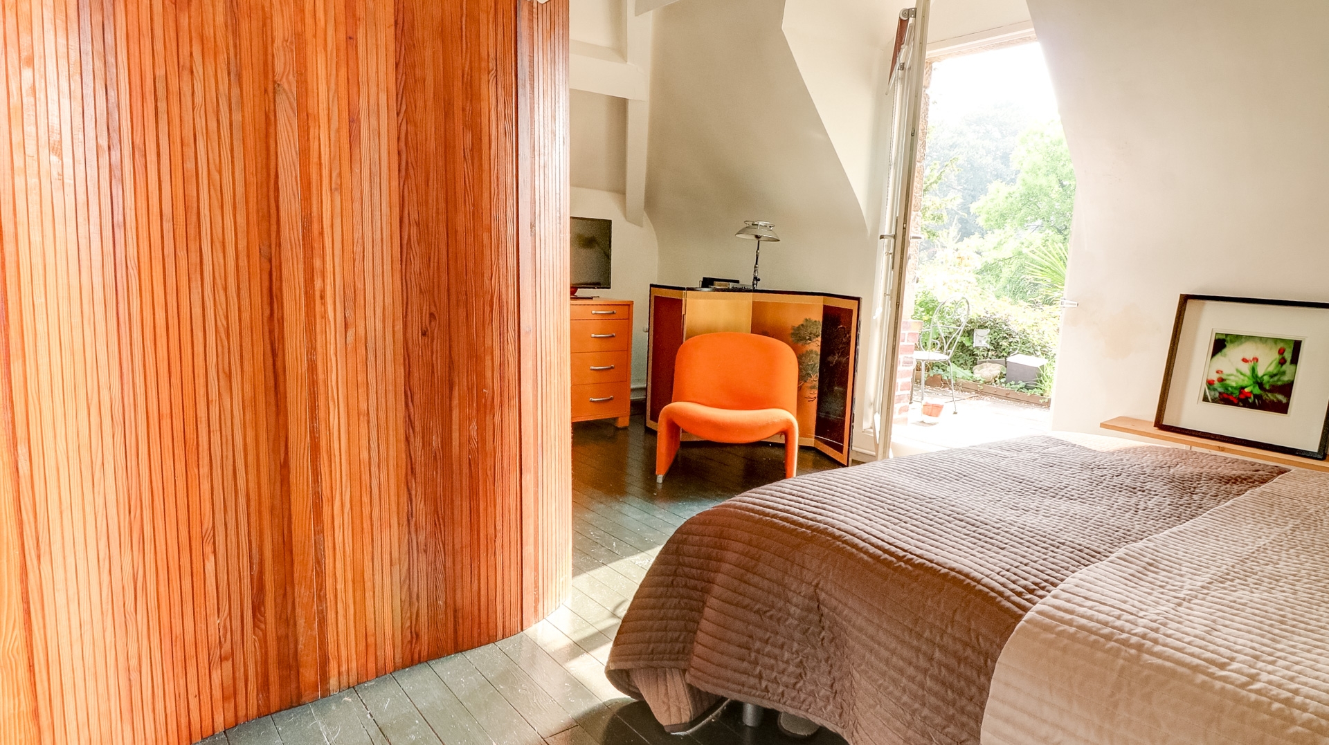 On the ground floor, the three living rooms have retained the original woodwork and floors. The large open kitchen is a place of conviviality. Family and friends meet there for long breakfasts. The village baker provides the breads and pastries that go well for Sunday morning brunch. From the living room, one reaches the gallery by which the monks went to the church. Today, it has become a covered terrace for dining under cover during wet evenings. The bedroom and the bathroom on the ground floor are reserved for parents who can come alone without children, without having to heat the floor. But the other four rooms will comfortably accommodate the family. An activity of guest rooms is possible, especially in the master bedroom which has a terrace lit by the rising sun.
