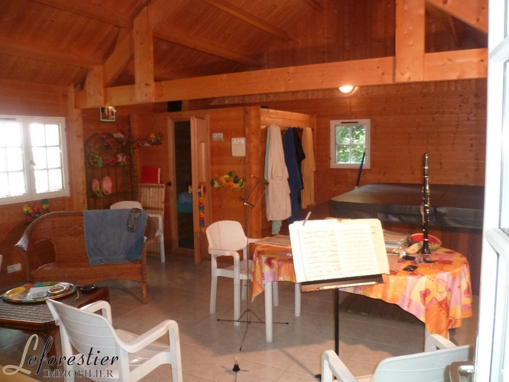 Outside, a large comfortable chalet is currently used by the musician who repeats in peace. The sauna and the jacuzzi make this place into a relaxation area easily converted into a fitness room, library, independent office, artist studio ...