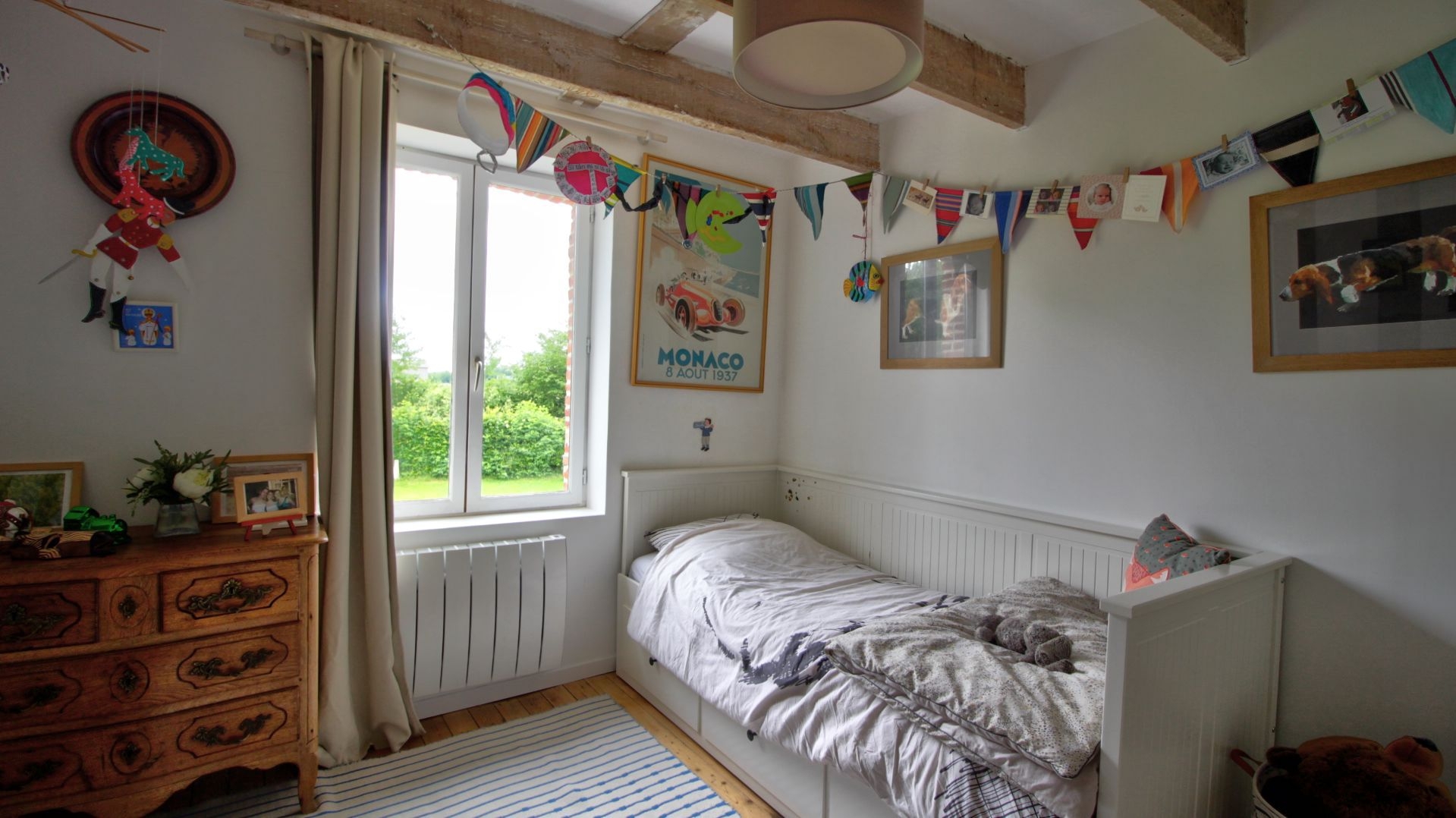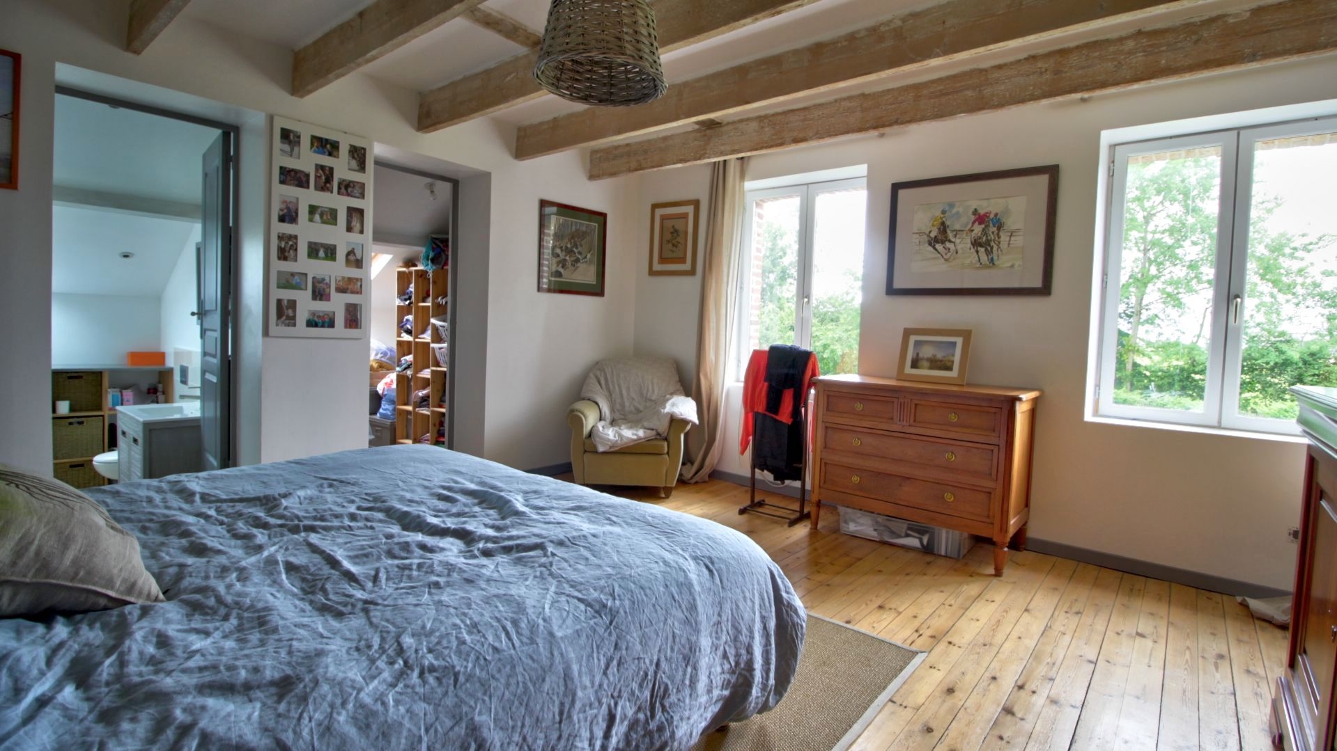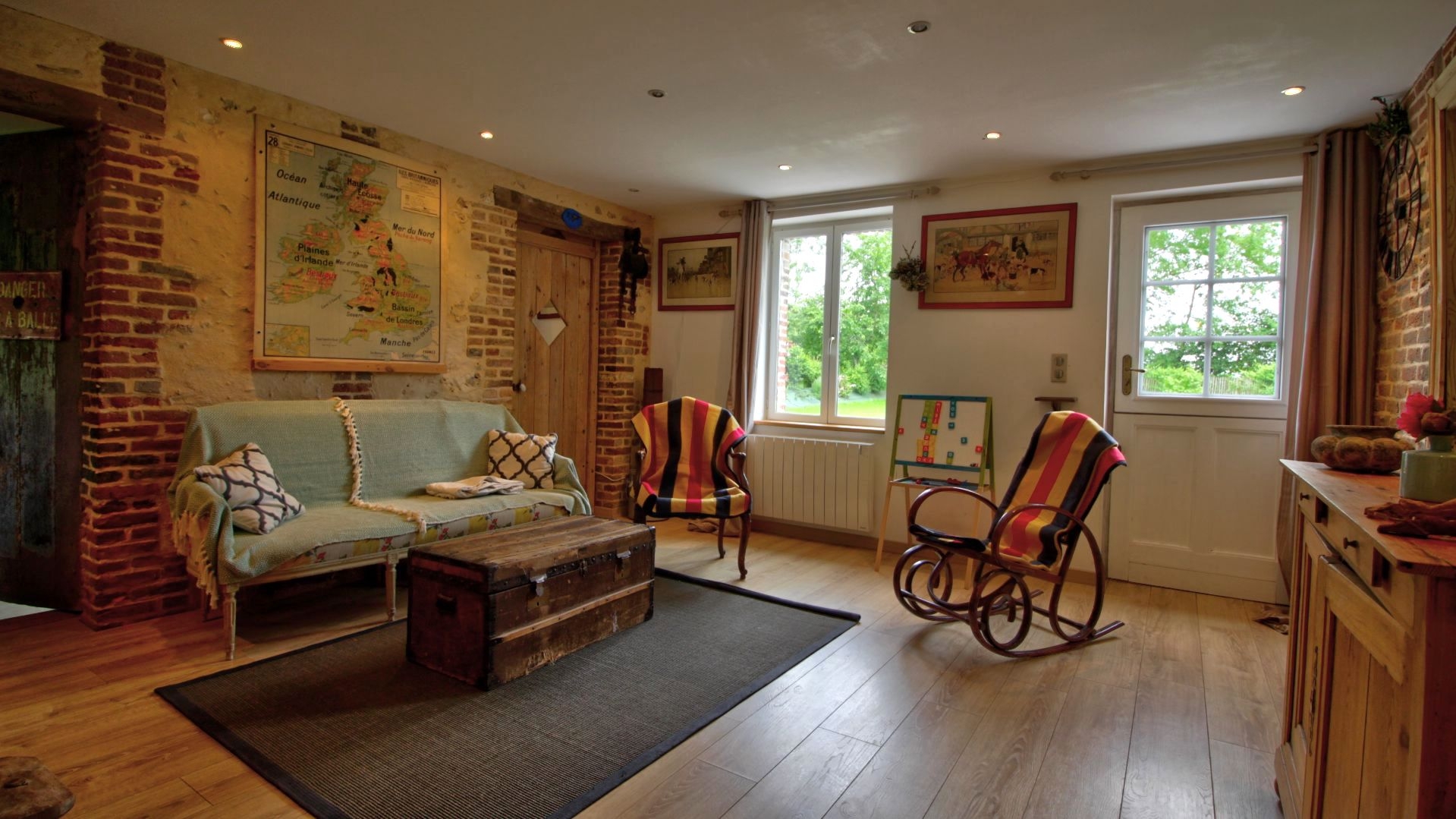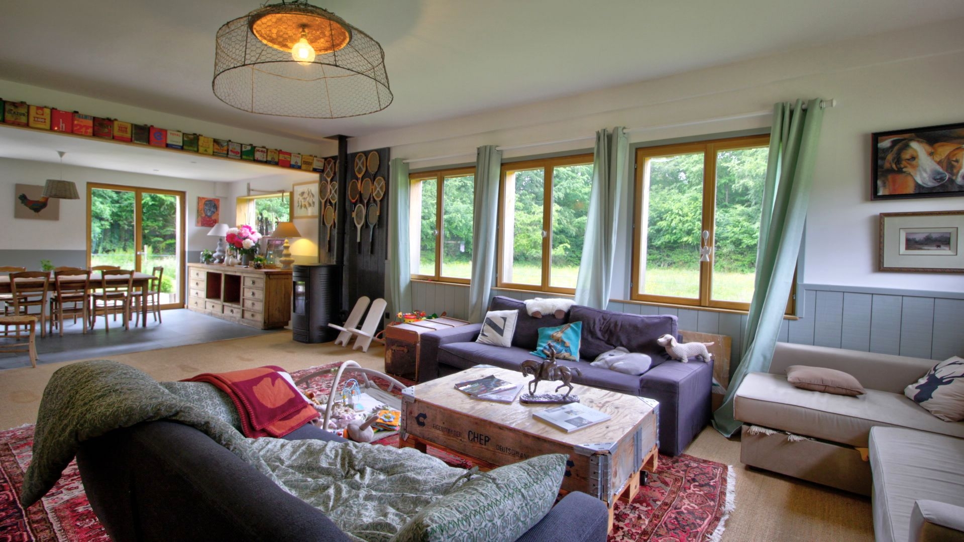 At the edge of the forest, offering immediate access to the hiking trails, our authentic hunting house has been tastefully renovated and enlarged by a timber frame extension of the best effect, in a subtle mix of old and contemporary. The old house of character is built partly of a brick of Saint-Jean which holds its red-orange color of the nature of the Normandy clay and the technique of cooking with fire of wood. Flints were extracted from pebble veins in the immediate vicinity. To access this haven of peace, we must leave the charming road of the Varenne Valley dug many ponds full of fish, and climb a winding road to the edge of the forest of Eawy. The location is exceptional. Bordered on one side of a meadow or graze pretty Norman cows, the place is made for nature lovers. Obviously, in the early morning, lovely does come frequently to graze the grass of the neighboring meadow planted with apple trees of Normandy. An upstairs terrace has even been built to observe the animals without disturbing them. From mid-September to mid-October, during the mating season, the deer slams to intimidate its competitors and impose its territory of seduction.