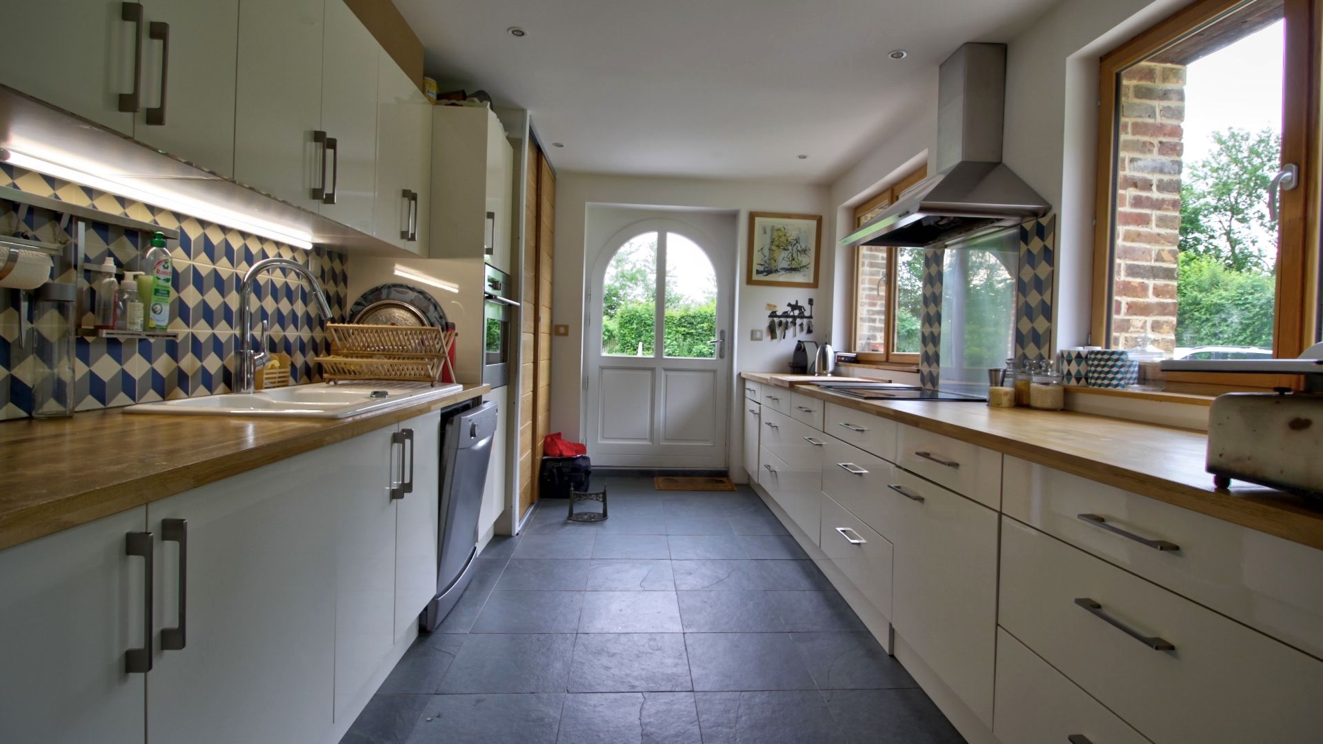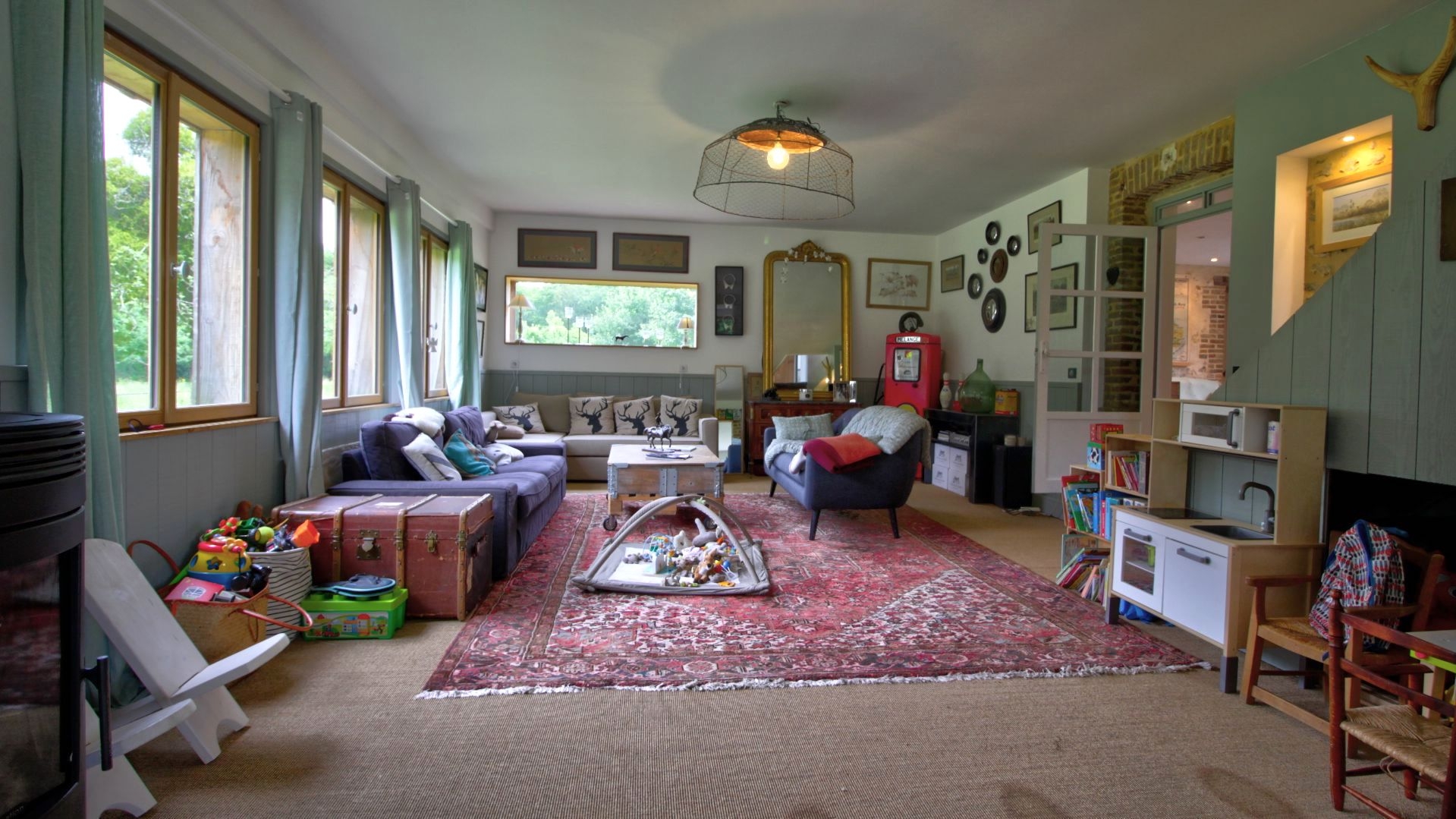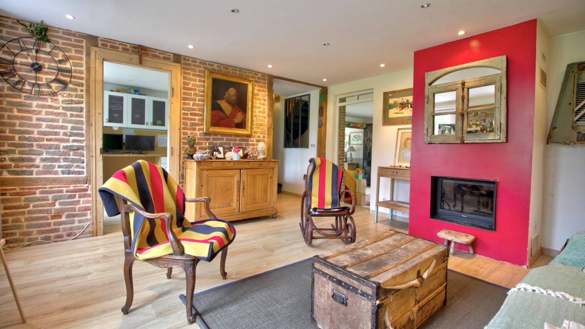 Country house for sale built in brick and flint, now a large family home with two large living rooms, an office, 5 bedrooms and 3 bathrooms