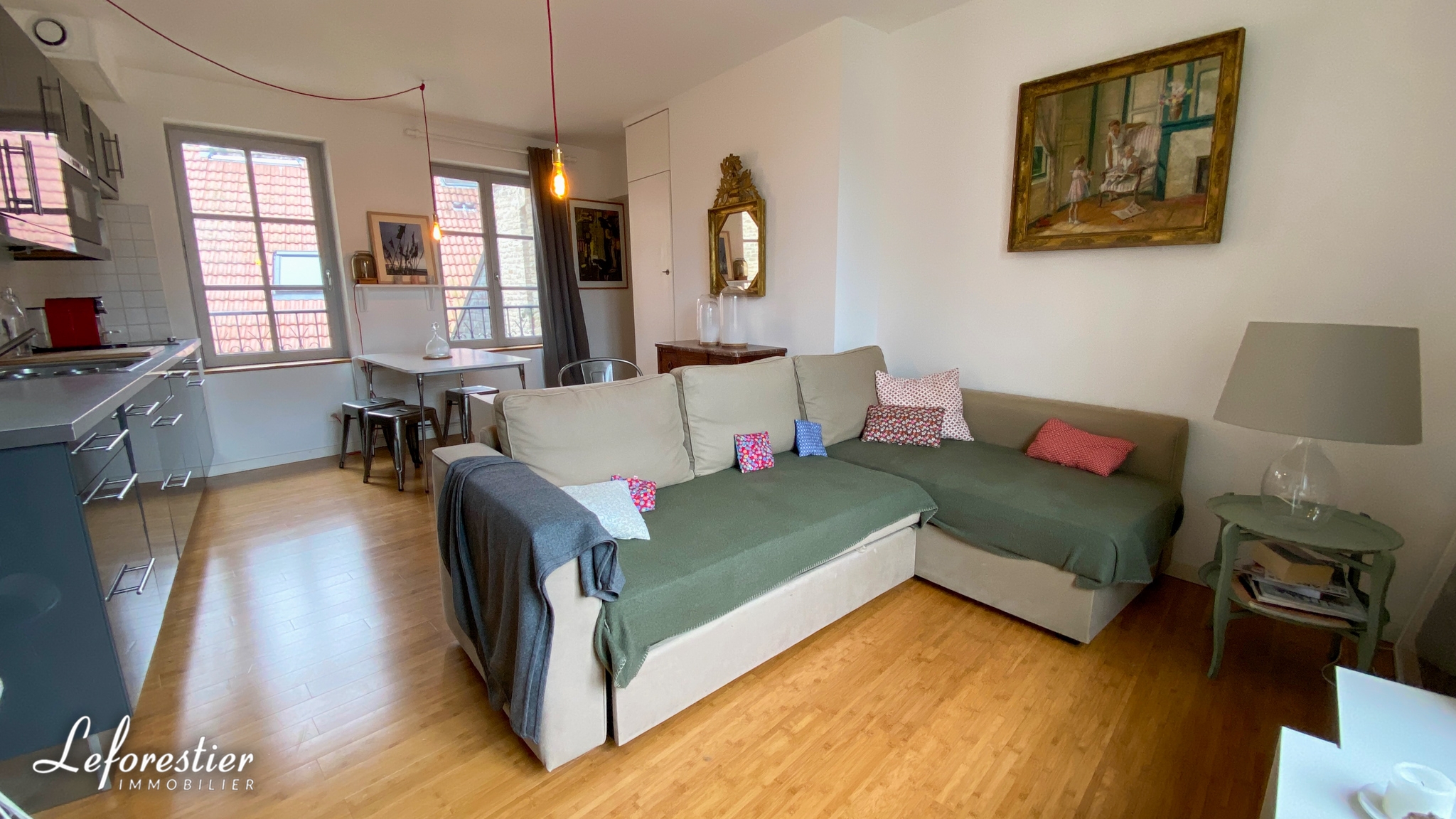 Cet appartement de 2 pièces de 35,44m2 est agréable à vivre. Dans une petite copropriété entièrement rénovée, au 3ème et avant dernier étage, cet appartement traversant et lumineux offre : un séjour-salon avec une cuisine ouverte aménagée et équipée, une chambre et une salle d’eau avec toilettes. Il dispose aussi d’une petite pièce indépendante faisant office à ce jour de chambre d’appoint.