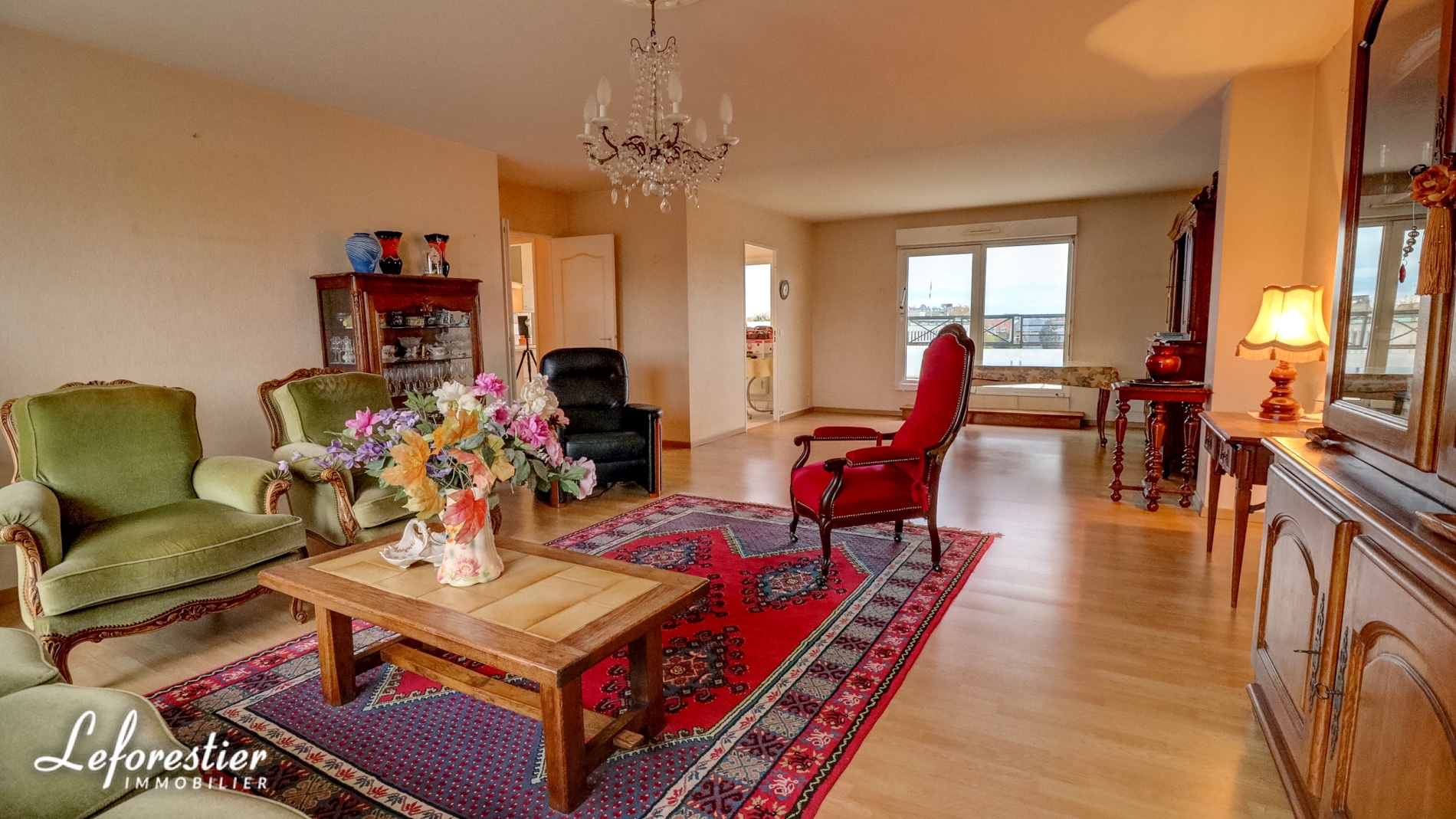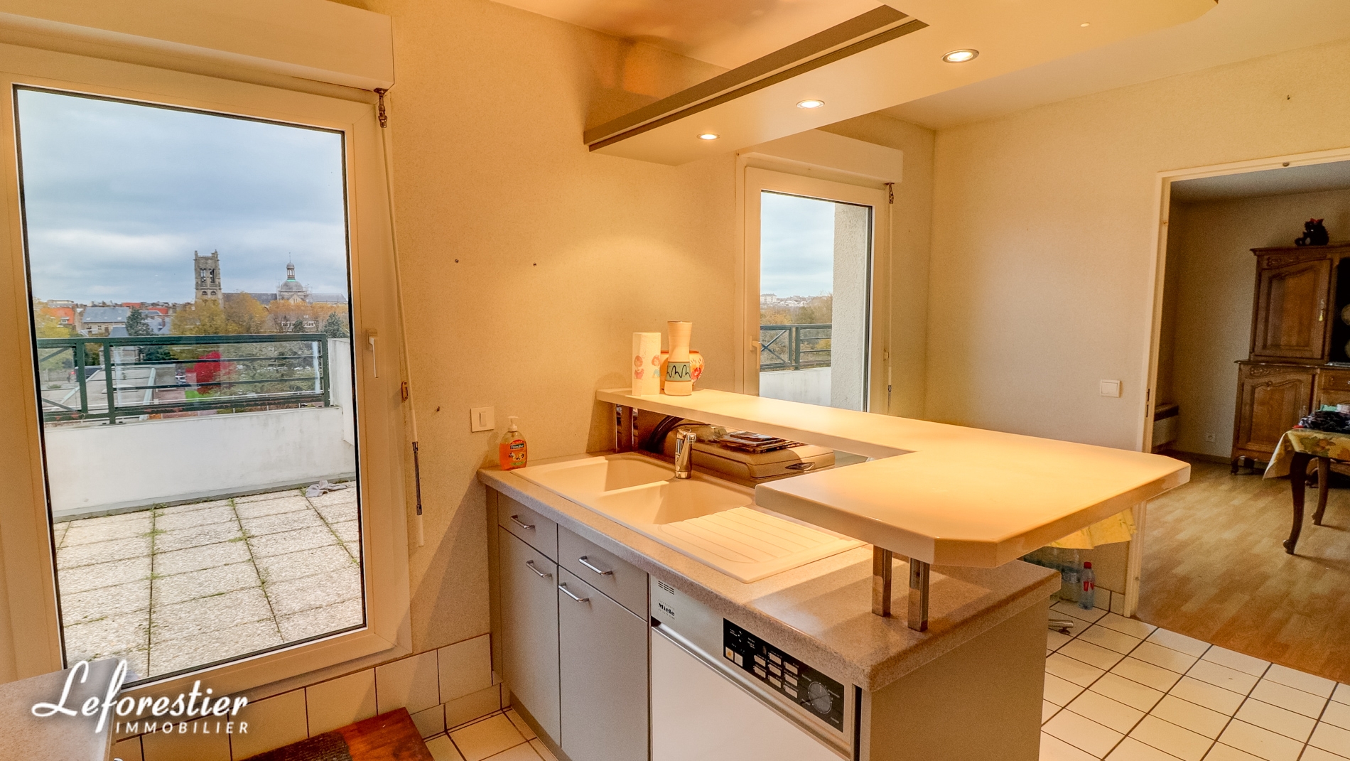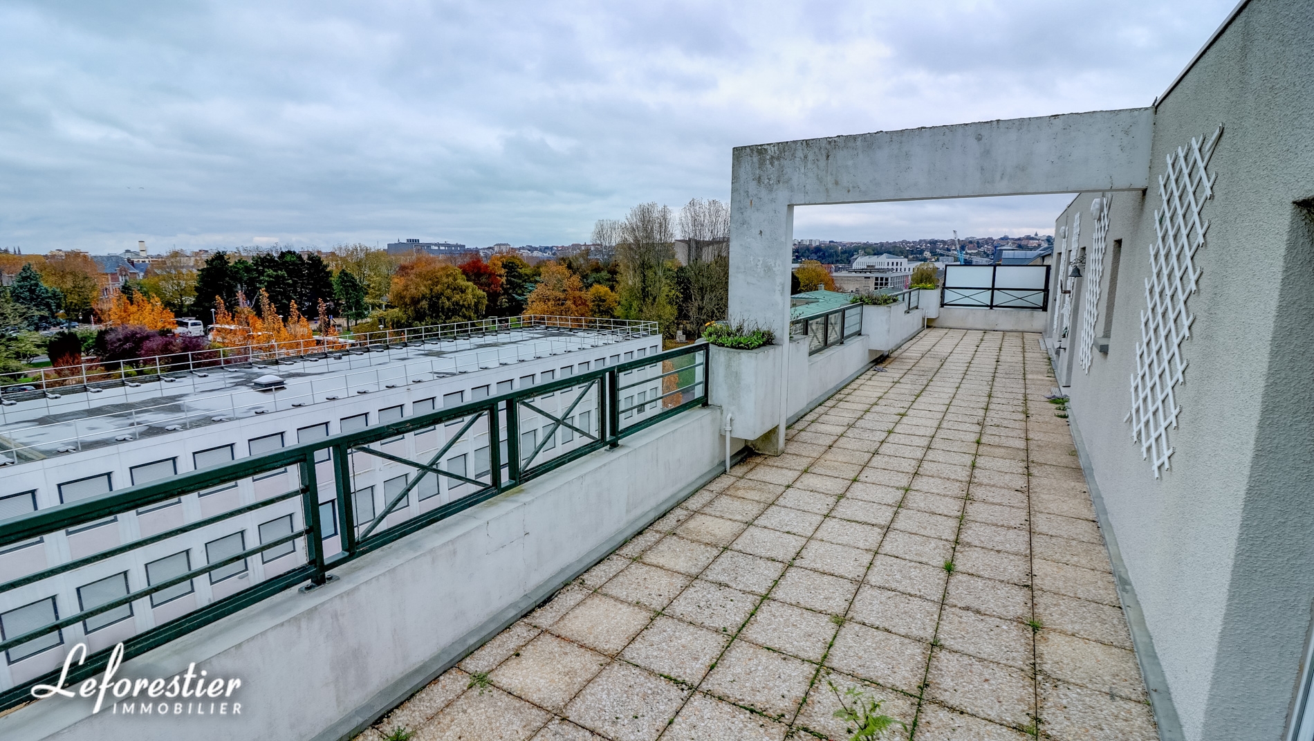 Avec son grand salon traversant la luminosité de la pièce de vie est idéale. Au dernier étage d'un immeuble, vous pourrez profiter des beaux jours sur la terrasse de 45m2 et du balcon de l'autre côté de l'appartement.
