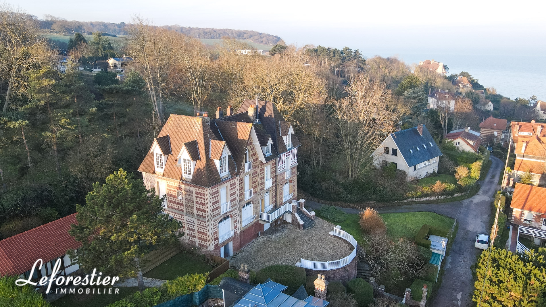 Sur le versant Ouest de la vallée de la scie et surplombant le village de Pourville sur mer, cette belle maison anglo-normande du début du siècle dernier a été transformée en appartements bénéficiant d'une belle vue sur mer. La demeure de caractère est calme et abritée des vents dominants avec un jardin collectif abrité des regards. Sur 3 niveaux les appartements ont une belle vue mer.