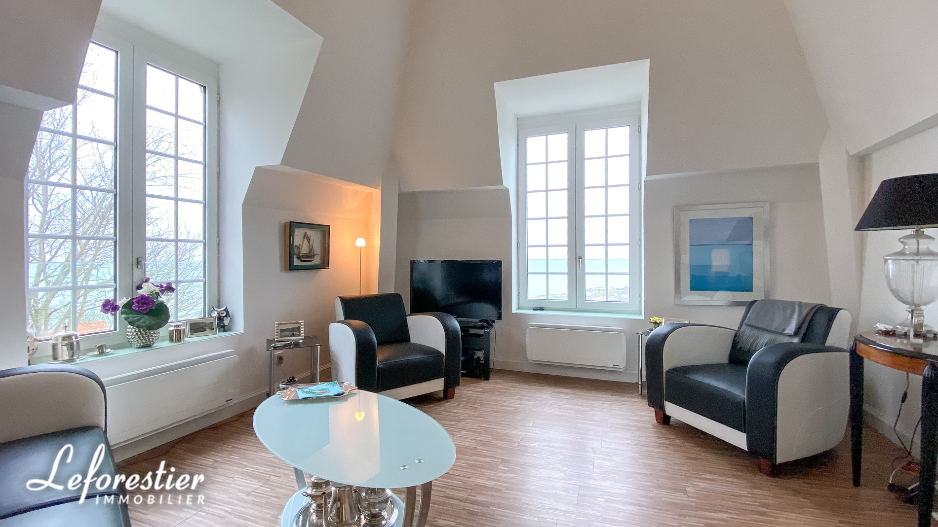 Rénové récemment, l'appartement de 72 m2 au sol (51m2 carrez) est fonctionnel et confortable. Il comprend une entrée avec placards et penderie, une pièce de vie principale lumineuse comprenant le salon avec cheminée fonctionnelle, la salle à manger et la cuisine contemporaine aménagée et équipée. Immanquablement le regard est attiré par la splendide vue dégagée sur la mer et la promenade.