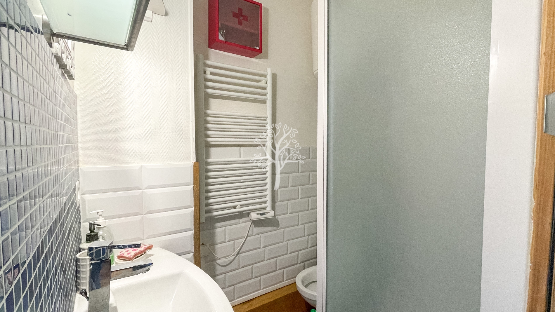Ce studio est équipé de radiateur électrique, d'un ballon d'eau chaude indépendant. Charges annuelles de copropriété : 1135 Euros.