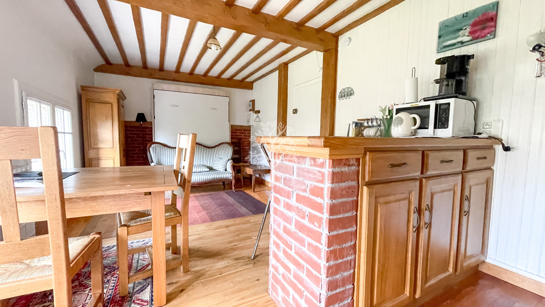 Studio à vendre dans le très remarquable Manoir de l'Ailly à Varengeville-sur-mer. Idéal pied à terre sur la Côte d'Albâtre, ce studio a été parfaitement restauré et est prêt à vous accueillir clés en main.La partie salon est équipée d'un lit escamotable pour optimiser l'espace. À noter que tous les bois qui composent la toiture sont en chêne !