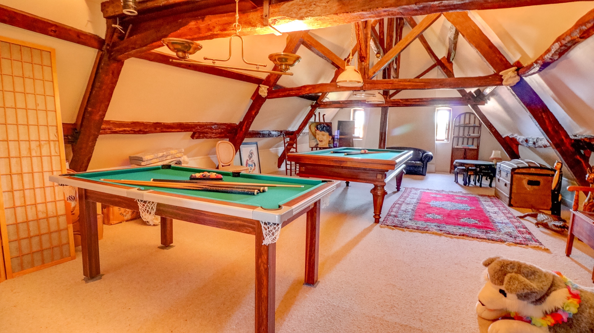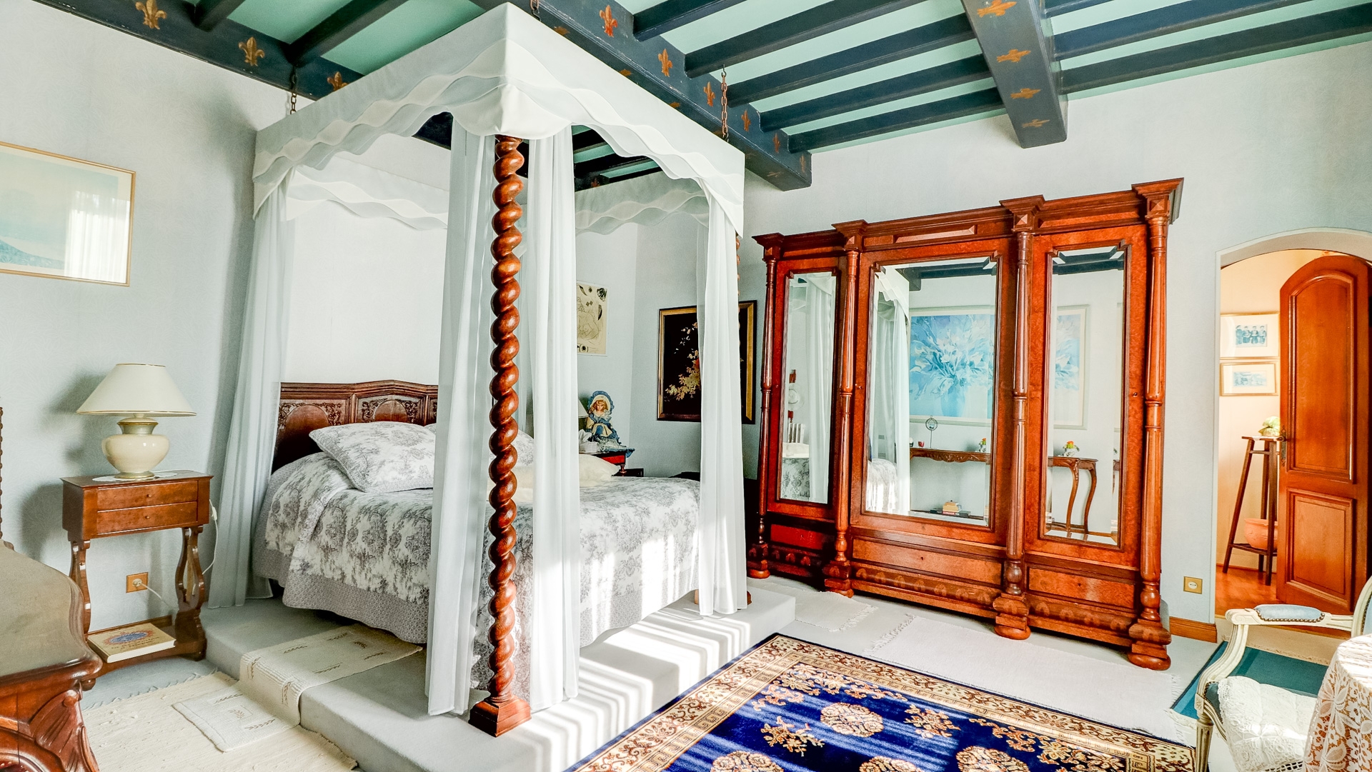 La grande salle de réception avec son immense âtre à l'ancienne fût probablement le lieu de fêtes qui étaient organisées au retour d'expéditions africaines ou asiatiques. Au fil de la visite, vous écumerez les cinq cent ans d'histoire de cette ancienne demeure à l'image des hauts plafonds, et autres caves voutées et souterrains d'antan. Vous retrouverez sur trois niveaux le confort de nos jours : Salle de bain dans chaque chambre, grande cuisine, jardin d'hiver, chauffage central…