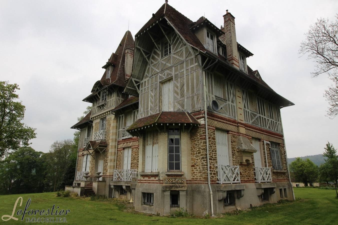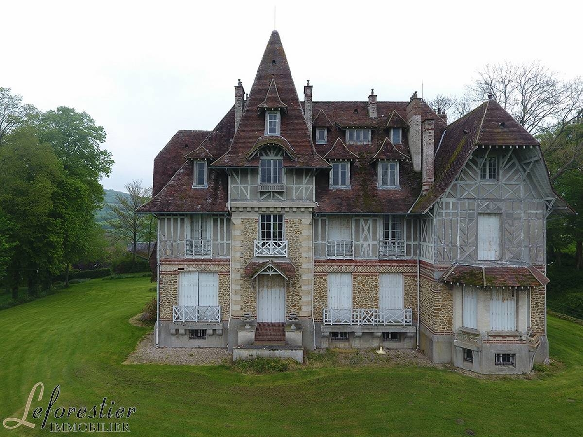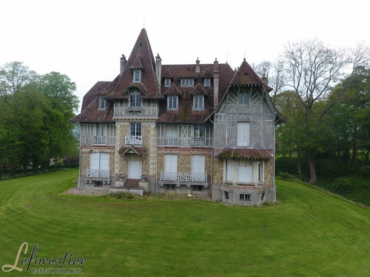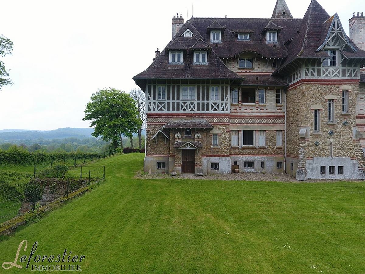 Sur les ruines d’un château fort seigneurial incendié en 1889, cette propriété de caractère bénéficie d’un emplacement exceptionnel, en surplomb des étangs et de la rivière la Bresle. La vue panoramique sur la vallée est magnifique et lointaine. Reconstruit fin du XIXème siècle, début du XXème, cet incroyable château de style art nouveau est original mais toutefois très fonctionnel dans sa conception et distribution. Si l’architecte et le propriétaire se sont probablement fait plaisir en laissant cours à leur imagination, la bâtisse n’en conserve pas moins tous les atouts des châteaux : volumes, hauteur sous plafonds, pièces de réception, nobles matériaux comme les parquets, boiseries et cheminées…