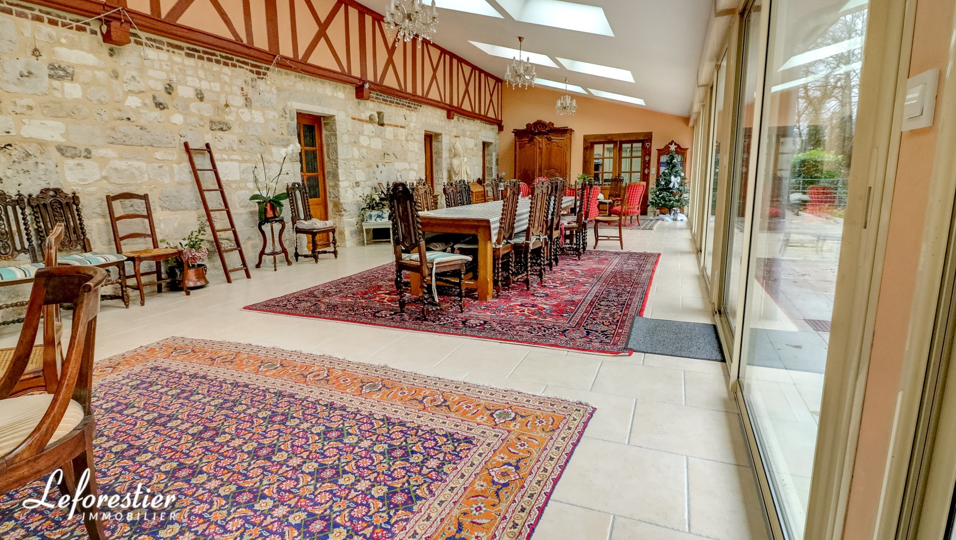 Après avoir parcouru une belle allée, nous nous retrouvons face à cette grande demeure. Son environnement calme et préservé saura charmer les amoureux de la nature. L’agrandissement se marie complètement avec la pierre authentique datant du 18ème siècle.