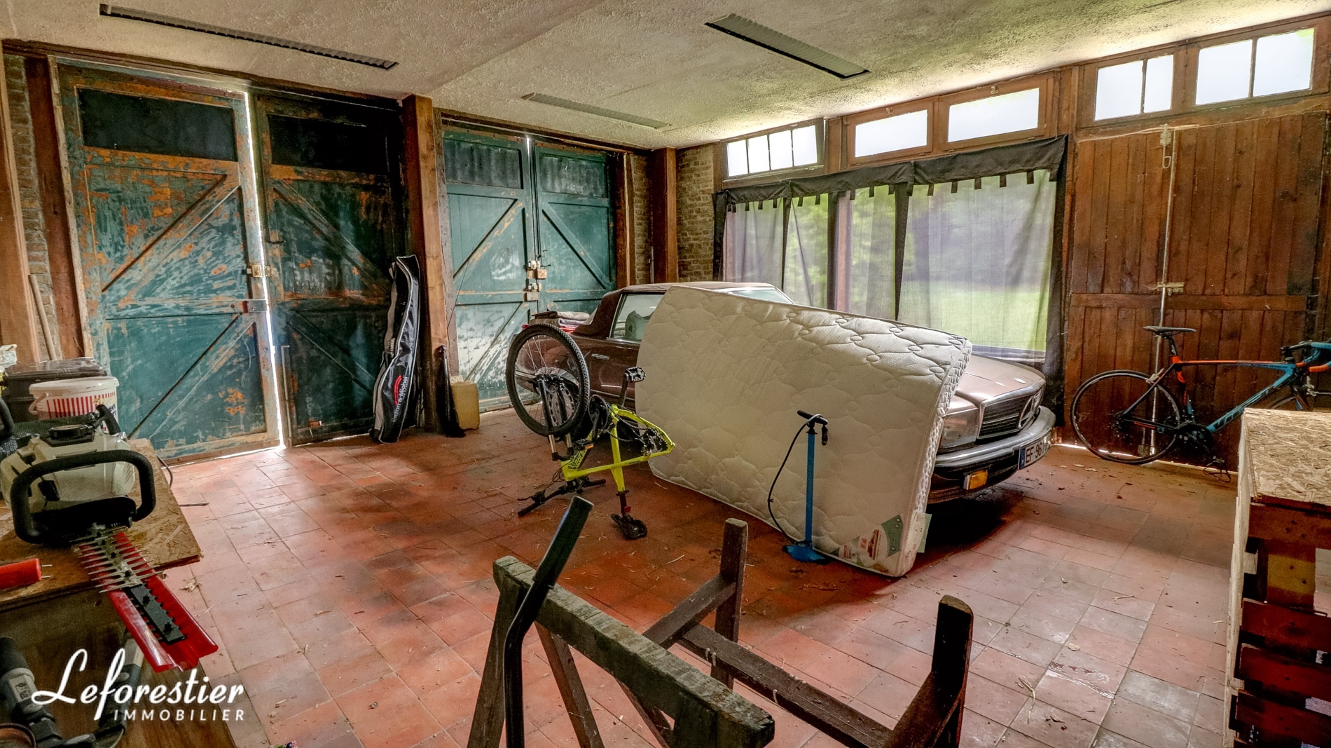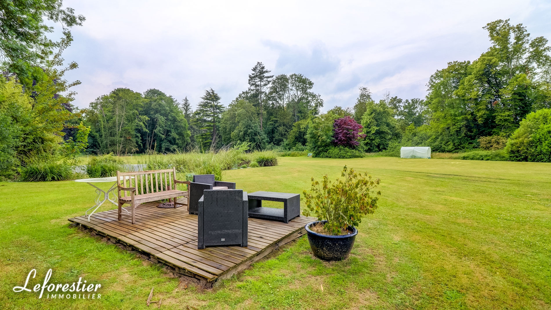 Dans le parc, un ravissant pavillon est divisé en grand appartement avec 2 chambres à l’étage et en 3 garages au rez-de-chaussée.