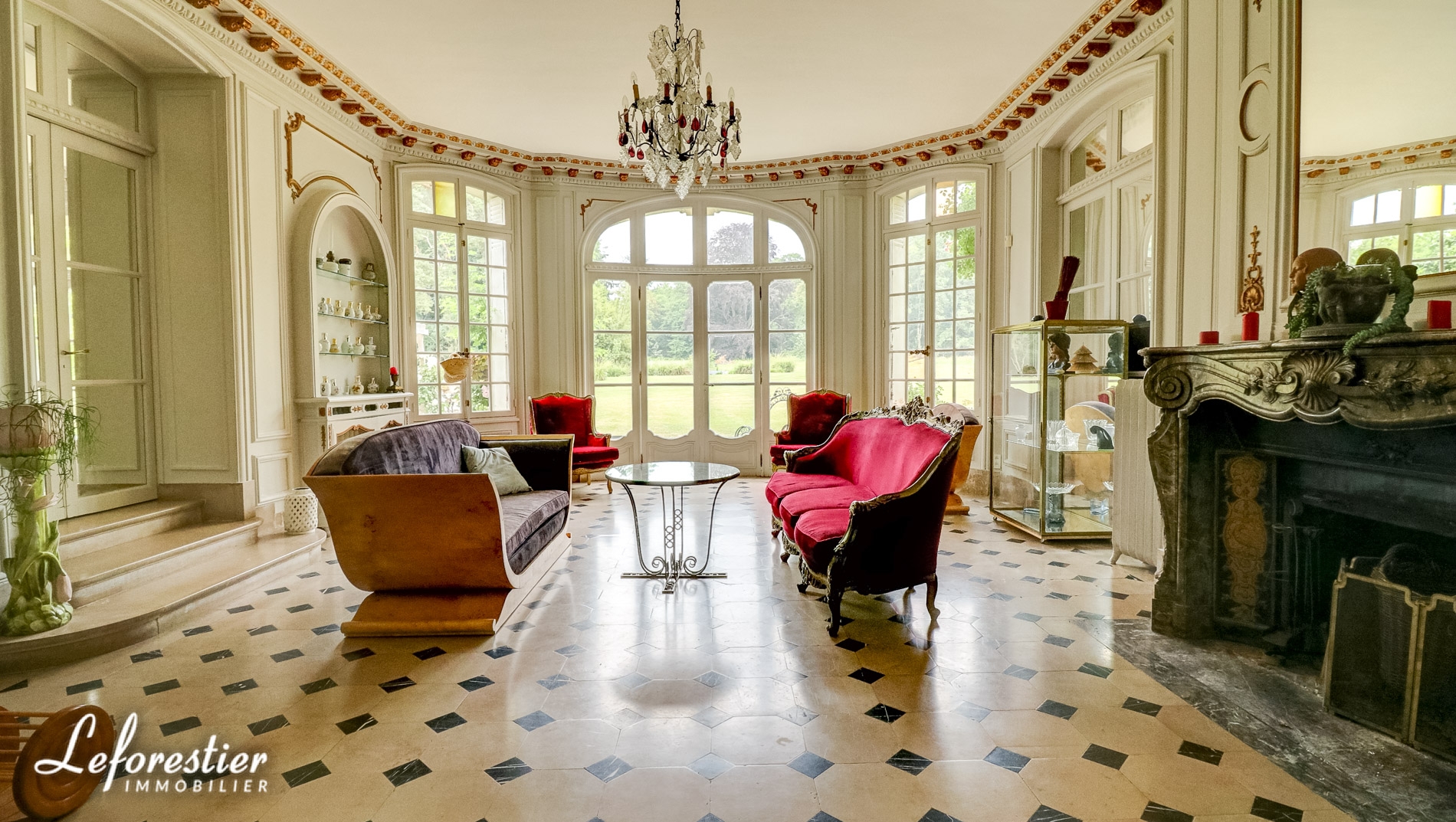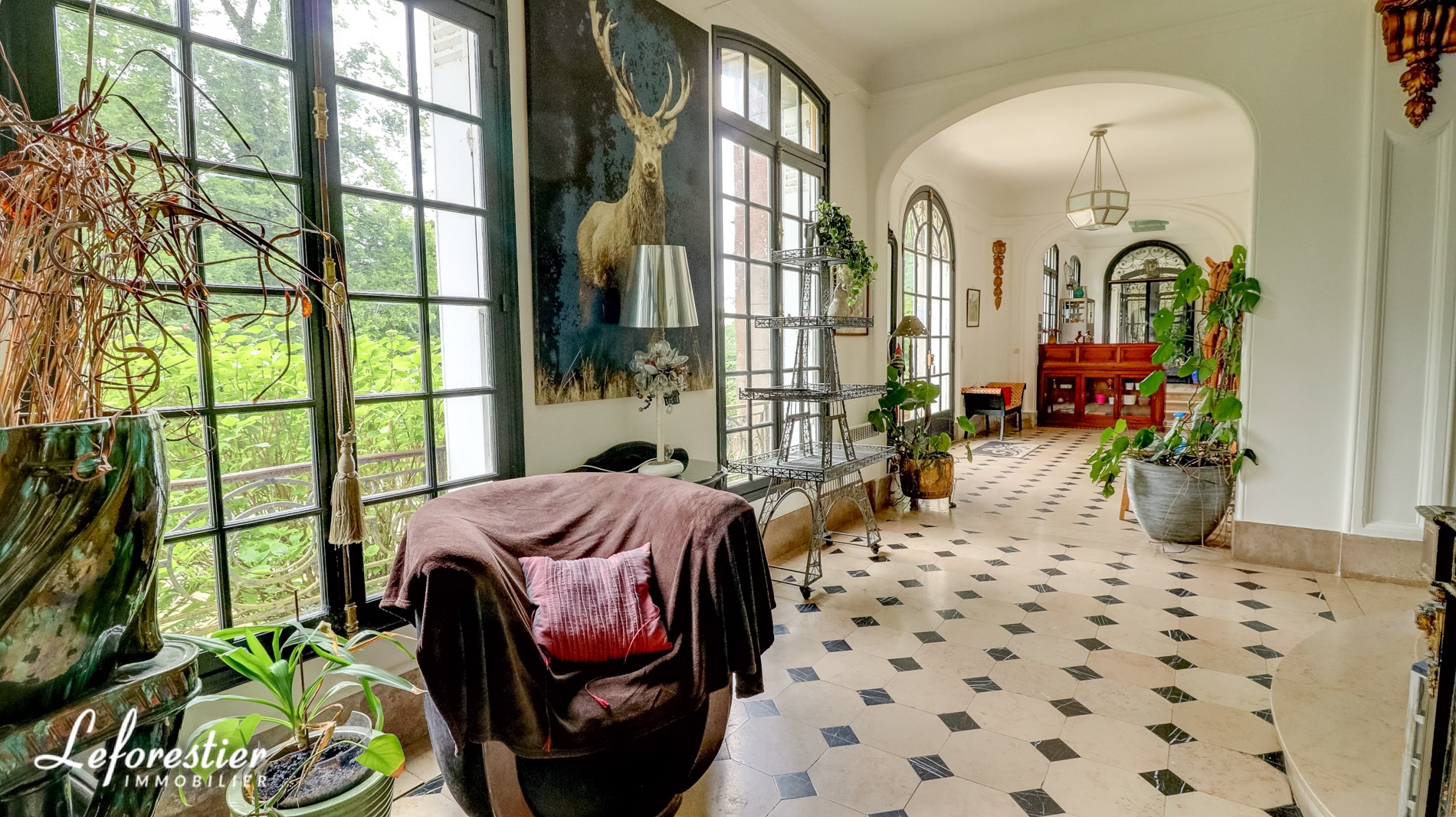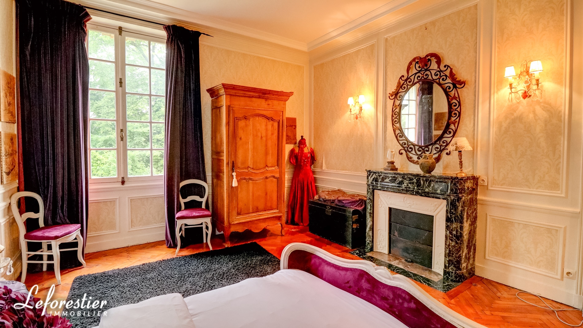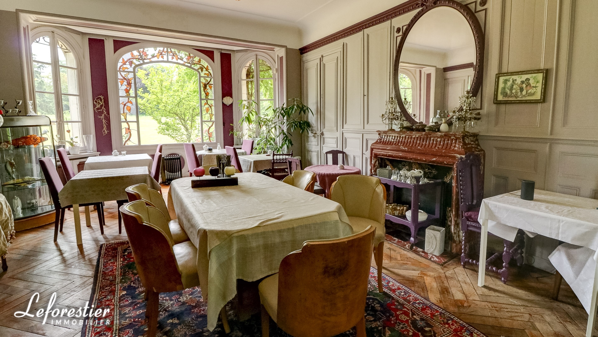 Dominant un splendide parc arboré 8 hectares avec de très belles essences d’arbres séculaires tels que tulipier de Virginie, hêtre pourpre, cèdre du Liban, cette vaste demeure de 850 m2 comprends un vaste hall d’accueil distribuant un grand salon et sa magnifique cheminée en marbre et moulures, une salle à manger et ses vitraux, un bureau et sa bibliothèque avec de splendides éléments en stuc.