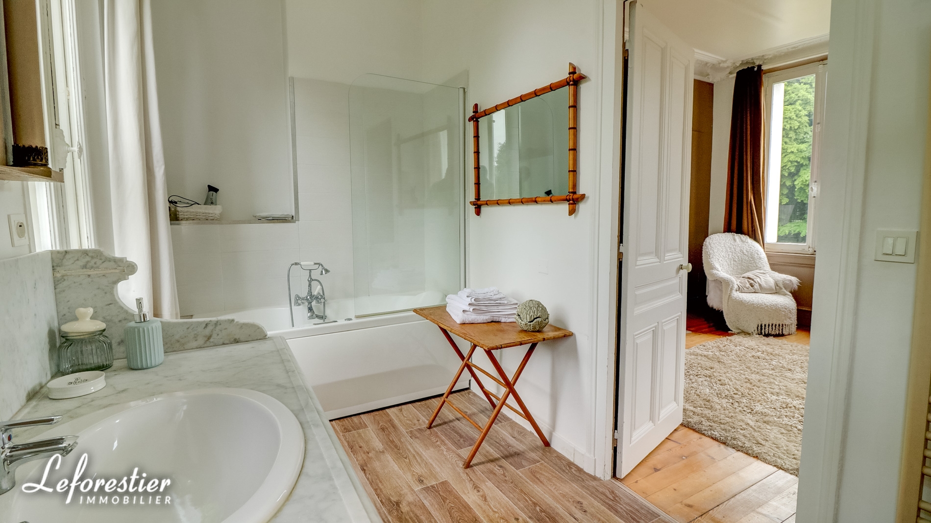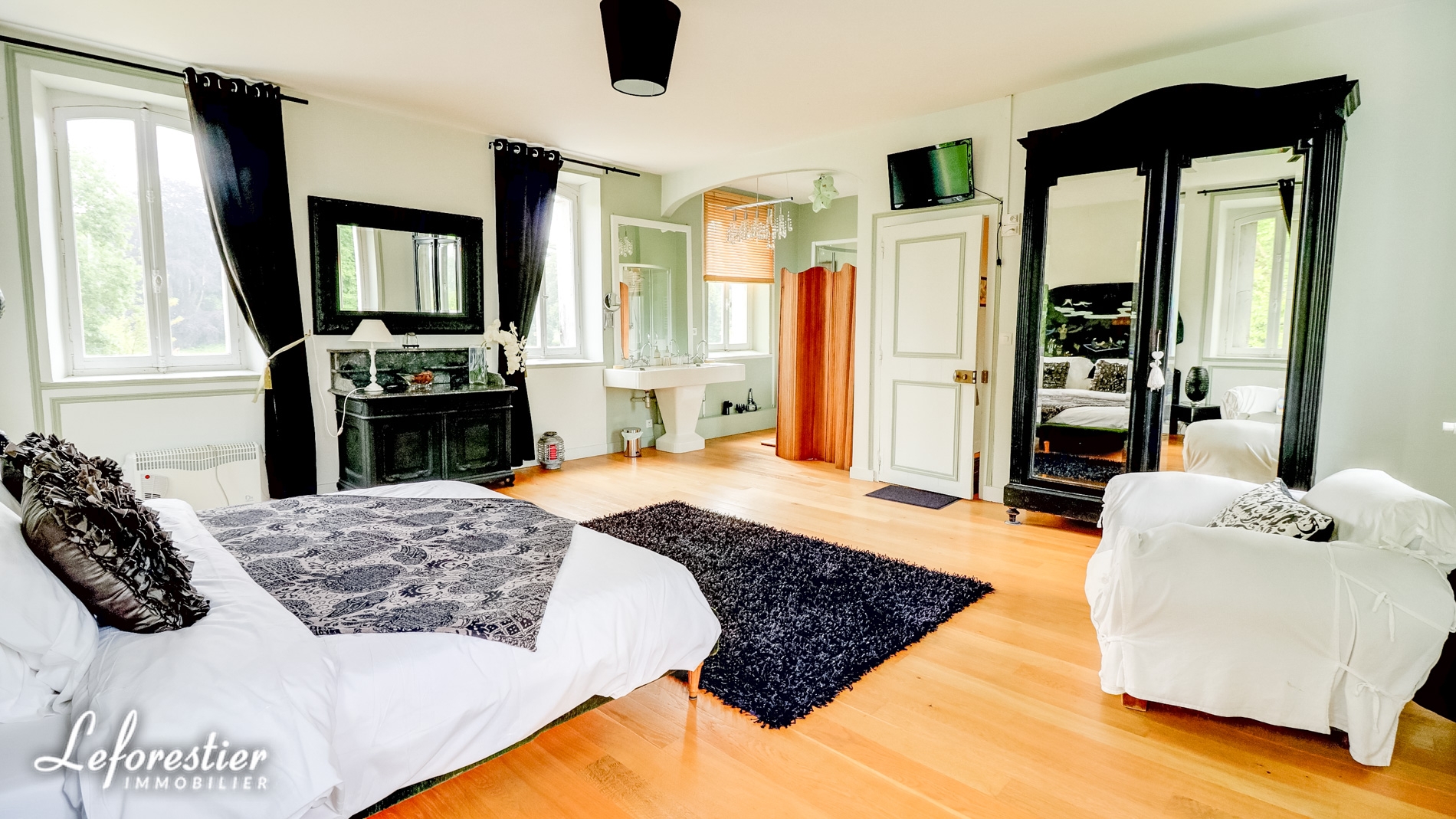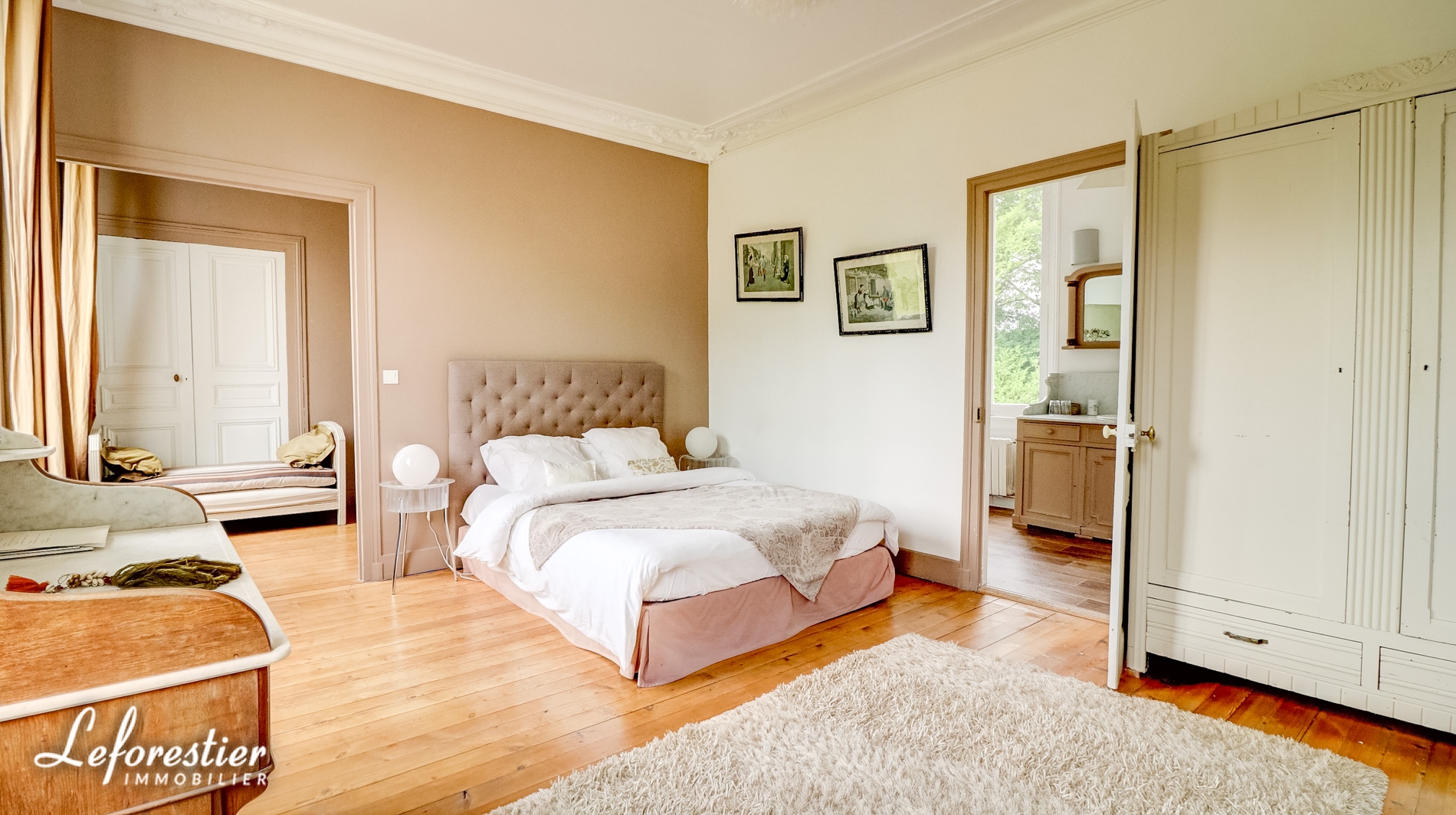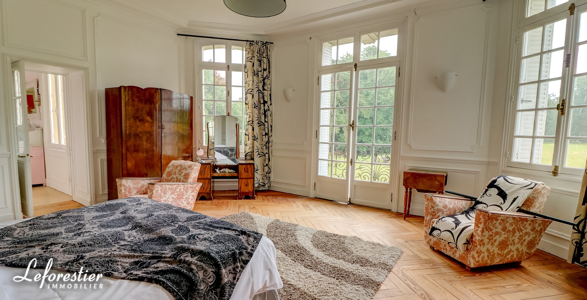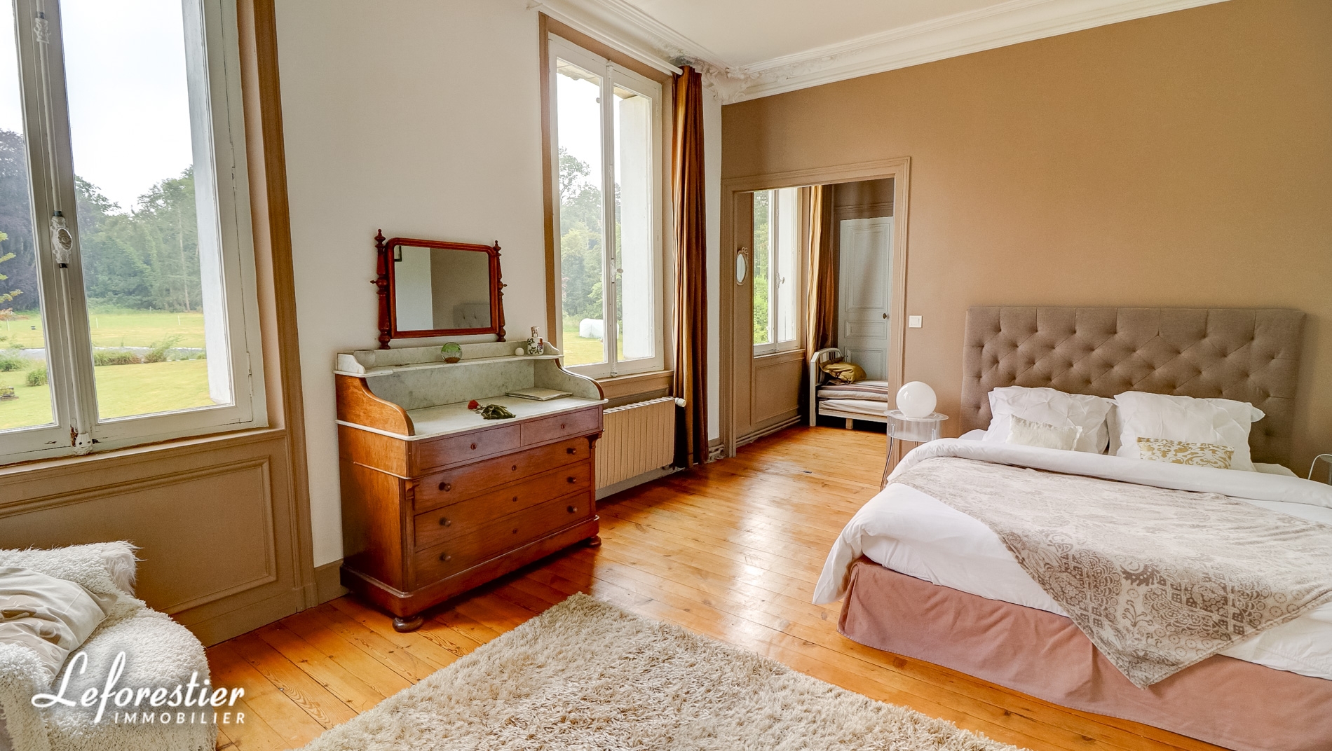 Dominant un splendide parc arboré 8 hectares avec de très belles essences d’arbres séculaires tels que tulipier de Virginie, hêtre pourpre, cèdre du Liban, cette vaste demeure de 850 m2 comprends un vaste hall d’accueil distribuant un grand salon et sa magnifique cheminée en marbre et moulures, une salle à manger et ses vitraux, un bureau et sa bibliothèque avec de splendides éléments en stuc.