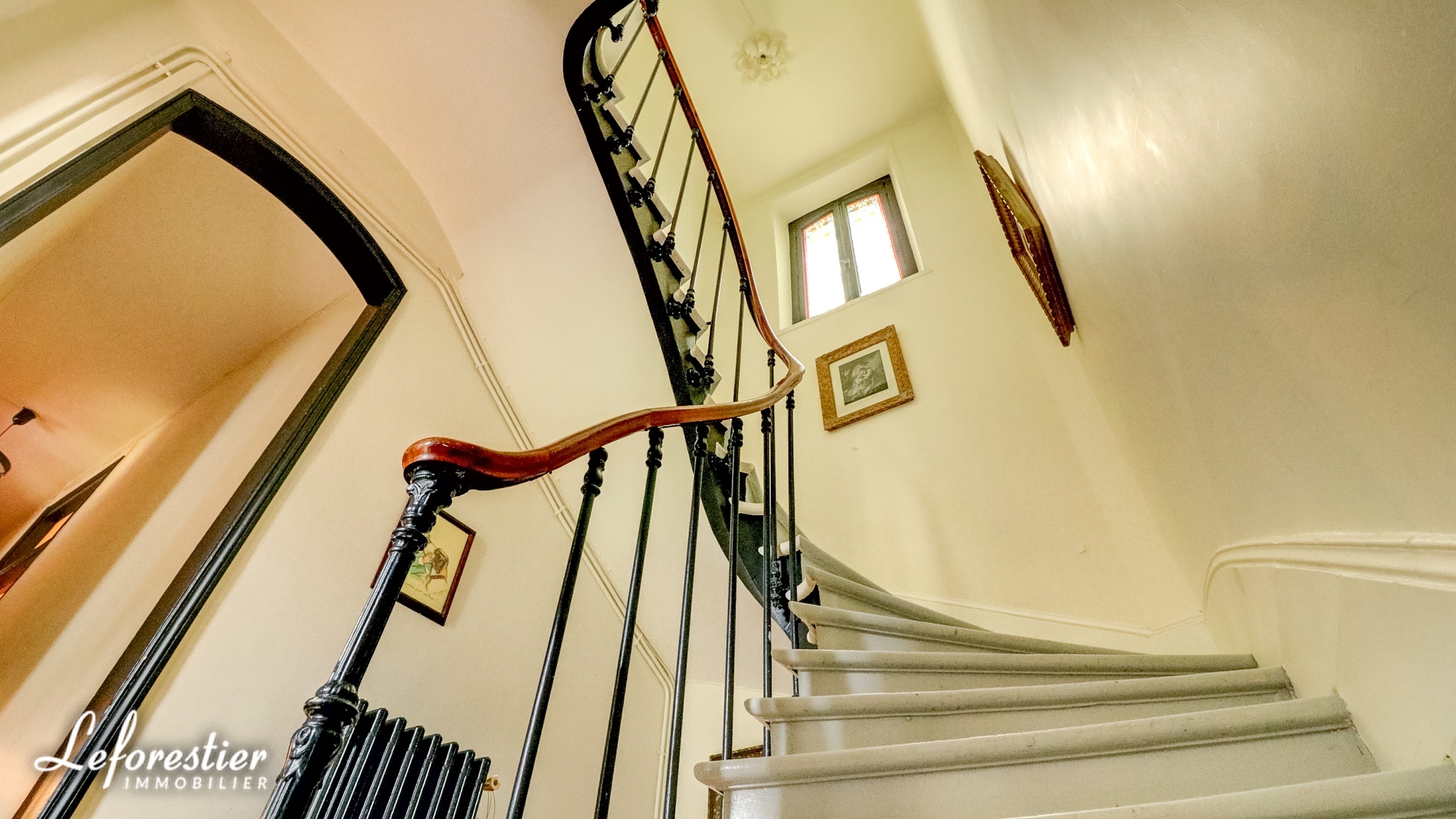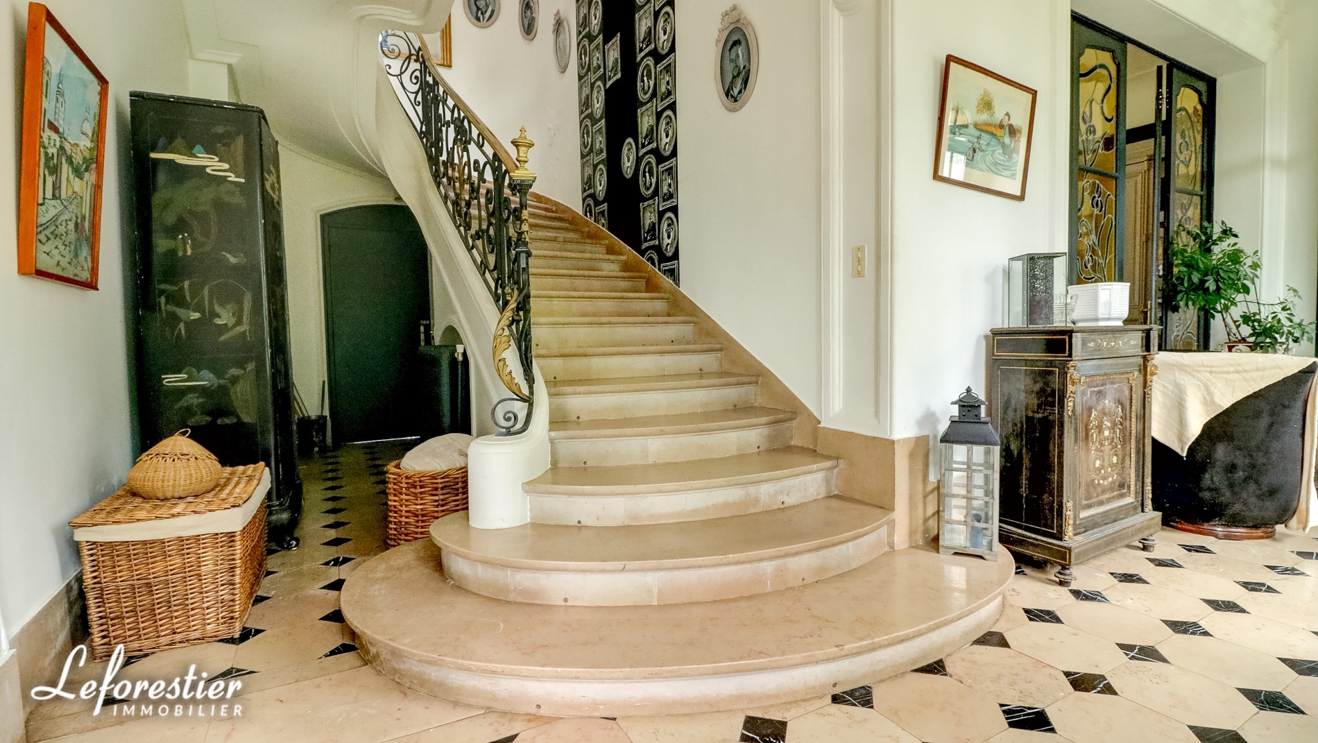 L’escalier en marbre et sa rampe en fer forgé dessert avec les deux autres escaliers secondaires, les 11 chambres avec salles de bains en suite.