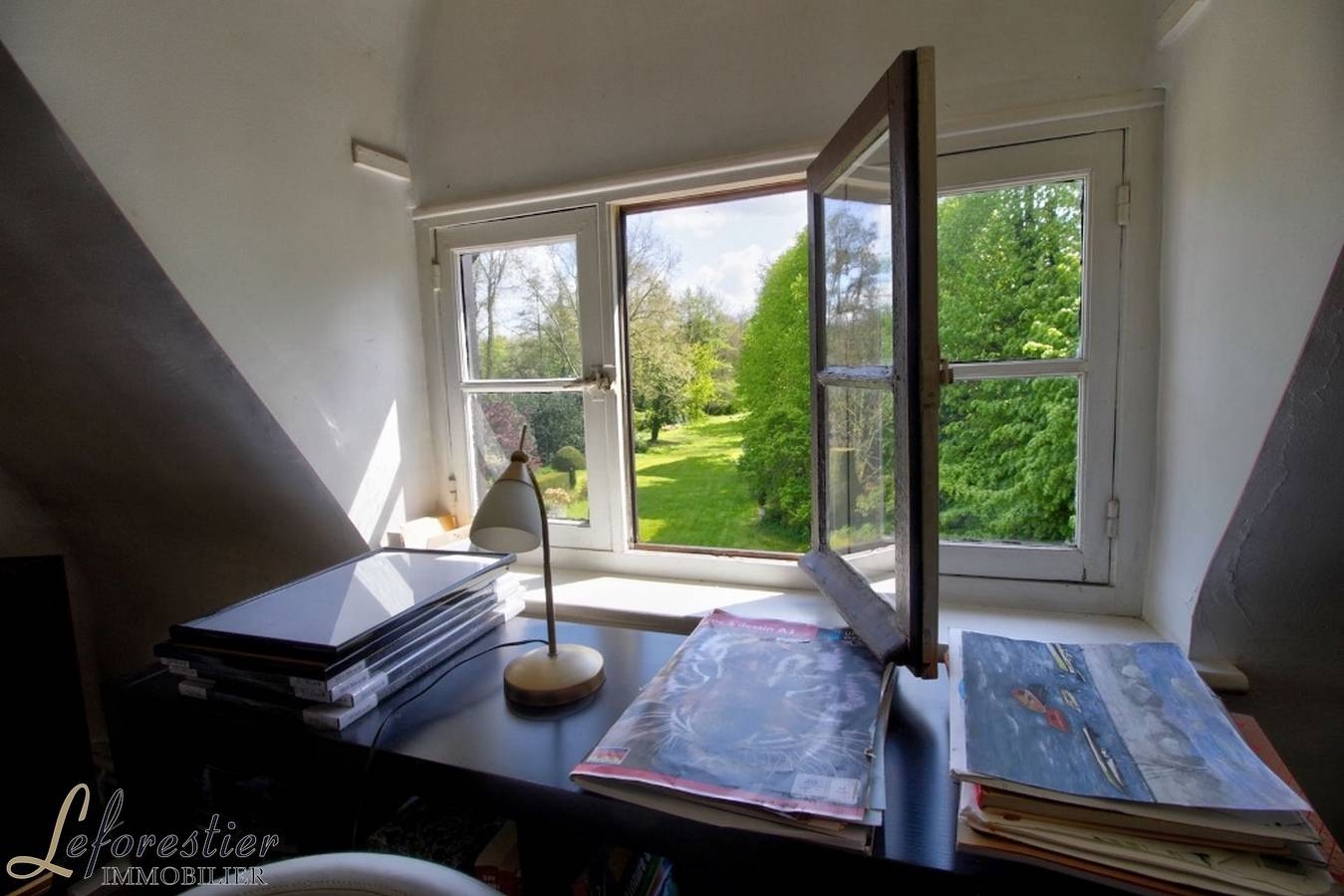 Campé entre la Saâne et le Montceau, deux rivières qui se jettent dans la Manche toute proche, le parc de ce manoir anglo-normand aux arbres majestueux dévoile tous ses attraits. Dans ce bel écrin de verdure se niche effectivement un remarquable jardin à l’anglaise composé de massifs d’hortensias et de rhododendrons, ponctuant le paysage en toute saison de touches de couleurs variées. Inspirée de la magnifique demeure du Parc des moutiers à Varengeville-sur-mer, la bâtisse a suivi les évolutions du temps affirmant résolument son style britannique. Les fenêtres à guillotine confirment son parti pris.