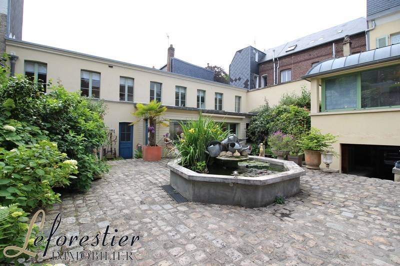 Dans le quartier résidentiel de Caude-Côte situé à proximité immédiate du centre historique et culturel de la ville, notre propriété de caractère à vendre fut bâtie dans le secret d’une cour intérieure avec cette brique dieppoise. Passé le portail surplombé de l’ancien logement du palefrenier, une allée pavée de grès vous emmène jusqu’à cet espace privilégié, en retrait de l’animation des rues voisines. Le long des murs de briques, d’élégants massifs de plantes apportent la touche paysagère à cette cour carrée si charmante. Au milieu, un filet d’eau s’écoule de la fontaine. Le décor est posé.