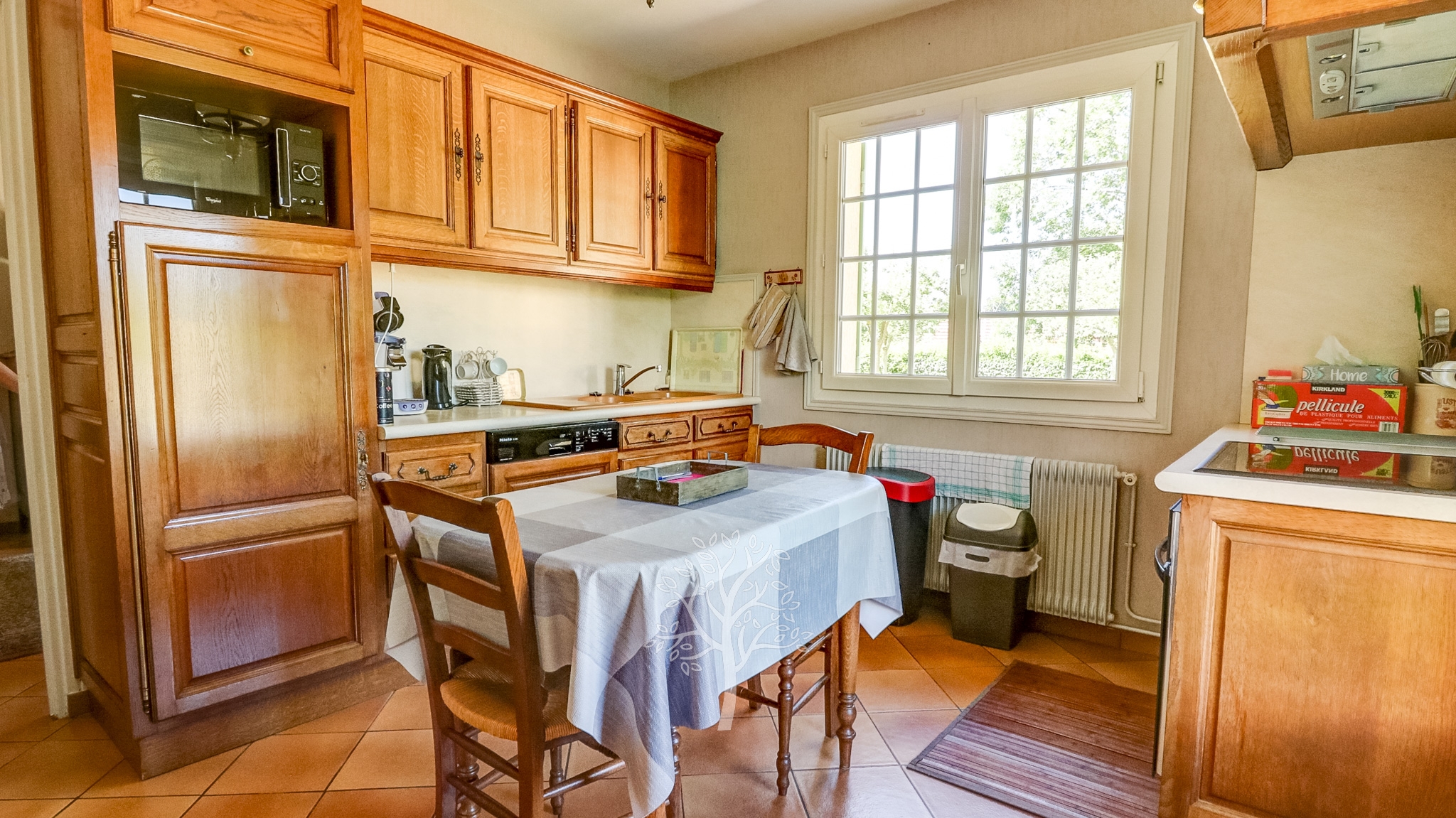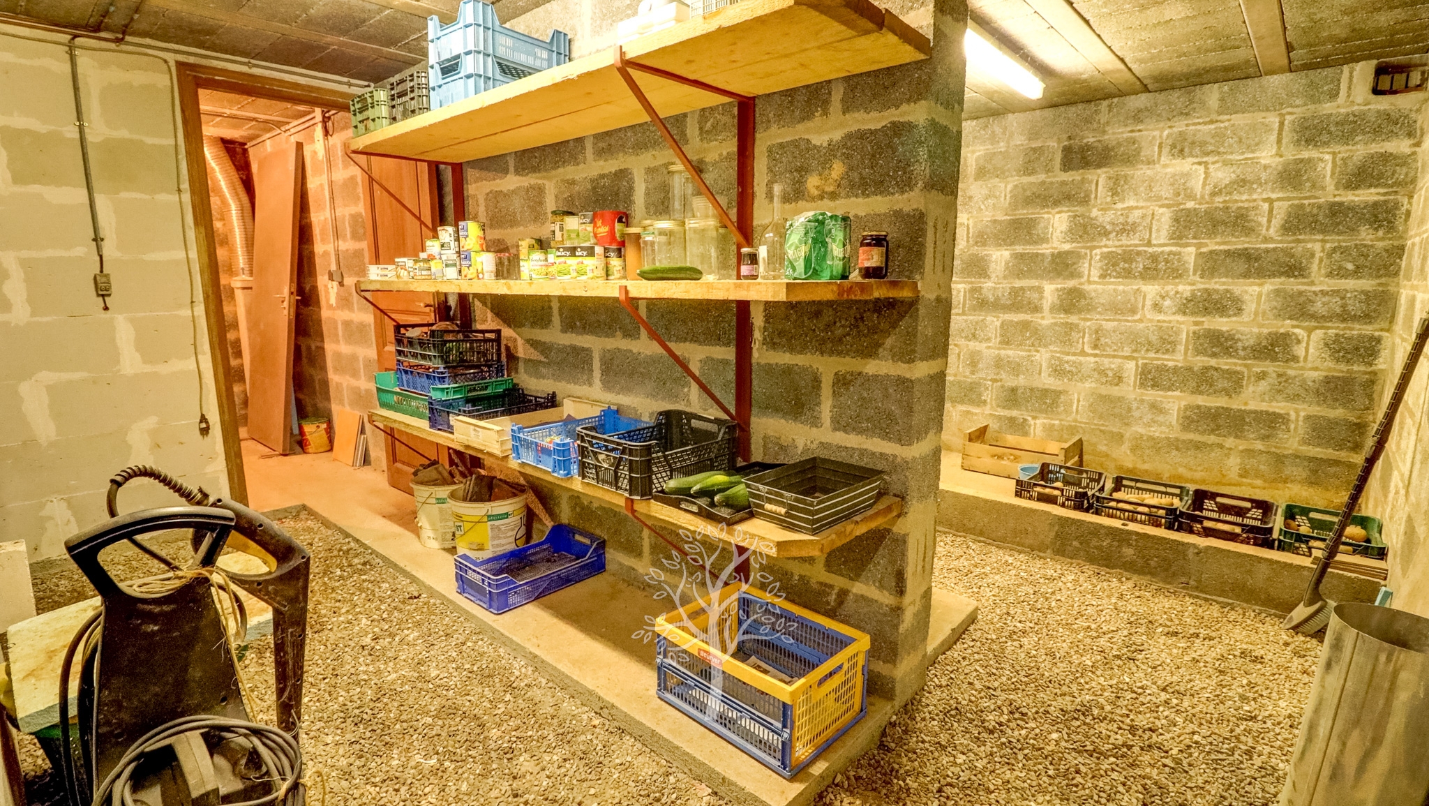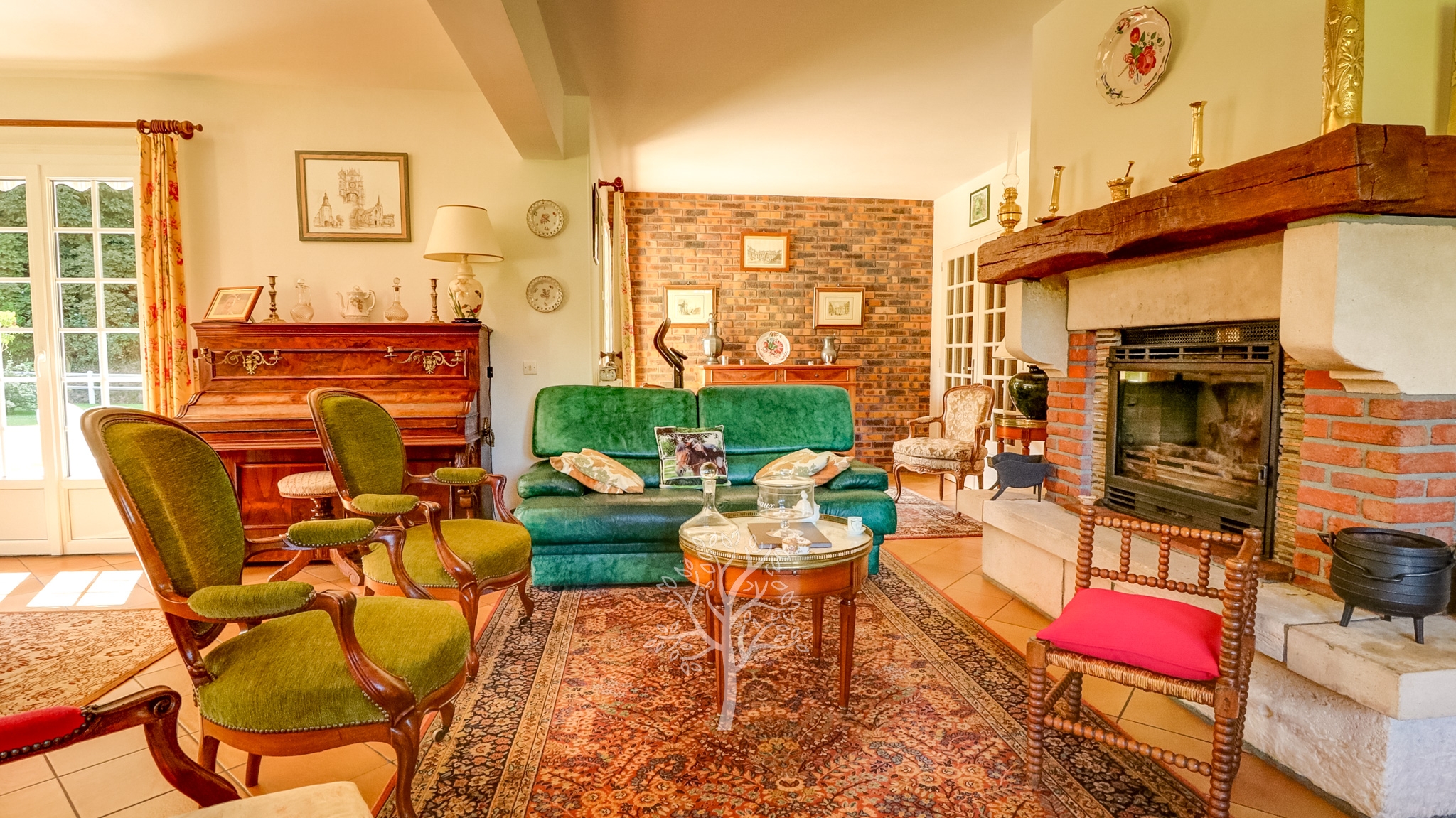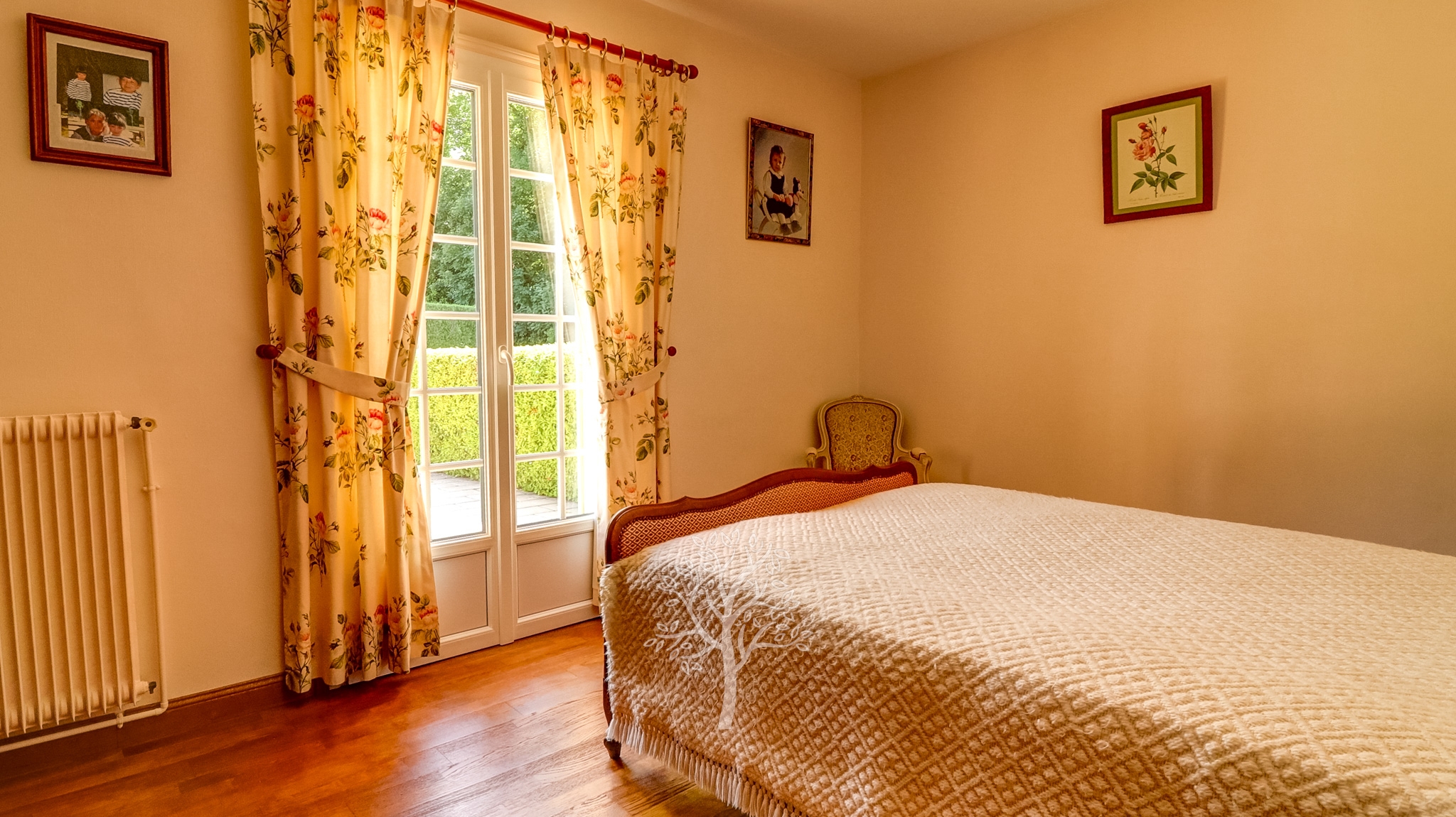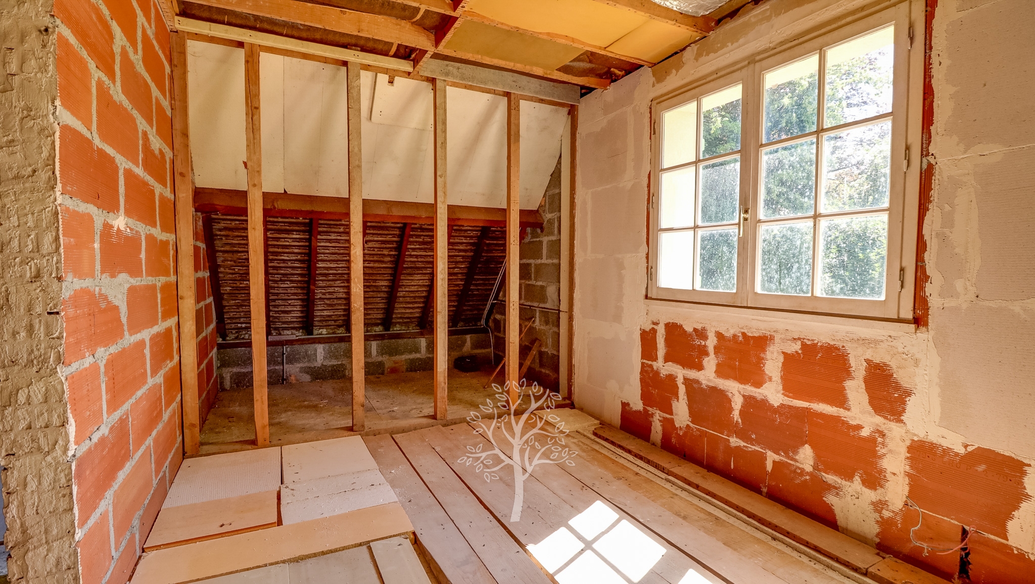 De l’entrée, le visiteur découvre un immense séjour doté de nombreuses ouvertures où la lumière pénètre abondamment. Durant l’hiver, la grande cheminée complète harmonieusement le caractère apaisant de cette vaste pièce où des grandes réceptions familiales ou amicales sont organisées. Auprès de la cuisine, une salle à manger s’offre pour les petits déjeuners ou les dîners plus intimes. Les trois chambres et la salle de bain du rez-de-chaussée ont suffi à la famille des propriétaires. Toutefois, l’escalier et les ouvertures de l’étage attendent un aménagement de trois chambres supplémentaires, d’une ou de deux pièces d’eau, d’un appartement indépendant ou encore d’une vaste bibliothèque-vidéothèque-salle de jeux. Le potentiel est là.