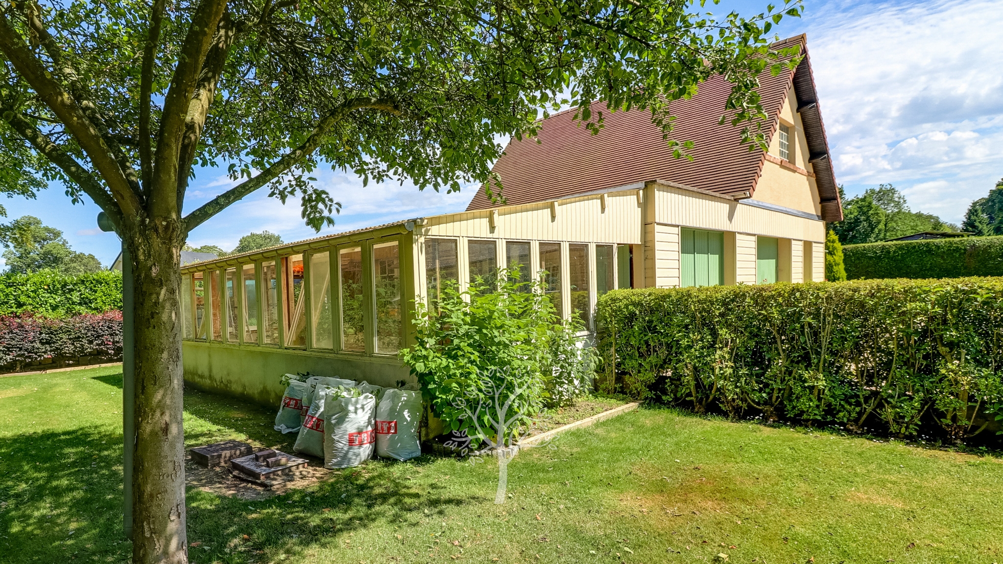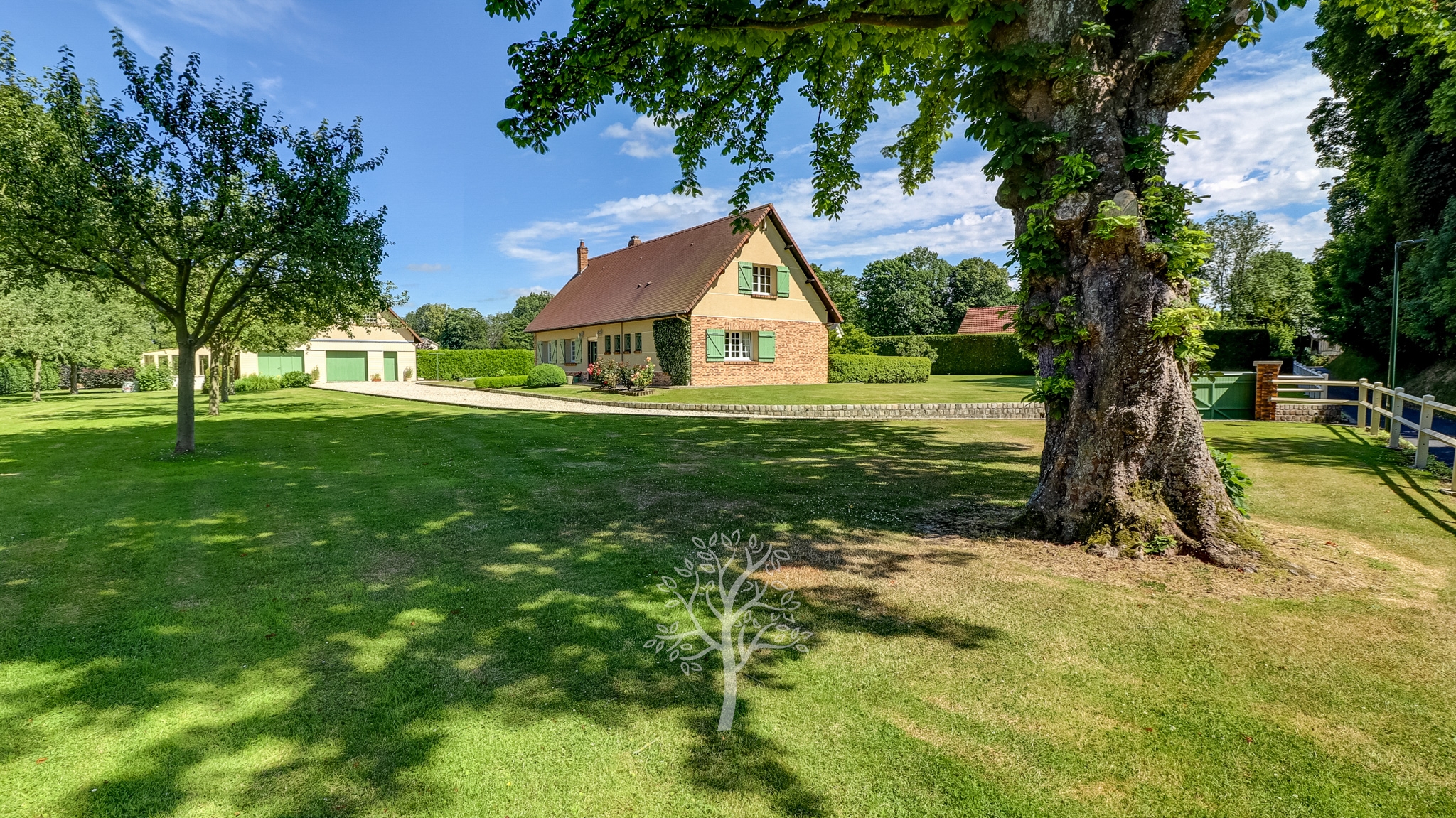 Située dans un environnement privilégié à proximité du parc d’un magnifique château Napoléonien, cette maison a été construite avec passion et soin par son propriétaire, lui-même entrepreneur dans le bâtiment. L’accès, entre les alignements d’arbres magnifiques et les clos masures préservés typique du Pays de Caux, conforte la première impression de calme et de sérénité. Joliment clôturé, le portail s’ouvre sur une allée parfaitement entretenue, comme le reste de la propriété. La grande maison couverte d’une élégante tuile normande en impose.