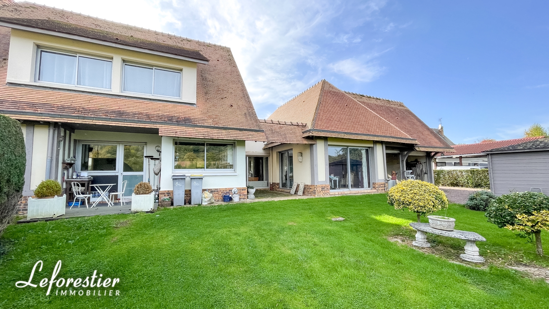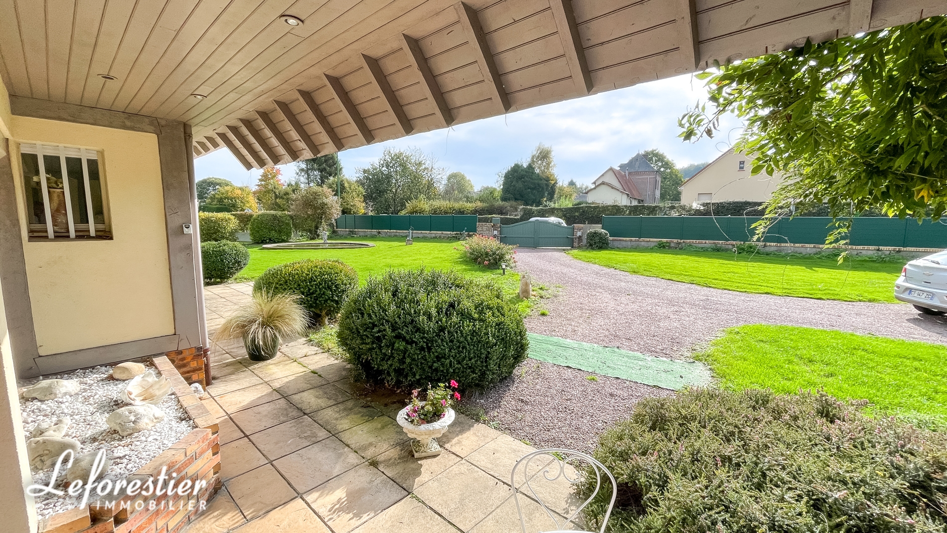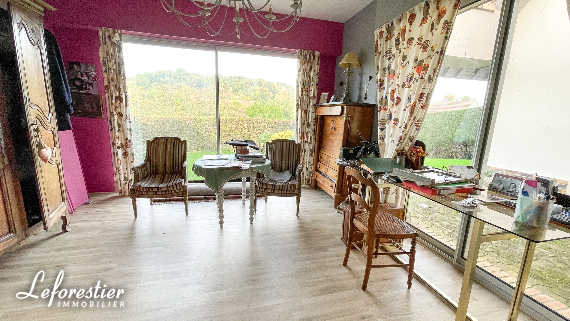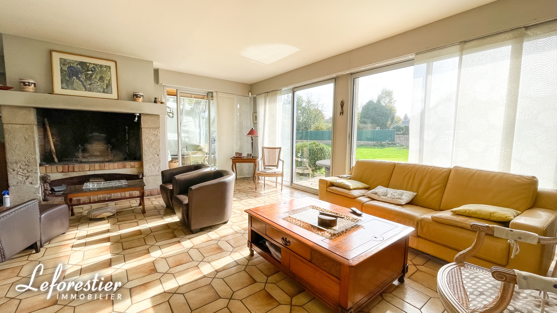 Située dans un village paisible de la vallée de la Saâne, entre Rouen et Dieppe, entre Val-de-Saâne et Luneray, cette maison moderne est construite dans un style néo-normand très léger, avec de grandes baies vitrées en aluminium et une véranda. La lumière inonde le vaste séjour qui s’articule autour d’une cheminée de belle facture où crépite un feu de bois. Elle peut aisément recevoir un appareil de chauffage du type insert ou poêle à granulés pour économiser l’énergie fossile. En véritable maison de famille, elle dispose de nombreuses chambres dont une de plain-pied. Si nécessaire, le double garage attenant représente un potentiel habitable supplémentaire pour un bureau ou d’autres chambres indépendantes.