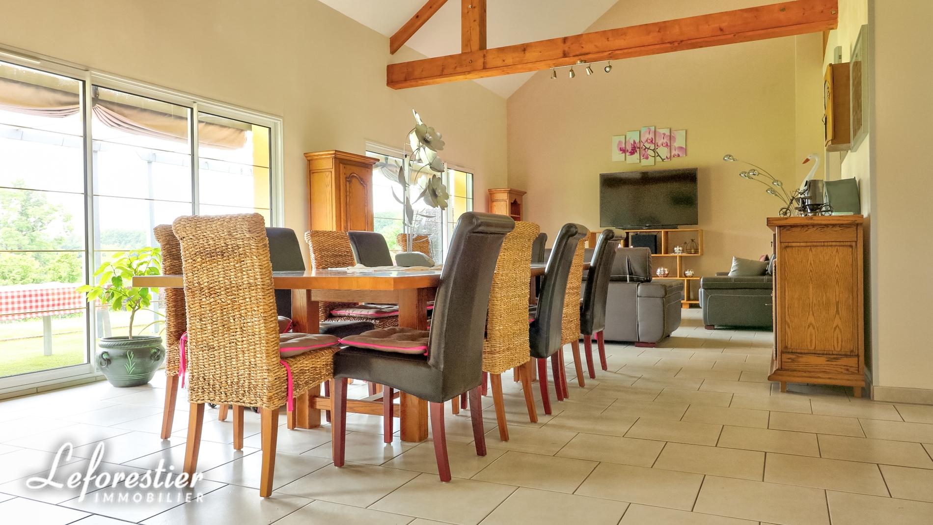 Grâce à ses grands volumes et ses 6 chambres, cette charmante maison est idéale pour accueillir une famille en maison principale comme secondaire. Le salon / salle à manger est doté d’un toit cathédral, ce qui rend l’espace très chaleureux. Les chambres et les deux salles de bains du rez-de-chaussée permettent une vie de plein pied tout en pouvant accueillir du monde à l’étage.