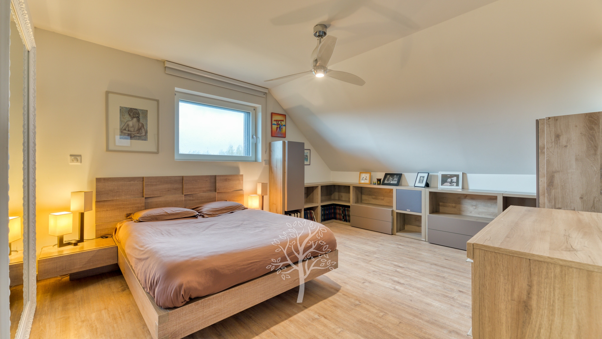 Fabriquée selon les normes les plus élevées de la construction écologique, cette maison passive est un modèle d'efficacité énergétique. Grâce à son isolation thermique optimale, elle maintient une température confortable en toutes saisons, réduisant ainsi considérablement les besoins en chauffage et en climatisation.