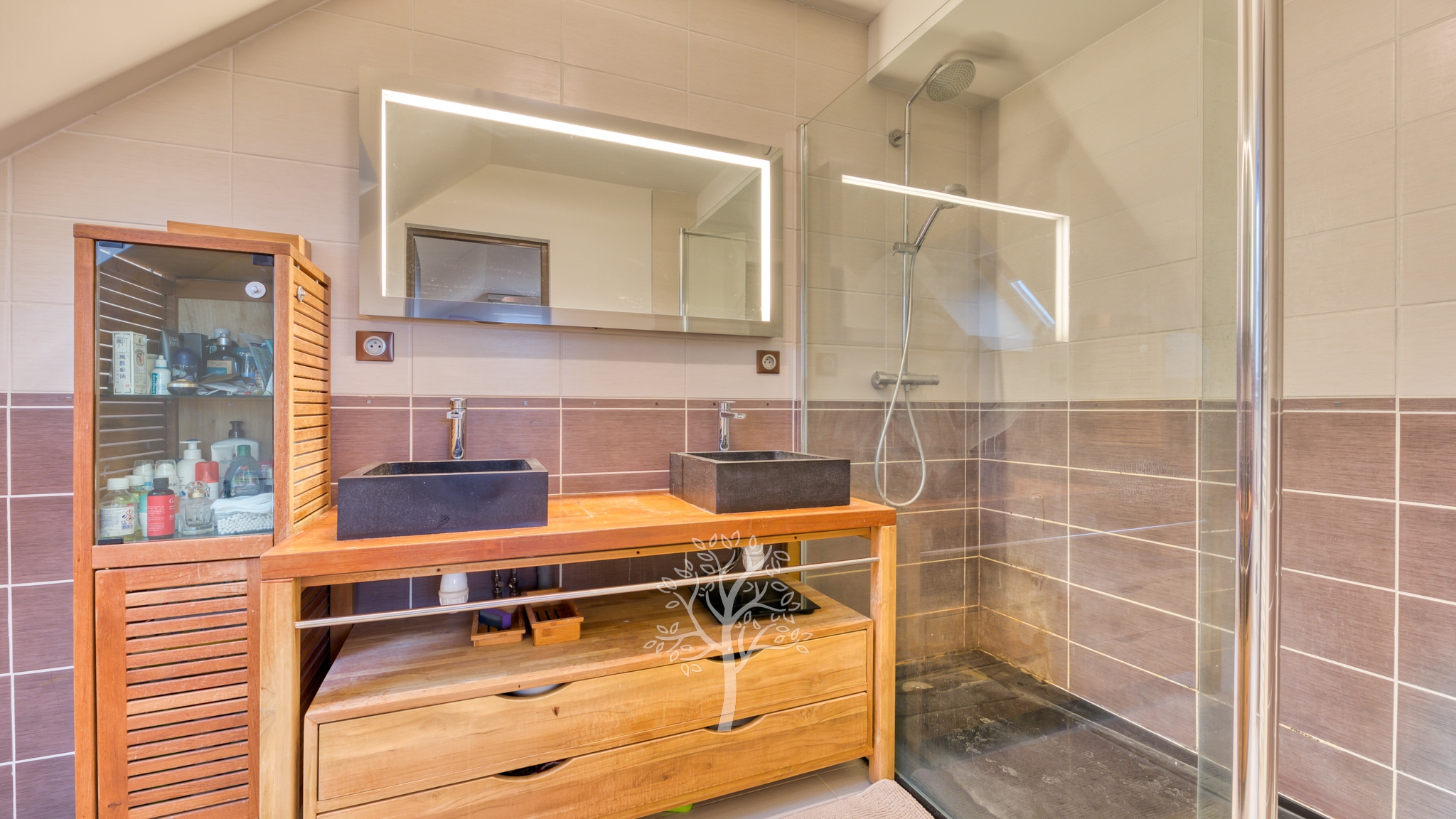 Un grand jardin paysager de 2000m2 entoure la maison, offrant un espace idéal pour se détendre et profiter du calme de l'environnement Une terrasse en bois de près de 100m2, permet de profiter de la piscine et de moments de convivialité en famille.