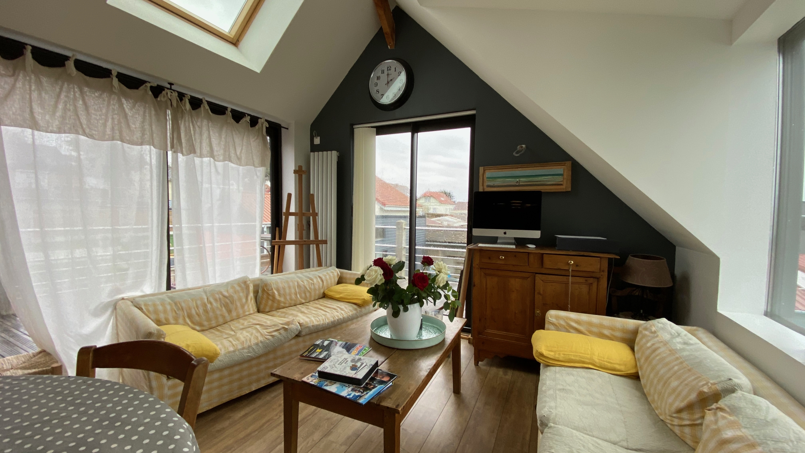 Cette belle maison d’architecte a été construite en 2015. Ce type de construction en ossature bois offre des volumes de pièces agréables, de la luminosité et des performances d’isolation incomparables ! Vous profitez de la chaleur des rayons du soleil qui pénètre les pièces de vie pour réchauffer votre intérieur. En été, une grande terrasse côté sud accueille les invités pour des déjeuners ou diners face à la mer.