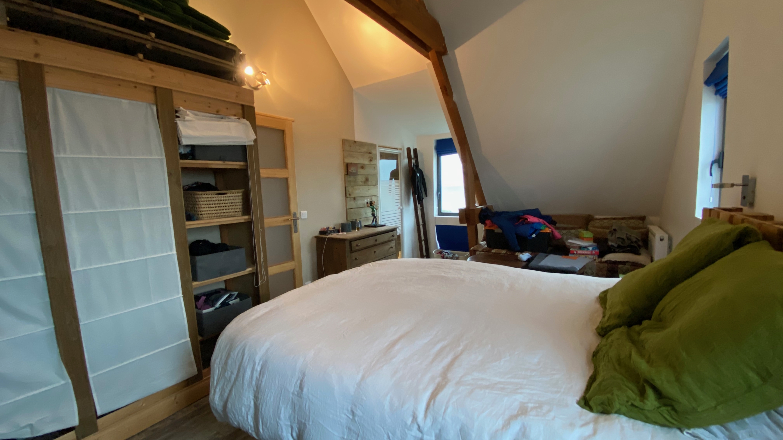 La maison est actuellement divisée en deux parties pour pouvoir louer de façon indépendante le rez-de-chaussée ou l’étage. Il y a 3 chambres dans la configuration actuelle. Il serait aisément possible d’imaginer plus de chambres en dédiant le rez-de-chaussée aux pièces de nuit. Ainsi l’on garde les pièces de vie à l’étage pour profiter au mieux de la vue mer.