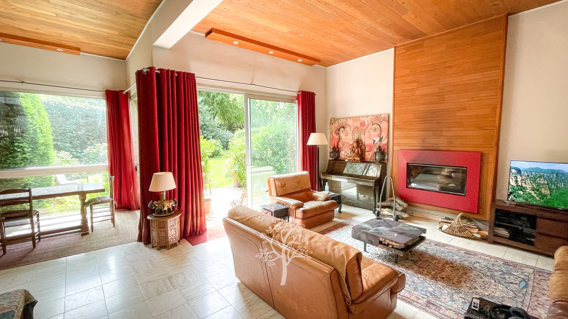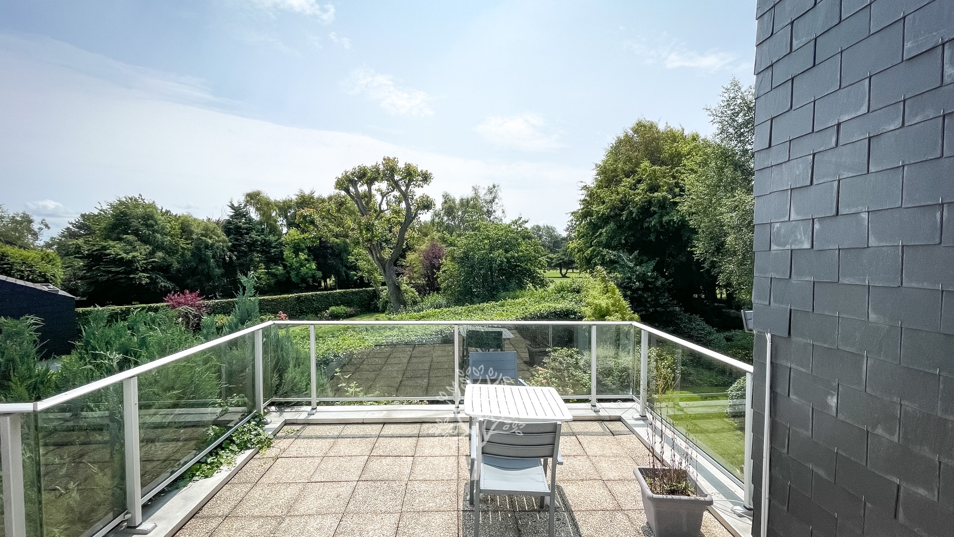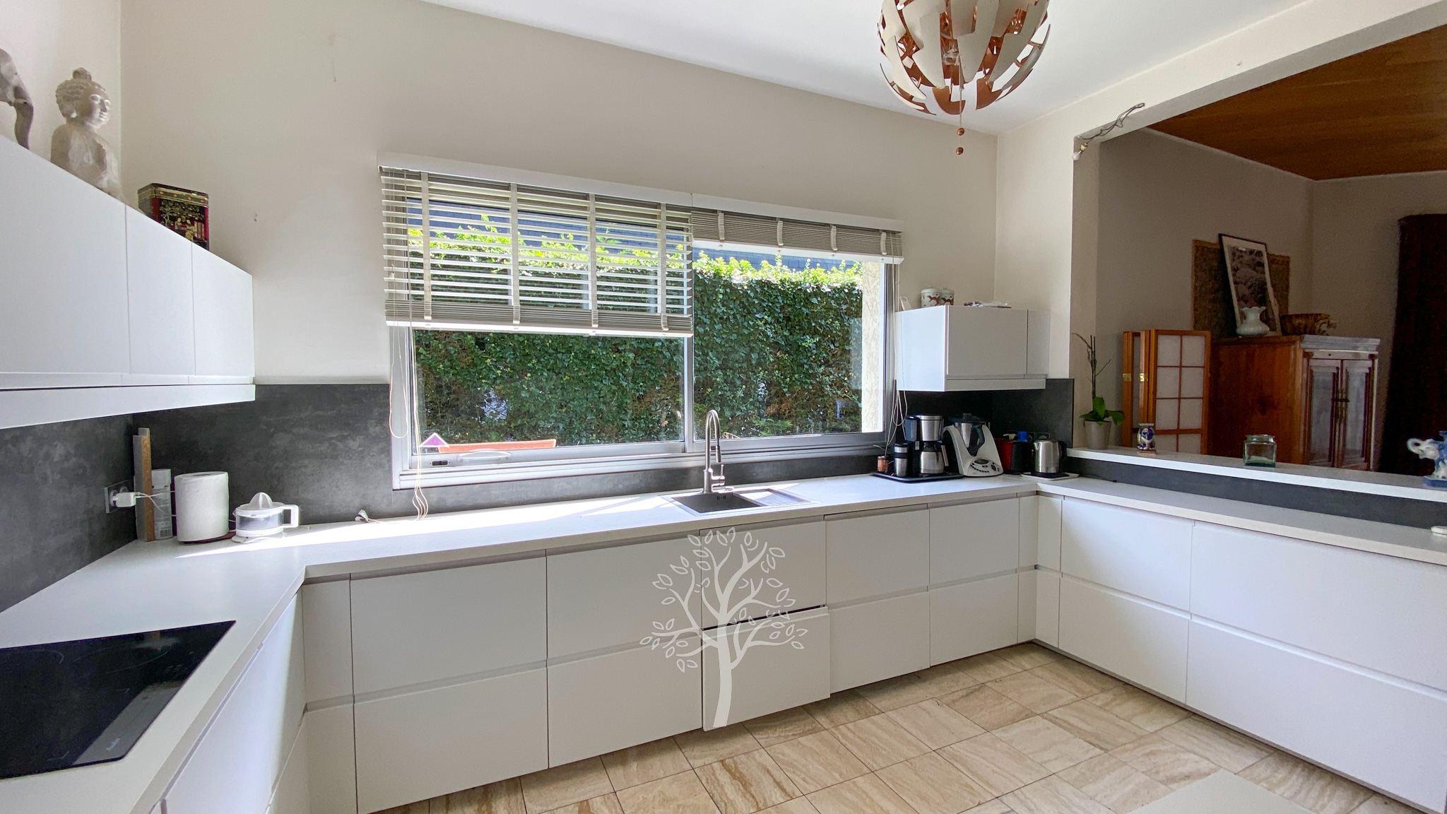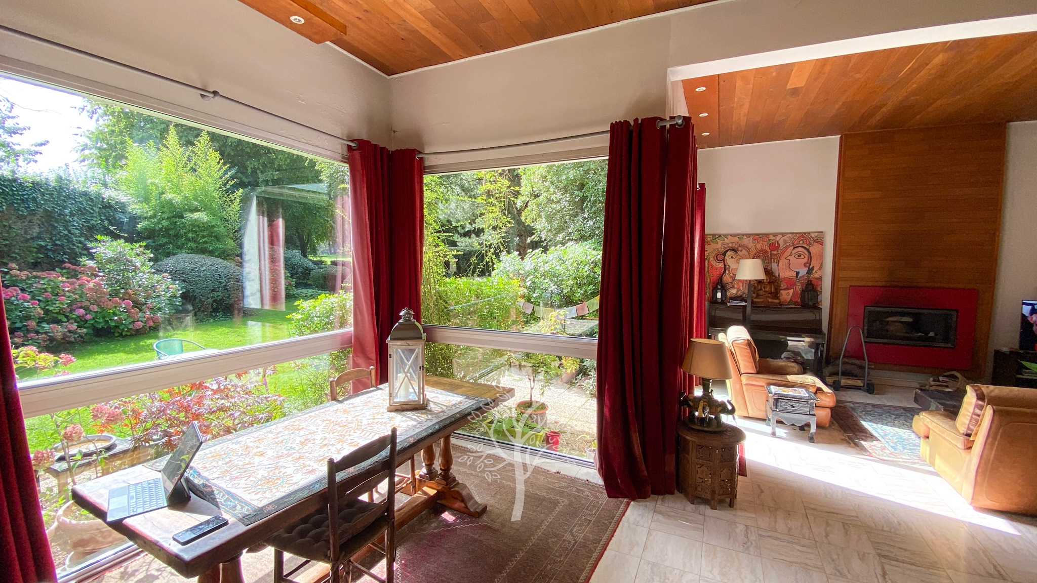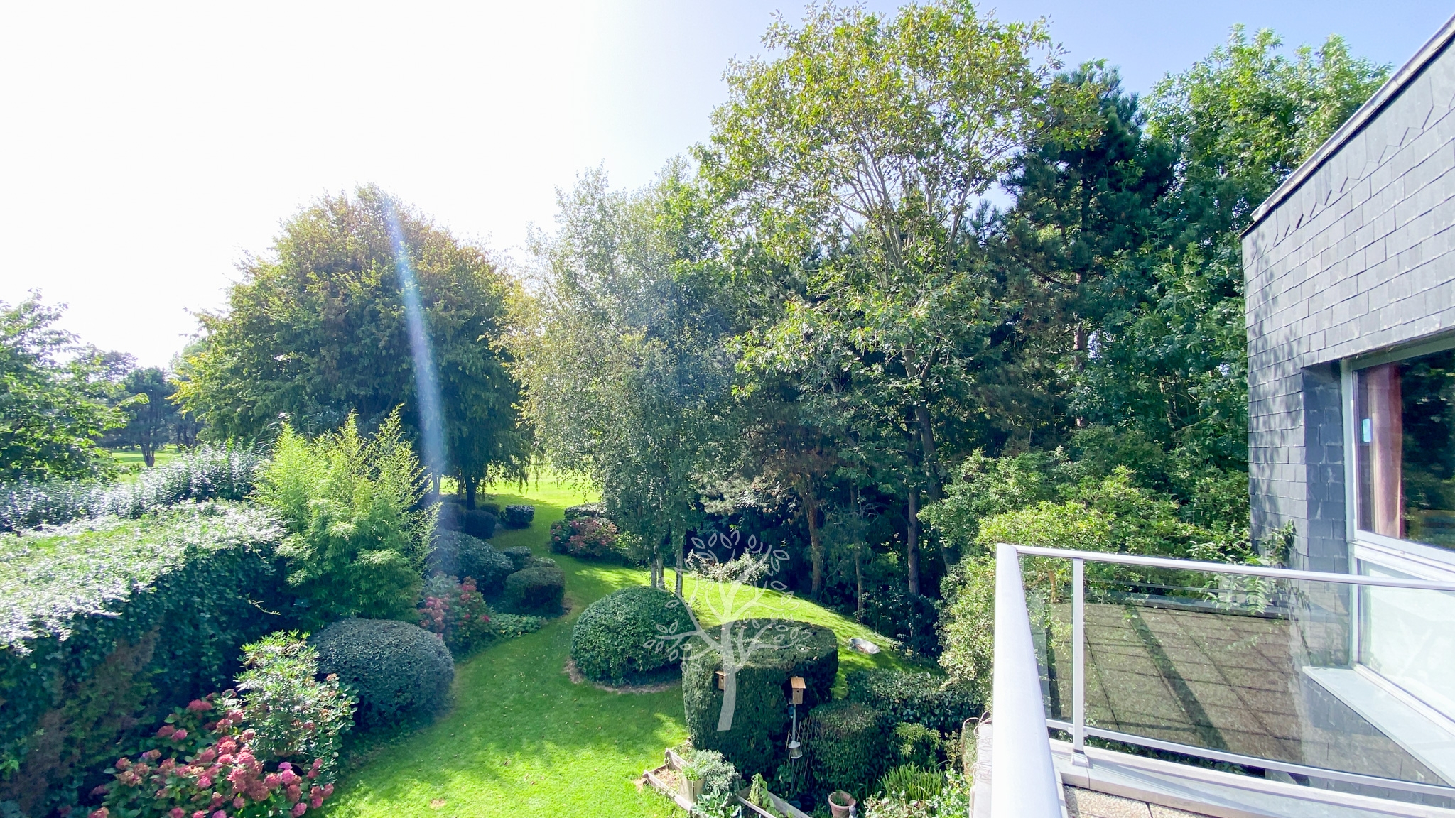 Orientée principalement au sud-ouest, les nombreuses et larges ouvertures laissent pénétrer la lumière en abondance. Les pièces de vie sont claires. La cheminée apporte une touche conviviale et chaleureuse à la pièce principale. De la salle à manger au salon, on devine facilement les golfeurs parcourir le fairway n° 11. La spacieuse cuisine aménagée s’ouvre sur ce grand espace de vie. Arrière-cuisine avec évier et accès extérieur. Dégagement, placards d’entrée, chaufferie et accès au garage aujourd’hui transformé en 2 chambres de plain-pied avec salle d’eau. A l’étage, cette accueillante maison offre 3 suites avec chacune des terrasses sud-ouest vers le jardin et le golf. Chaque pièce d’eau comprend toilettes, douche, lavabo. Un vaste espace vitré sous les toits permet d’envisager une salle de jeu pour les enfants. Sous-sol partiel.