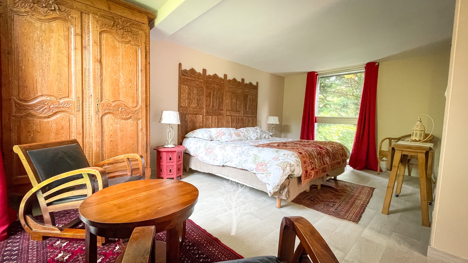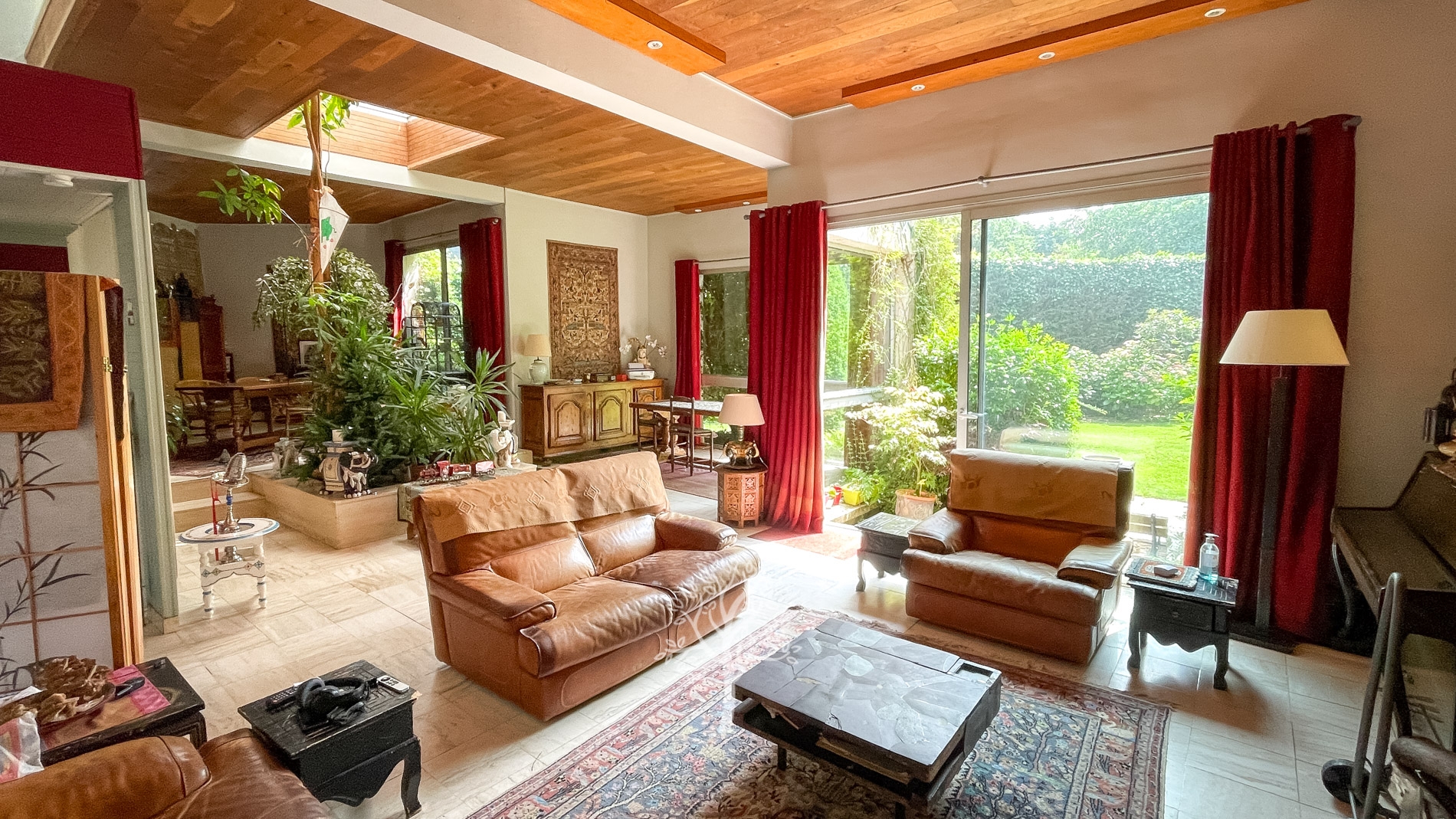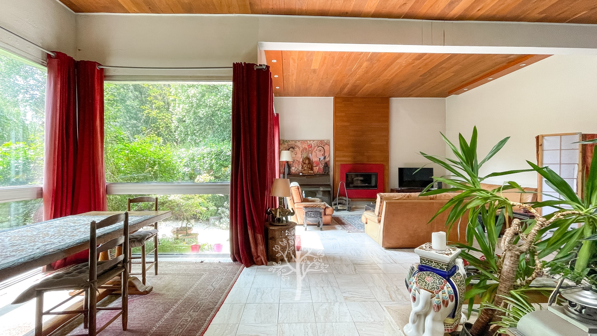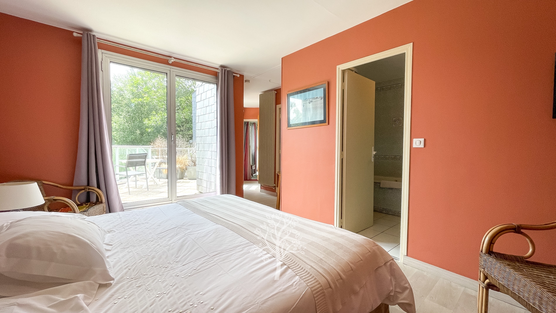 Construite dans les années 80, cette maison contemporaine privilégie la lumière et les vues sur le golf. Située à proximité immédiate des écoles, lycées et le centre-ville, sa localisation est idéale pour une famille souhaitant profiter de la nature et la vie en bord de mer. Sa taille et ses volumes permettent d’imaginer aisément une activité de chambres d’hôtes comme l’ont fait les propriétaires précédents.