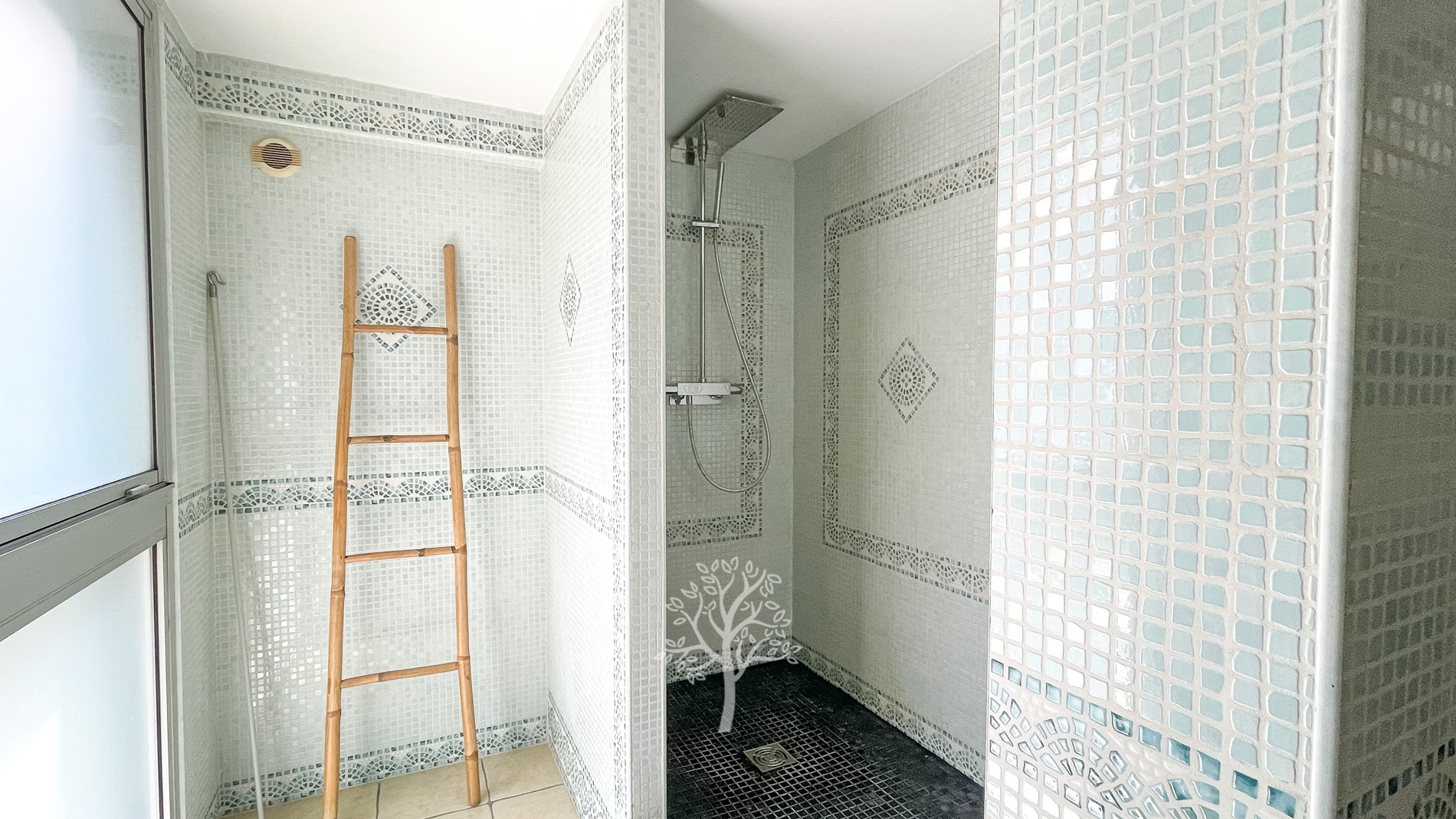 Les plantations du jardin protègent du vent mais assurent également une intimité précieuse. Durant les beaux jours, il est très agréable de profiter de la terrasse accessible depuis le salon.