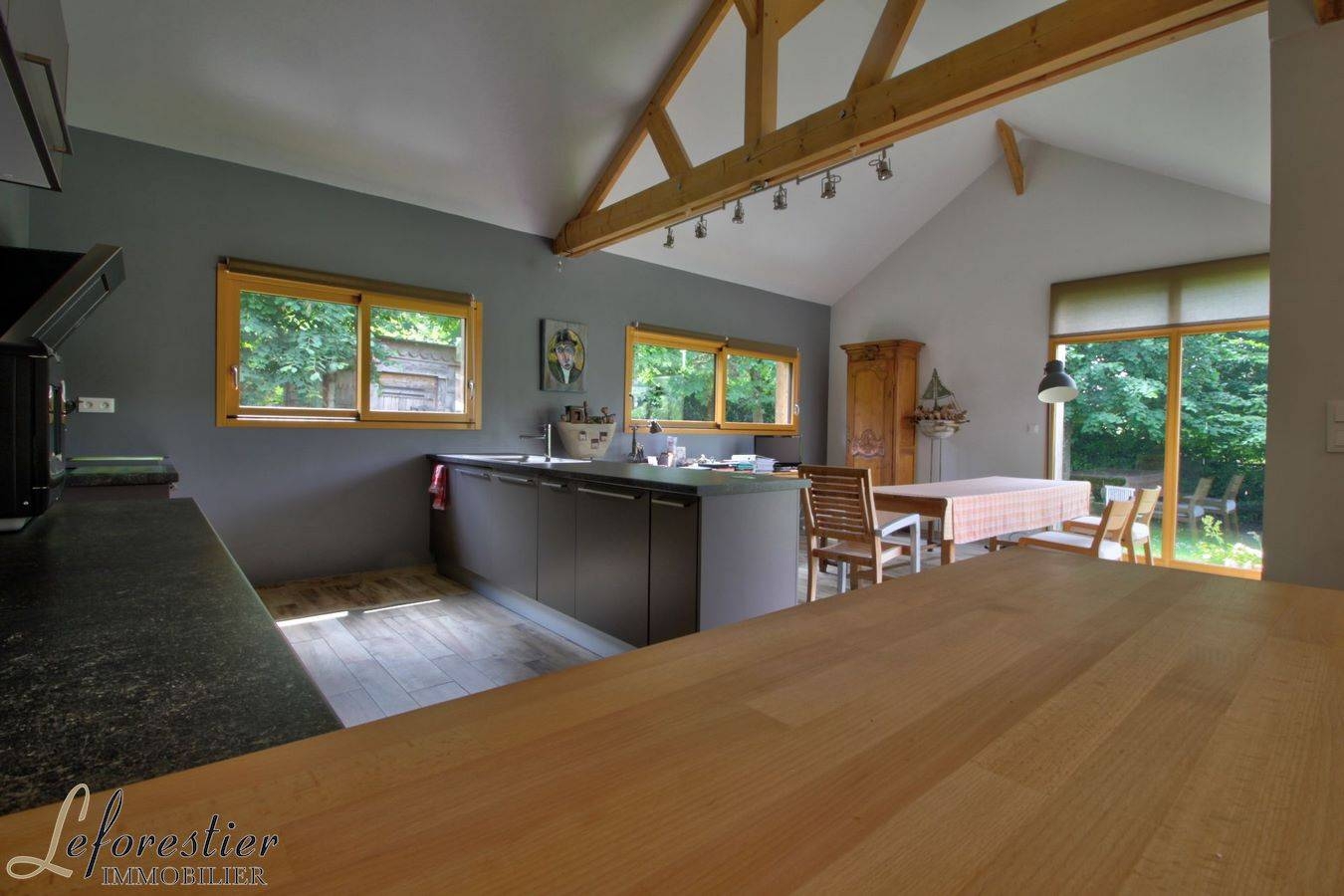 Maison contemporaine confortable et lumineuse. Maison de famille avec 4 chambres dont 1 de plain-pied. Belle terrasse au sud. Jardin joliment arboré. A proximité des écoles et du collège d’Auffay.