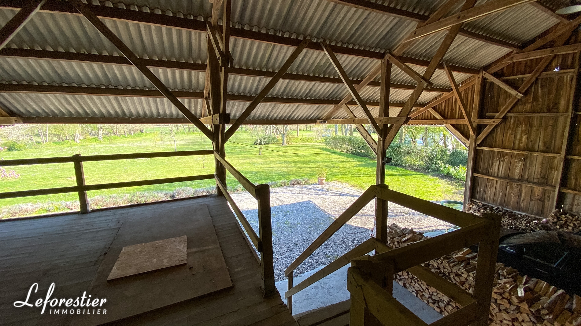 Le hangar, parfaitement entretenu offre de multiples possibilités d’usage : bucher, garage, atelier de bricolage, abri de jardin et 2 box pour chevaux sont envisageables.