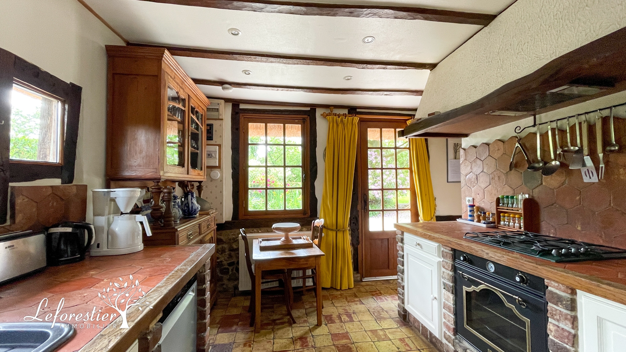 La cuisine est tout à fait fonctionnelle et pleine de charme, elle est dotée d’une arrière-cuisine. A l’autre extrémité de la maison se trouve une grande chambre et sa salle de bains en rez de chaussée.