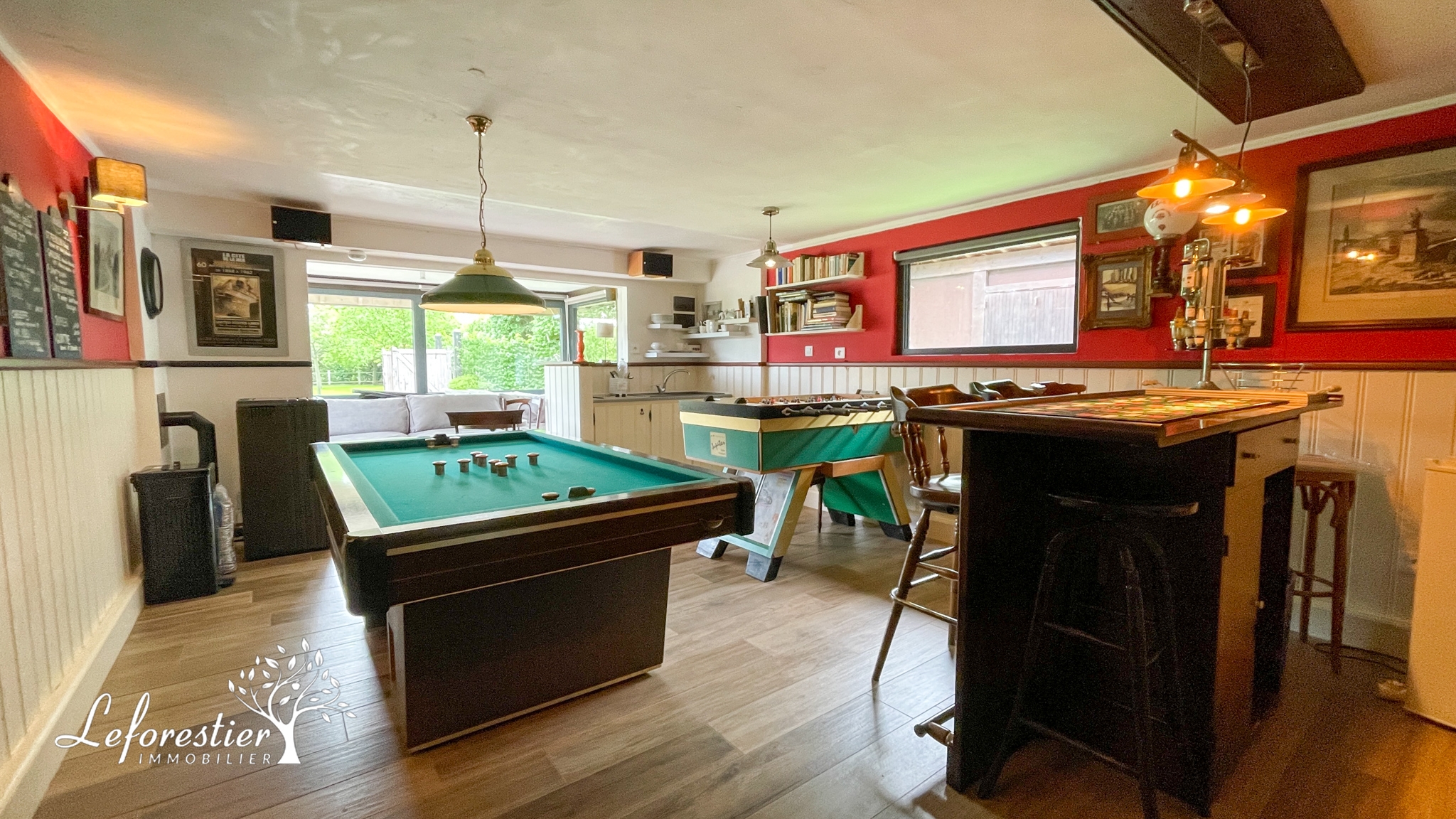 Cette petite maison a été entièrement réhabilitée pour recevoir les amis. On y pénètre par une double baie vitrée ou se trouve une grande pièce de vie avec sa kitchenette et son bar. Installés dans le salon vous pouvez découvrir la magnifique chaumière, et sa piscine dans son écrin de verdure.