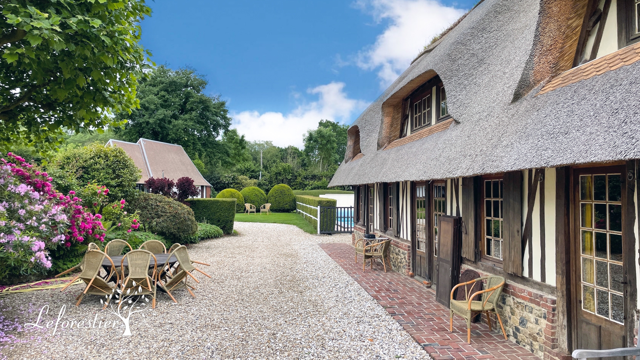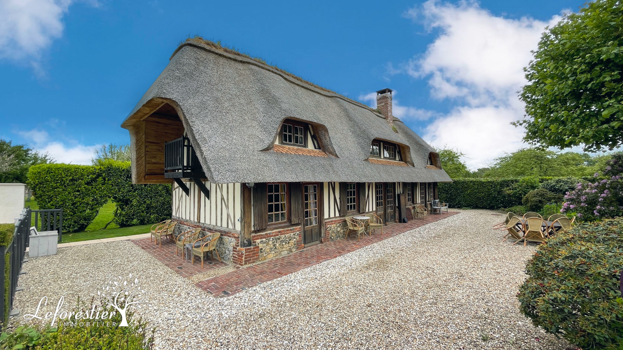 Située dans département de l’Eure cette chaumière a une architecture typique de cette région avec son toit de chaume et ses colombages.