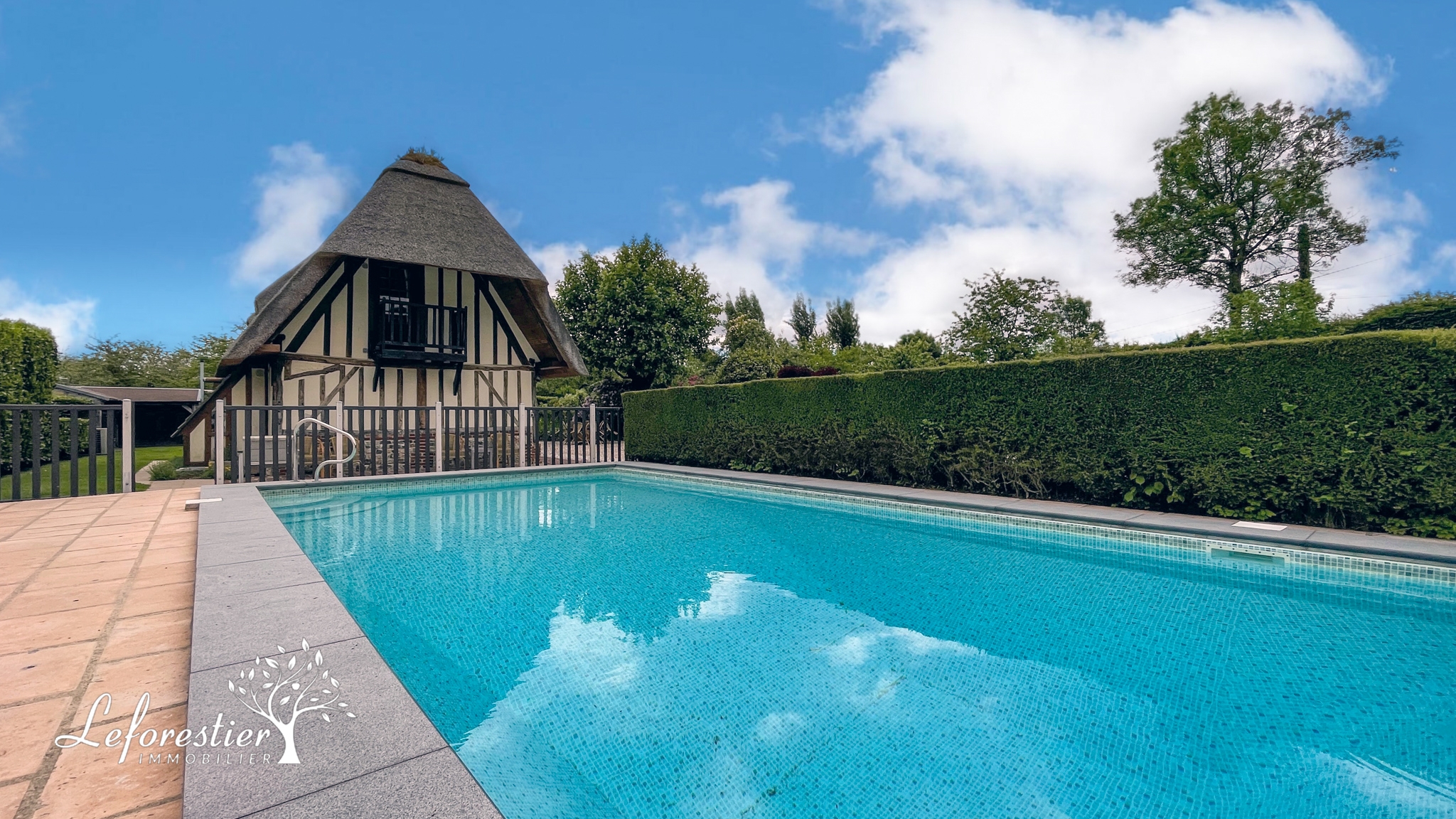 La piscine est la pièce maitresse du parc, elle est entourée d’un mur apportant intimité et chaleur autour du bassin de 10x4 mètres. La grande terrasse accueille aisément plusieurs bains de soleil pour des moments de détente entre amis ou en famille. Afin d’une sécurité totale pour les enfants cet espace aquatique est totalement aux normes.