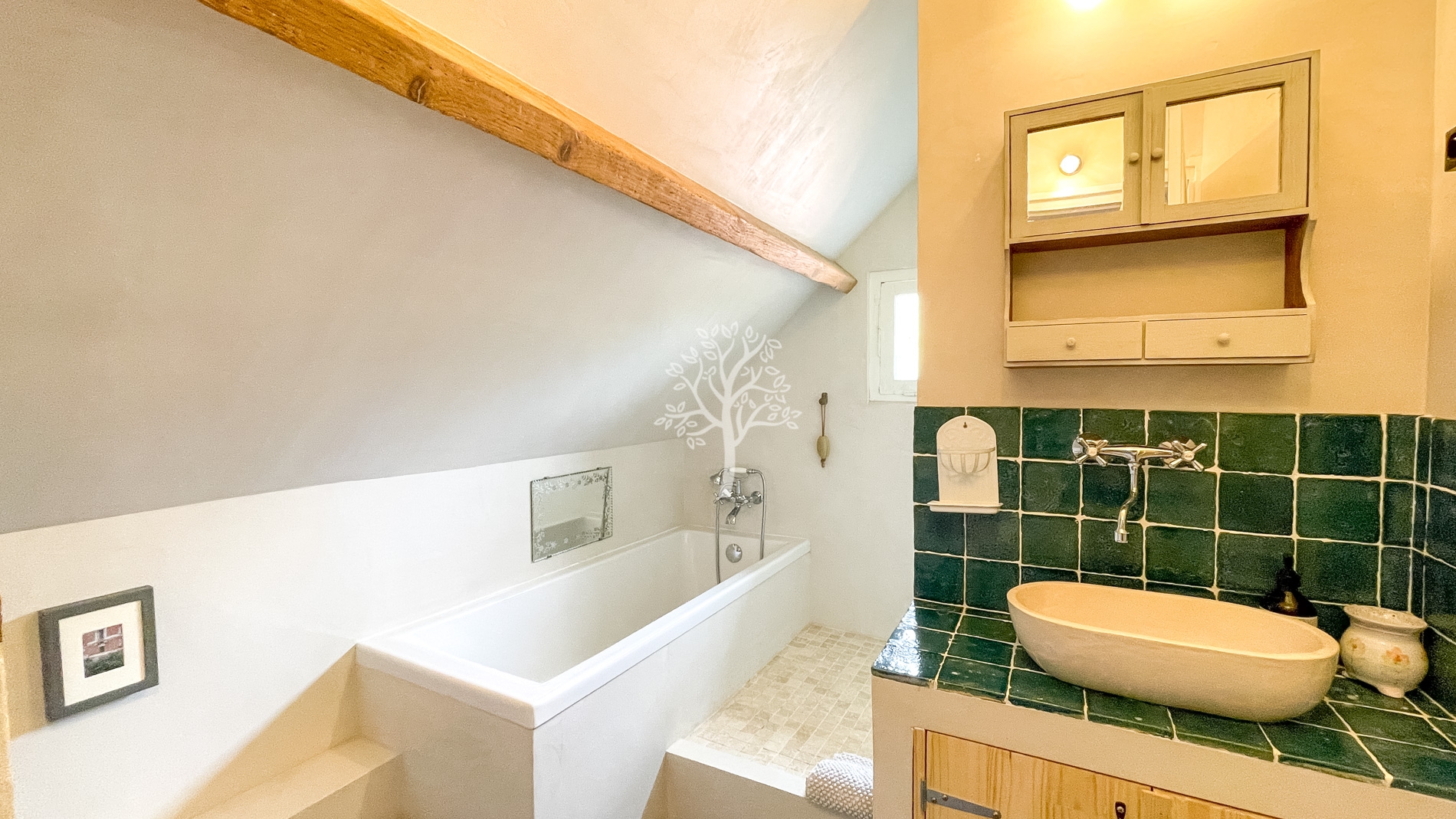 A l’abri des regards, on accède à la propriété par un chemin couvert de cailloux qui mène à cette maison faisant autrefois partie d’un grand ensemble. Le cadre est calme et bucolique. La chapelle du village témoigne d’un passé où le cœur du village était le point vie central de cette charmante commune.